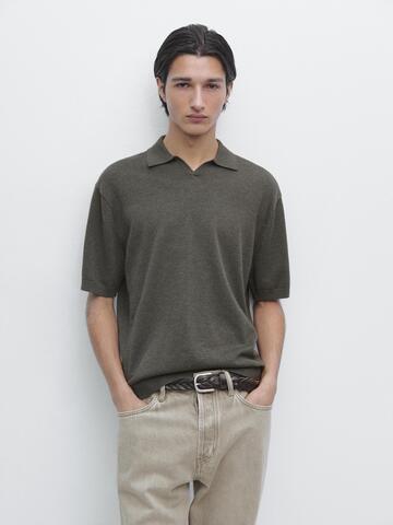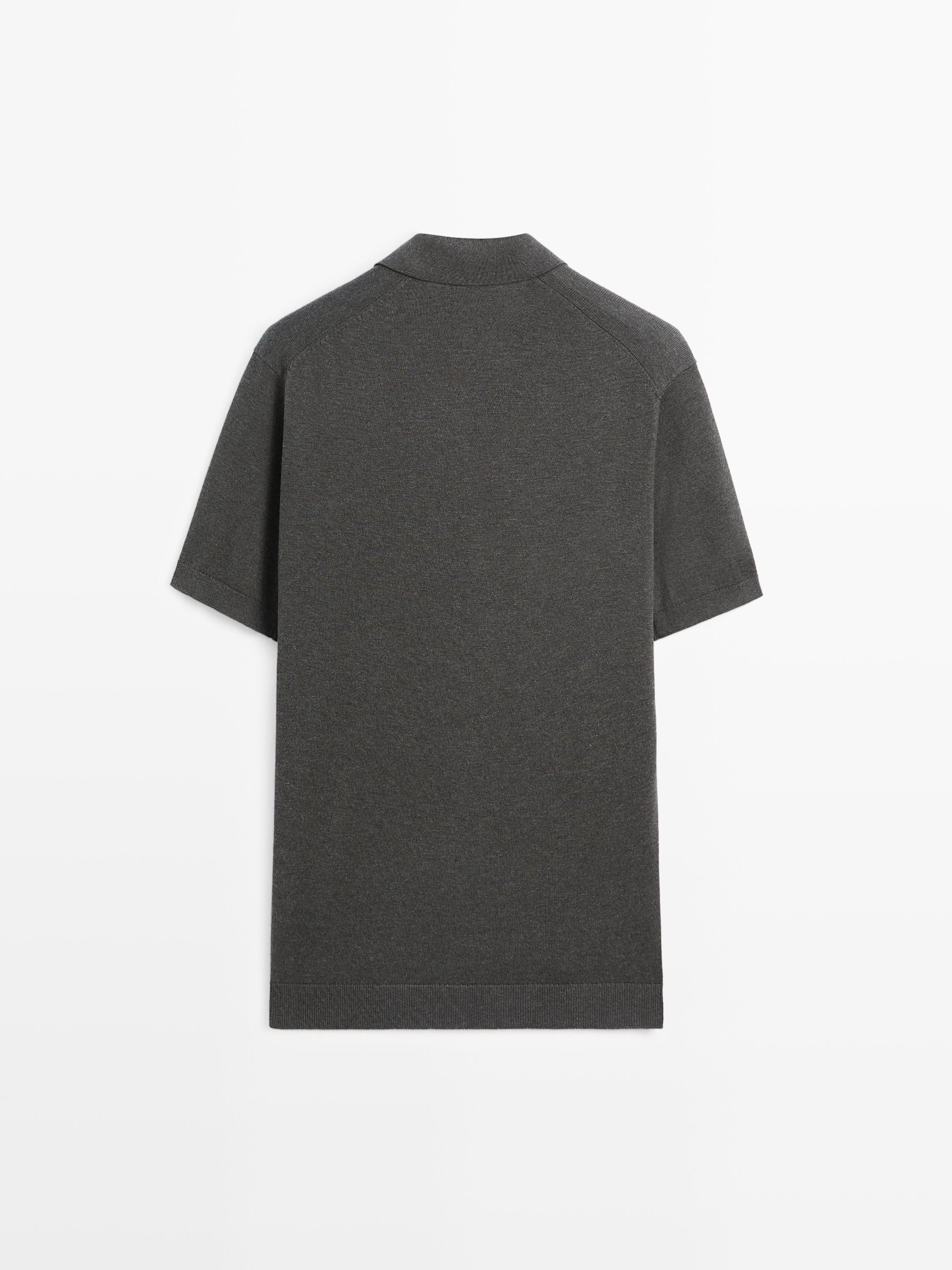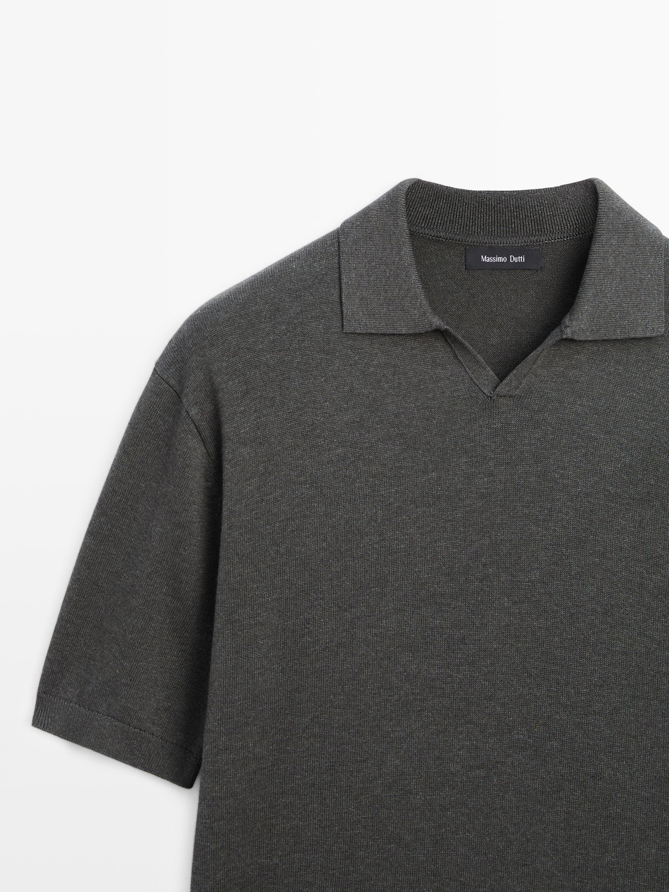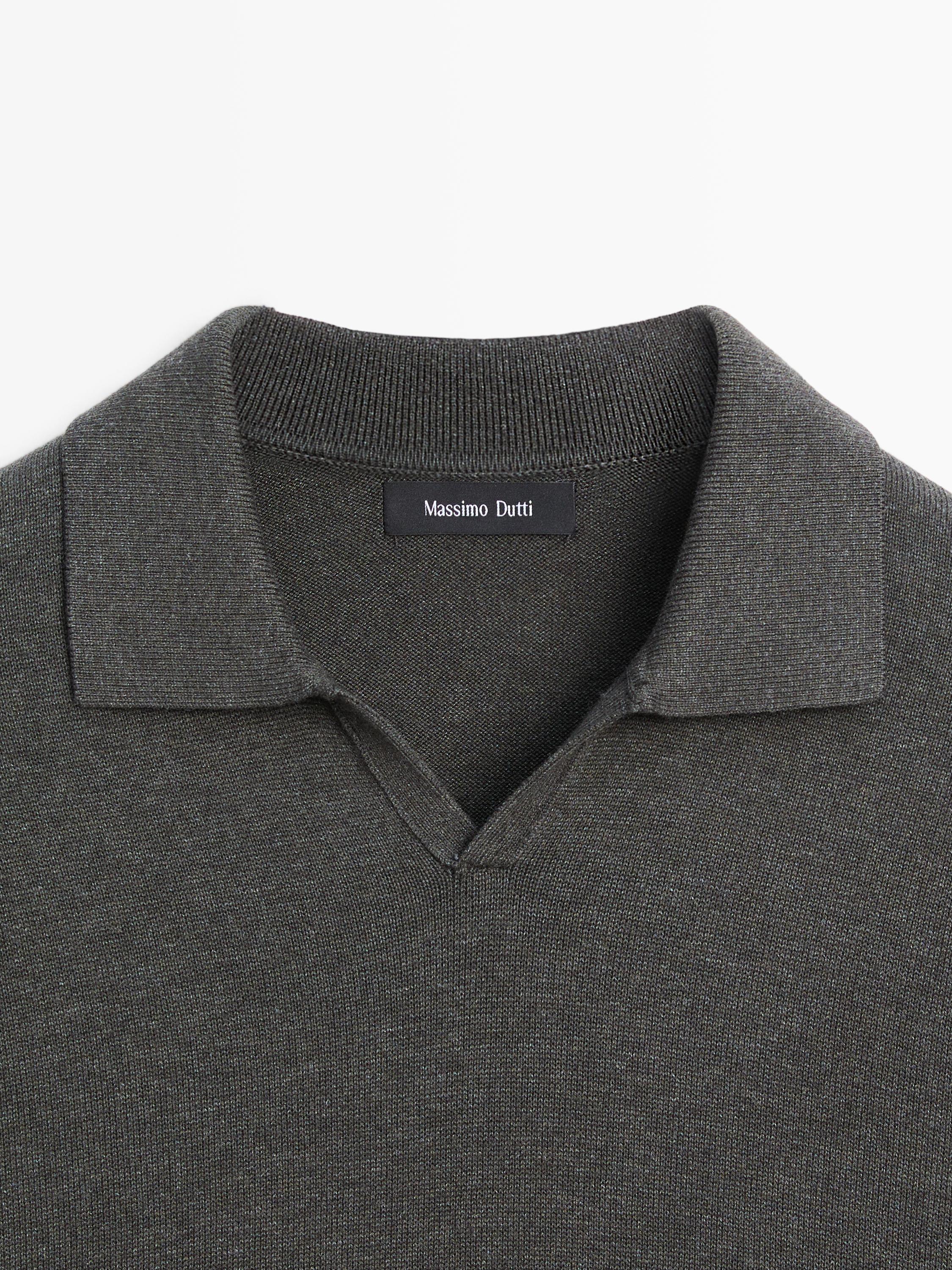 Massimo Dutti Трикотажный свитер из смесового хлопка с воротником-поло, серый