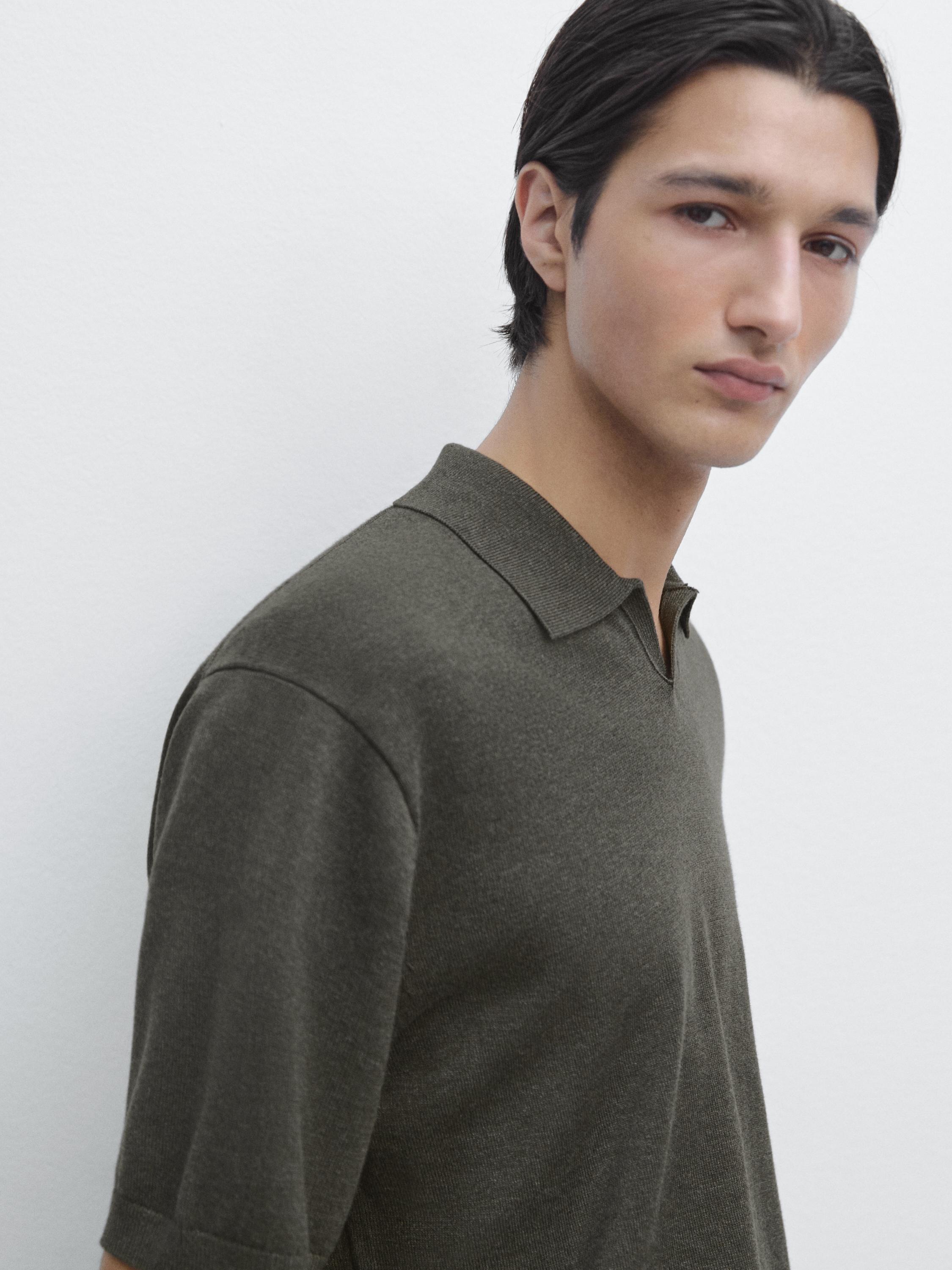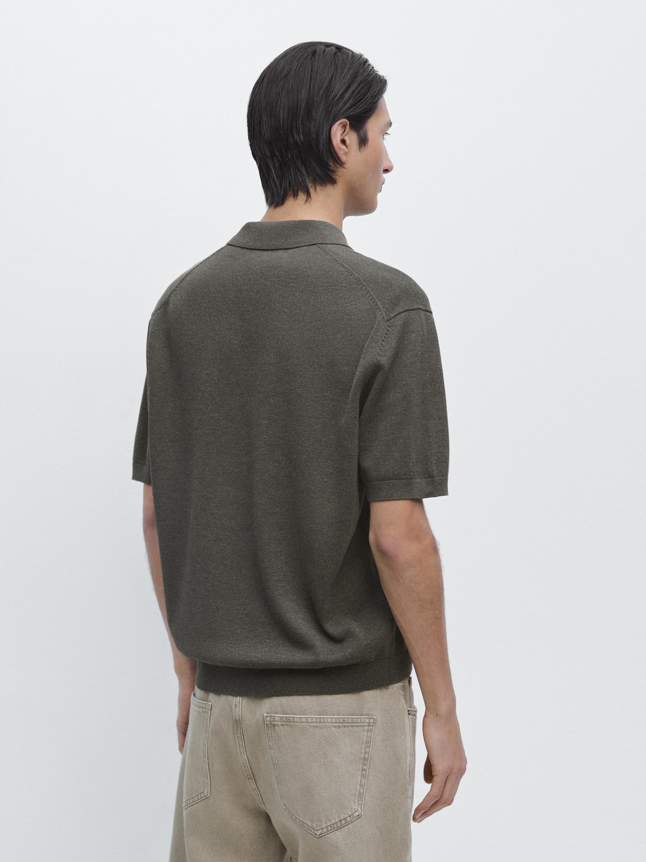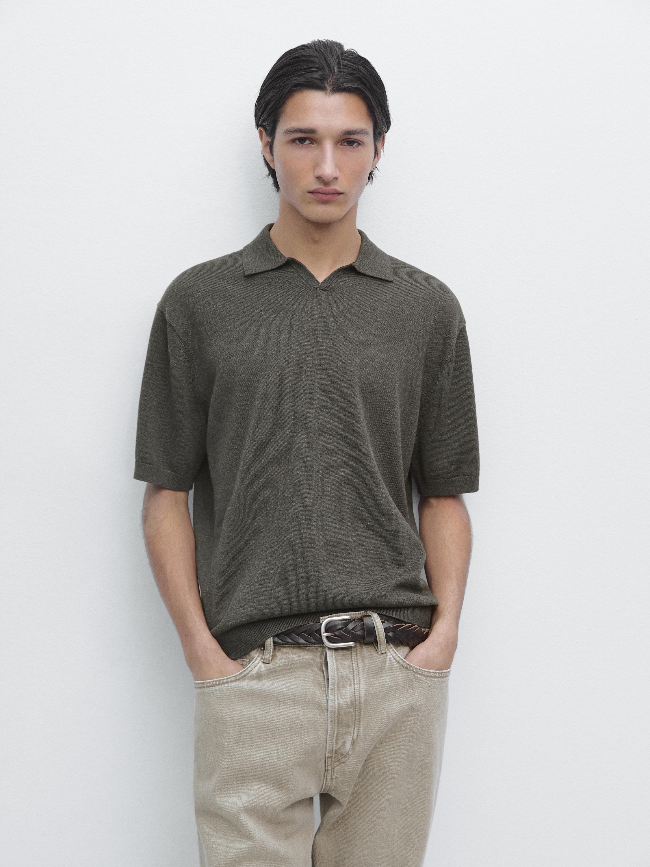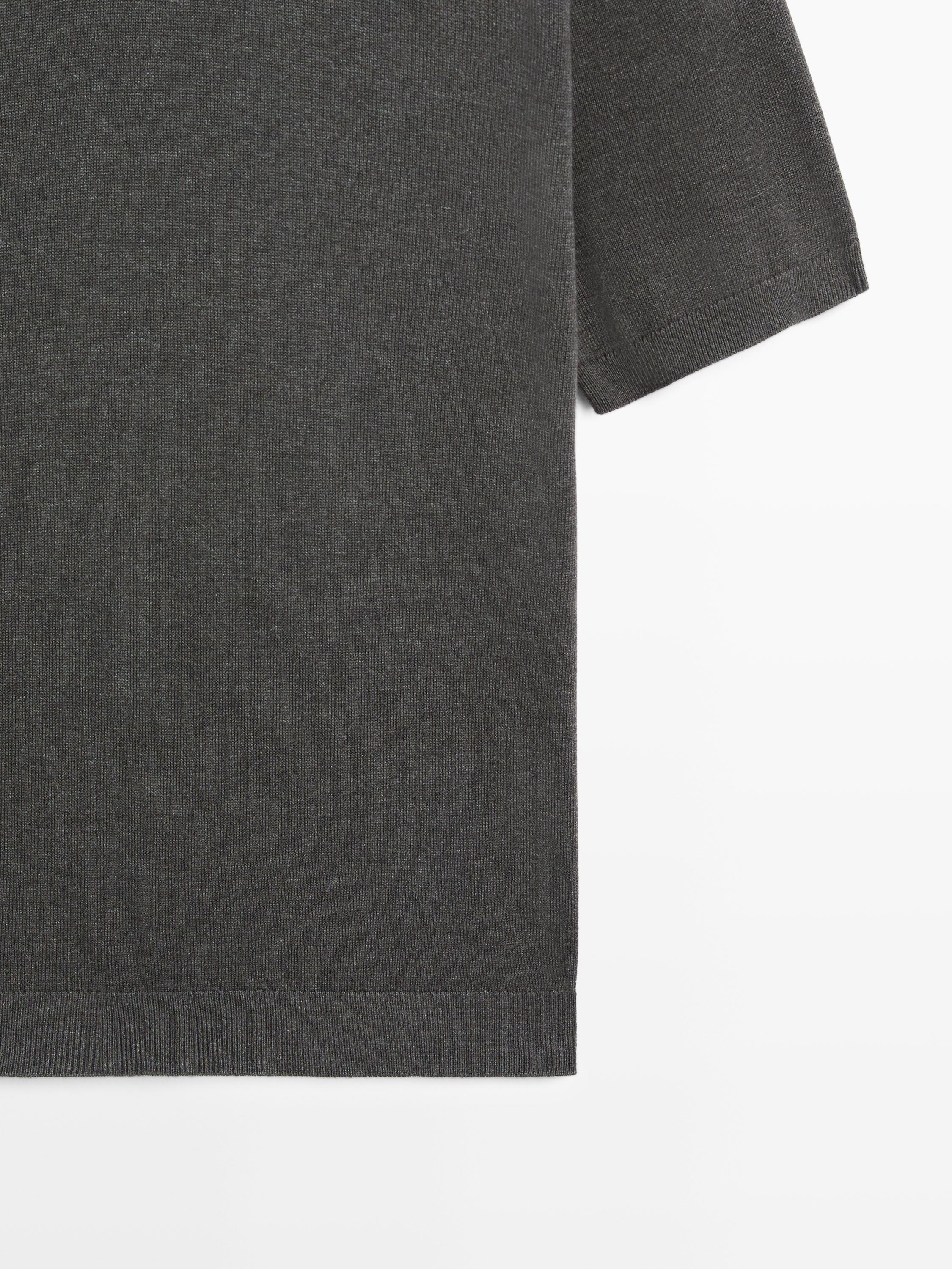 Massimo Dutti Трикотажный свитер из смесового хлопка с воротником-поло, серый