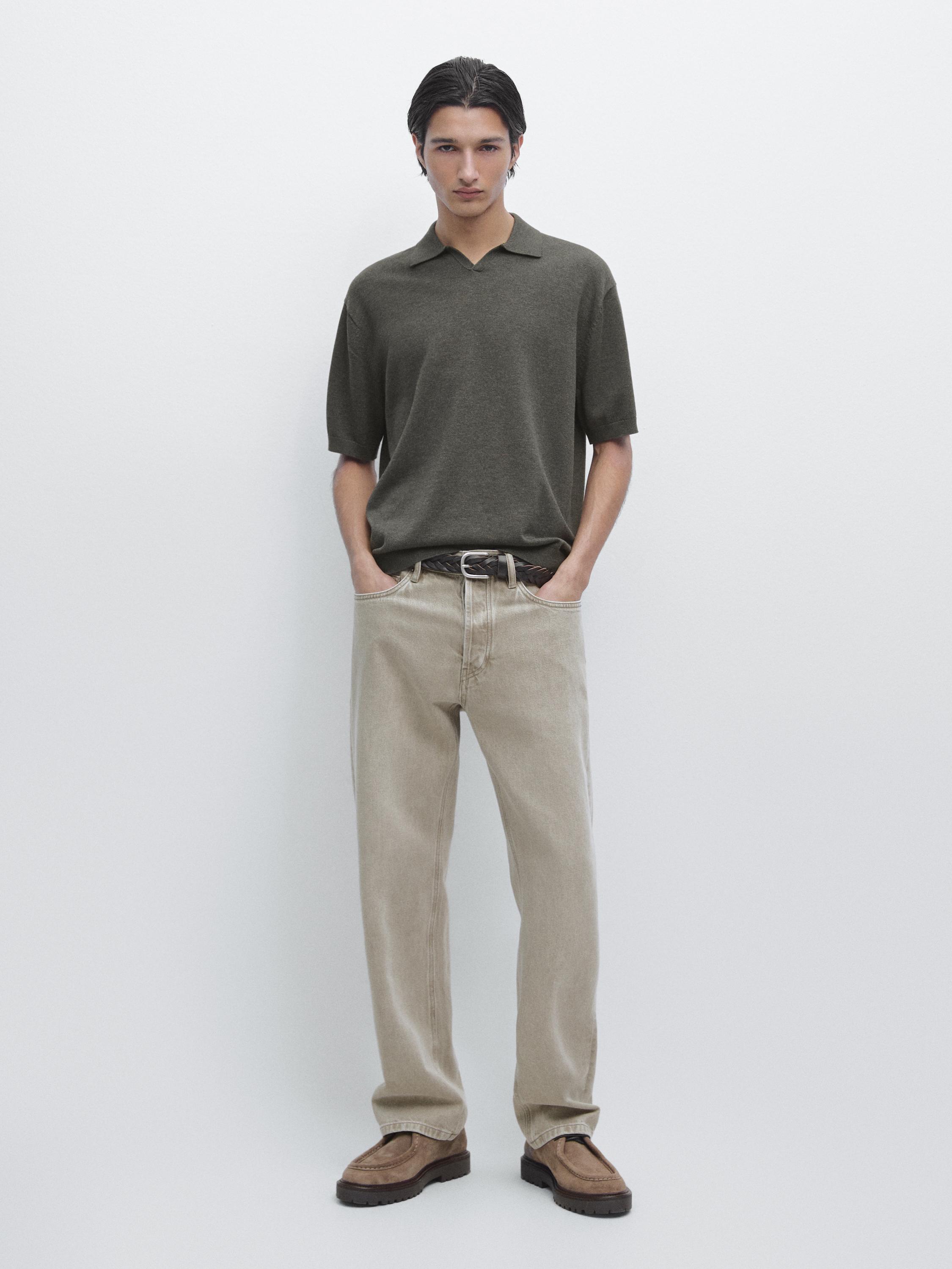 Рубашка поло из смесового хлопкового трикотажа. Классический воротник с V-образным вырезом. Короткие рукава. Детали в рубчик . Широкий и свободный силуэт, не облегающий.