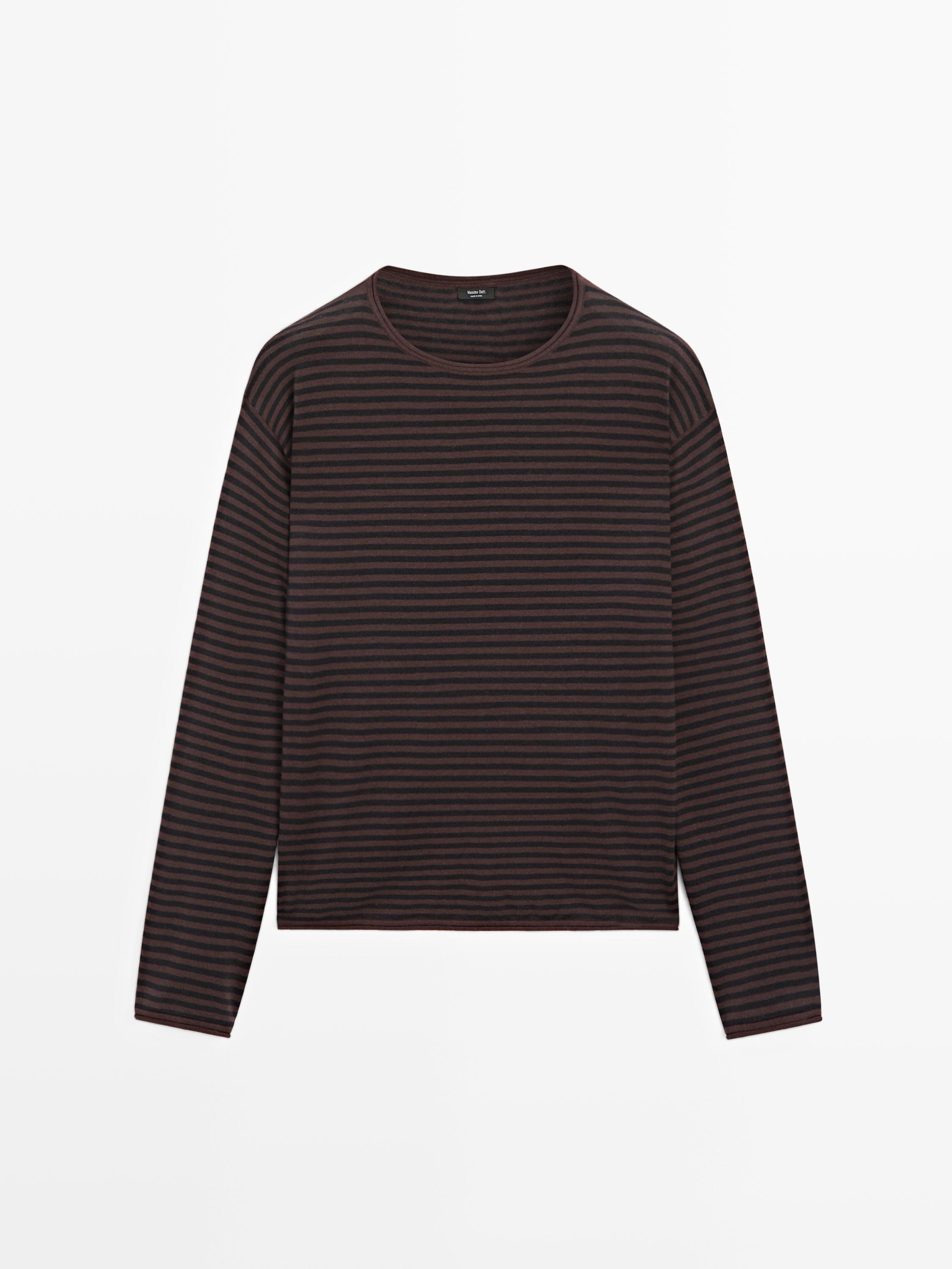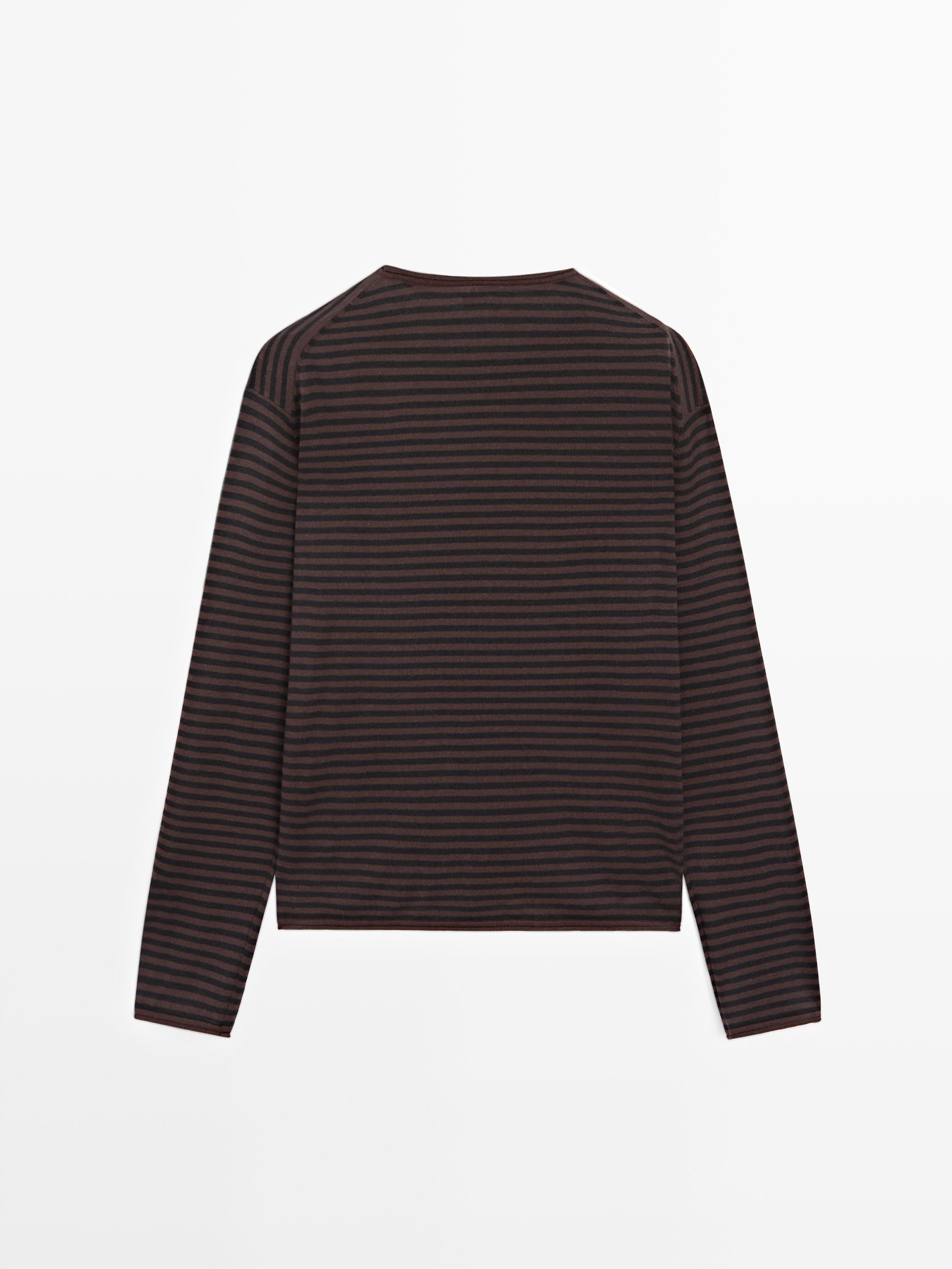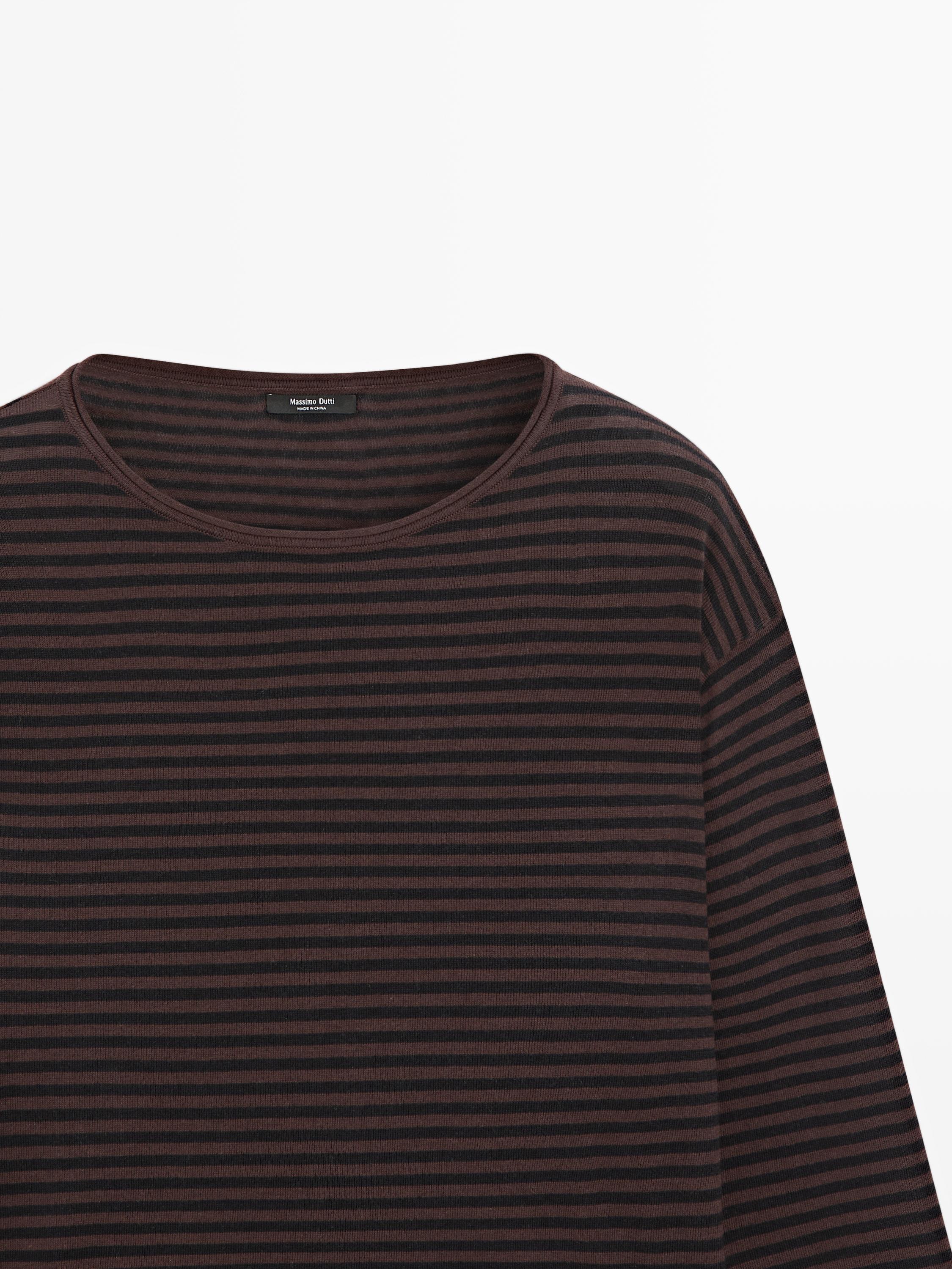 Massimo Dutti Трикотажный свитер из смесового хлопка в полоску, коричневый