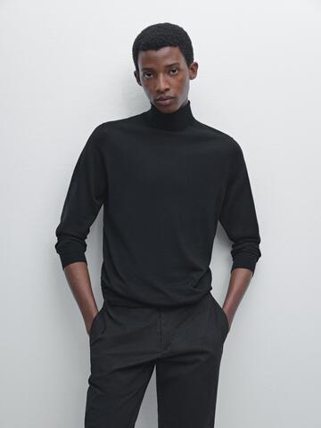Massimo Dutti Трикотажный свитер из смесовой шерсти с высоким воротником, черный