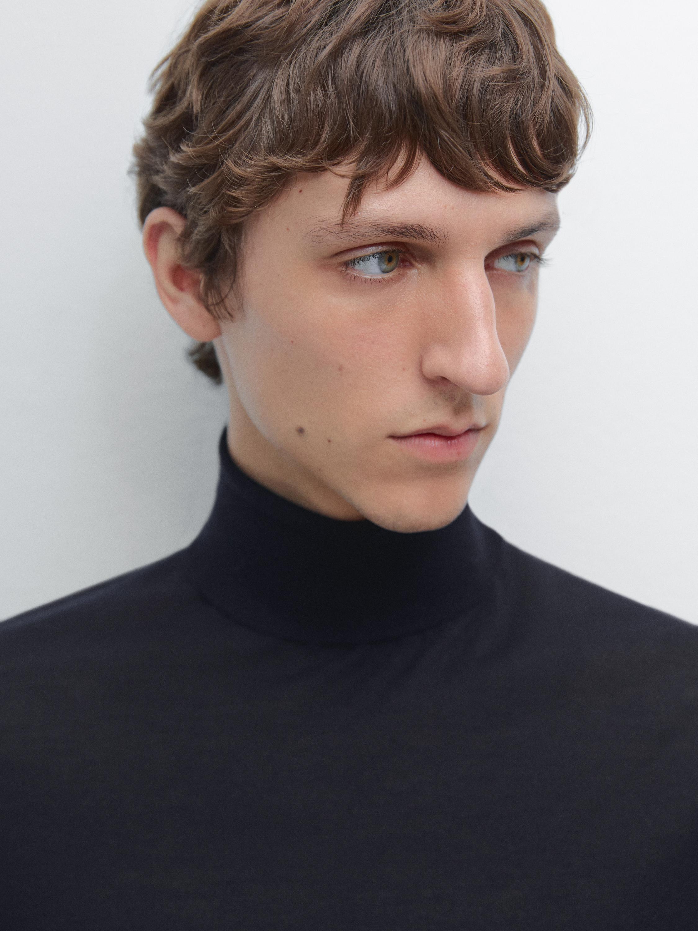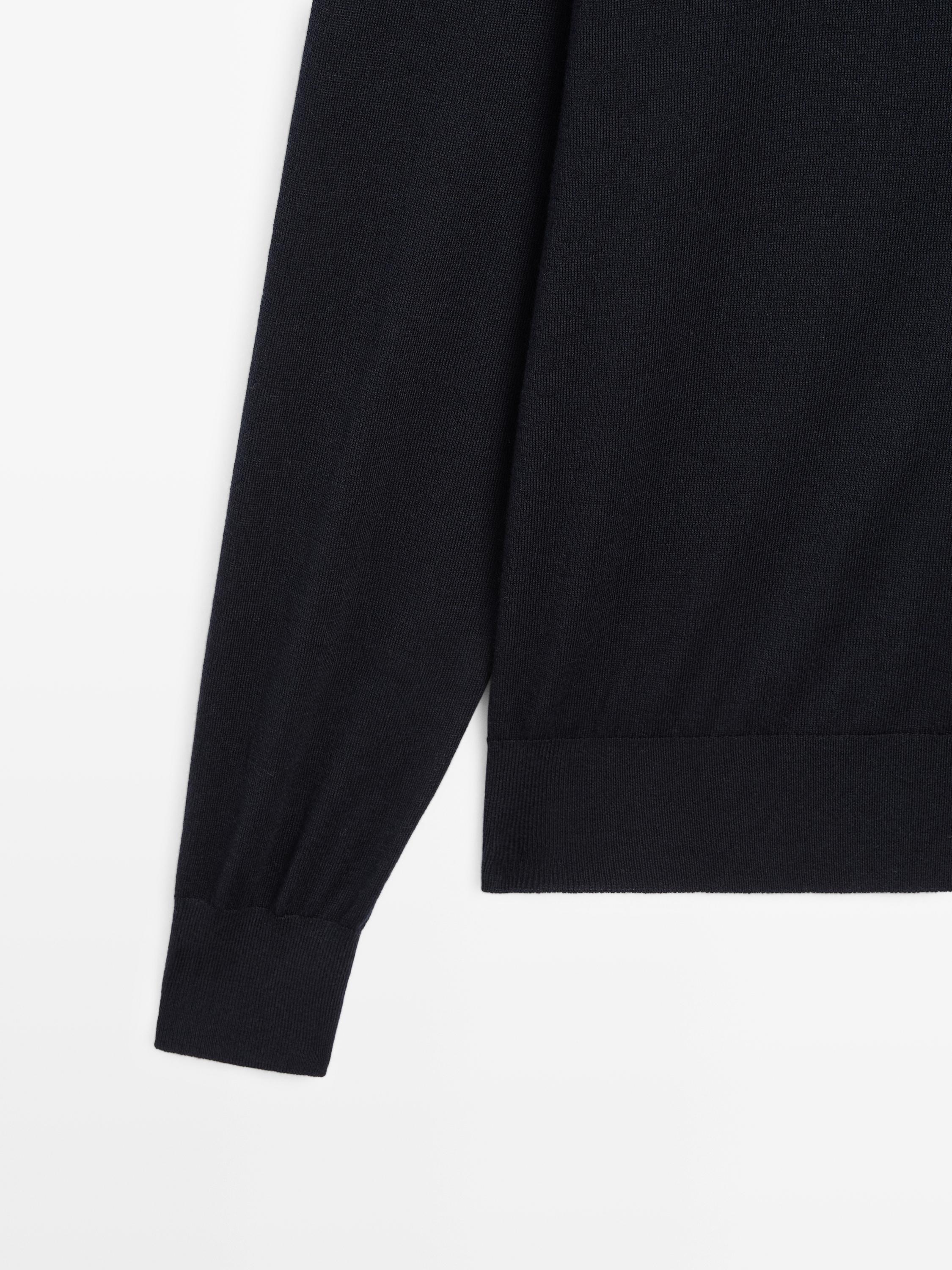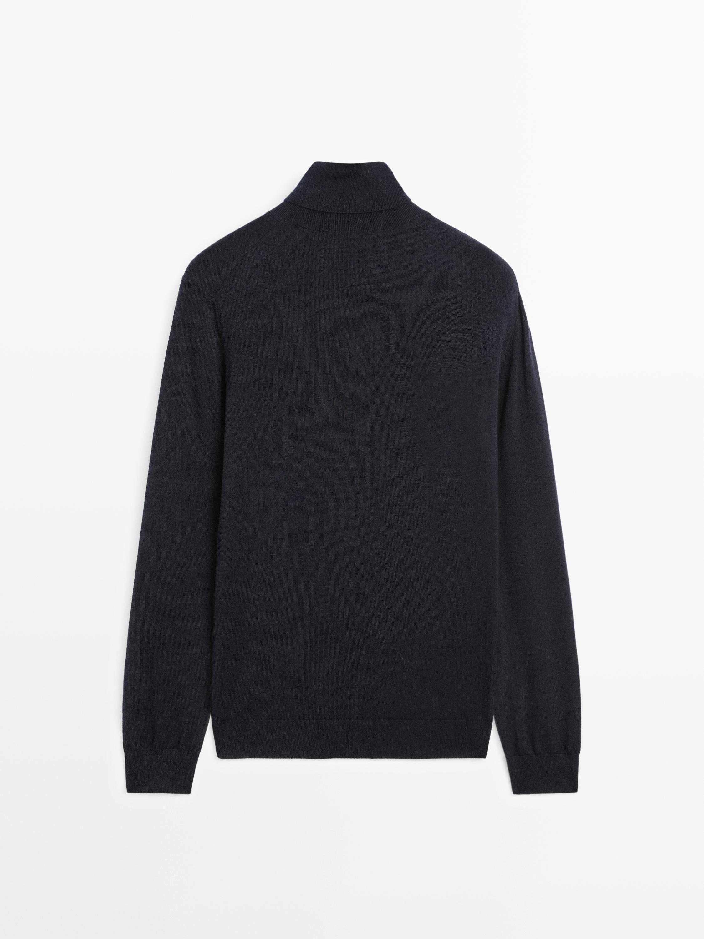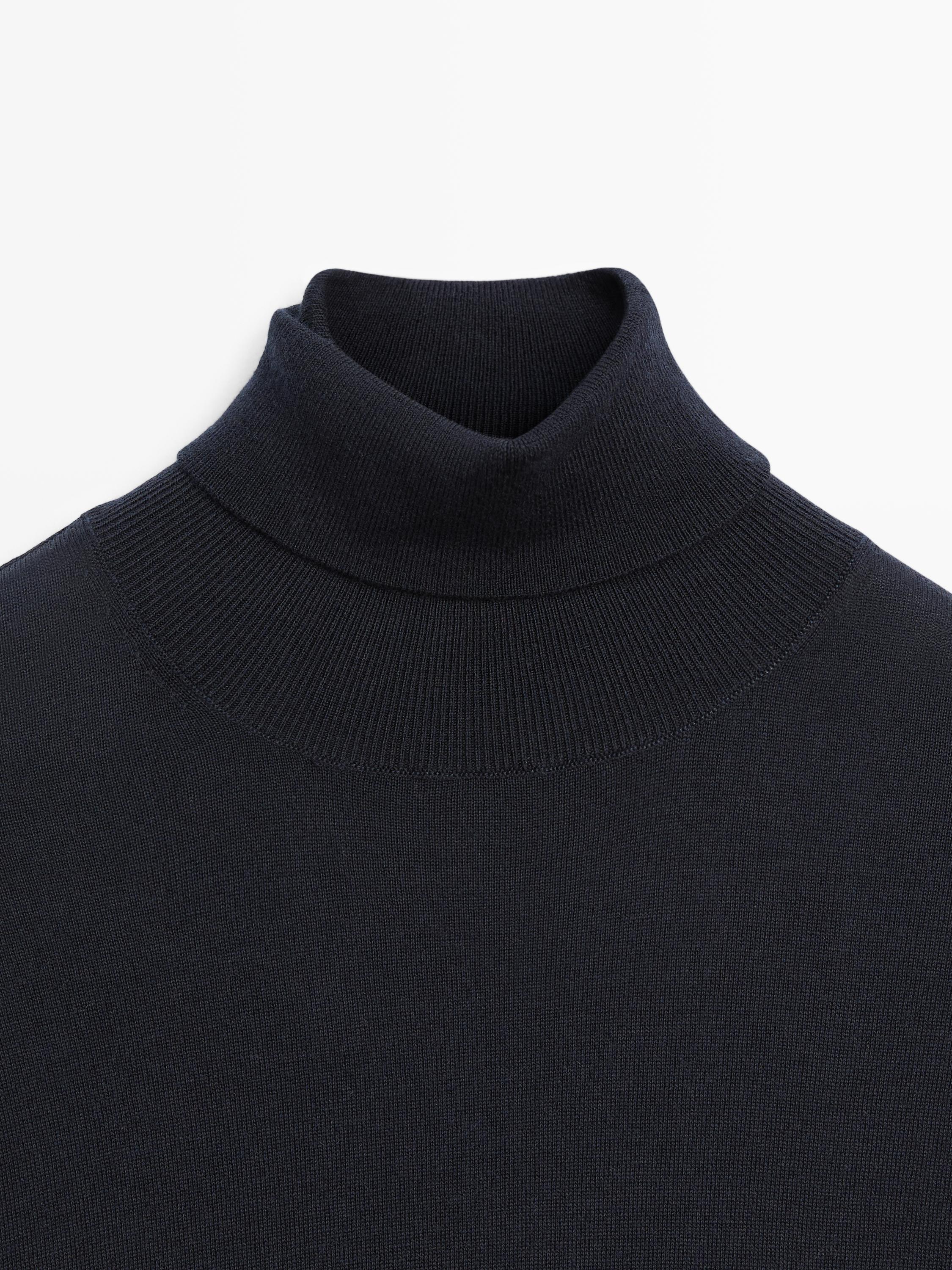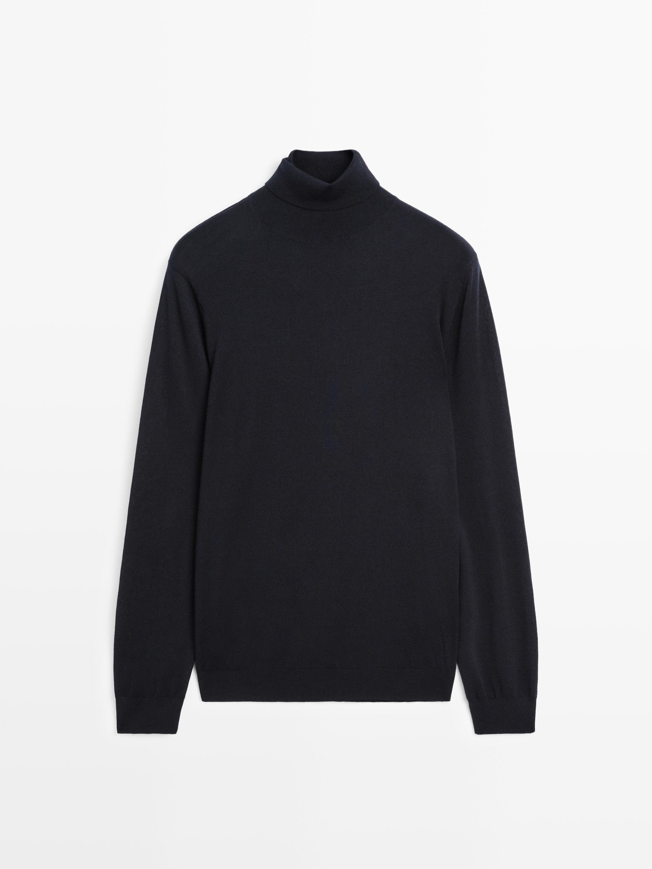 Massimo Dutti Трикотажный свитер из смесовой шерсти с высоким воротником, темно-синий