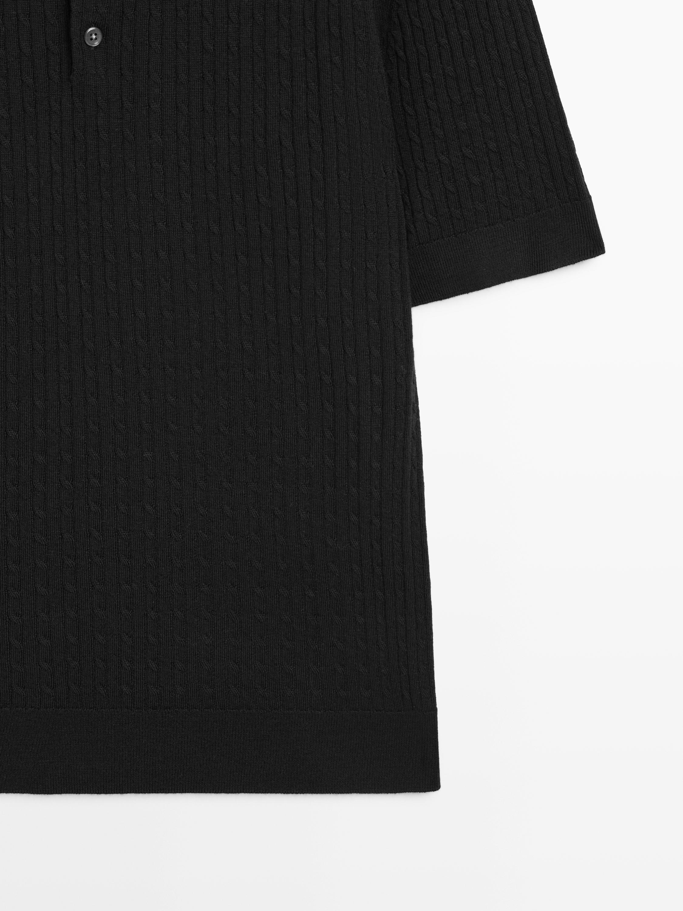 Massimo Dutti Трикотажный свитер-поло из мериносовой шерсти, черный