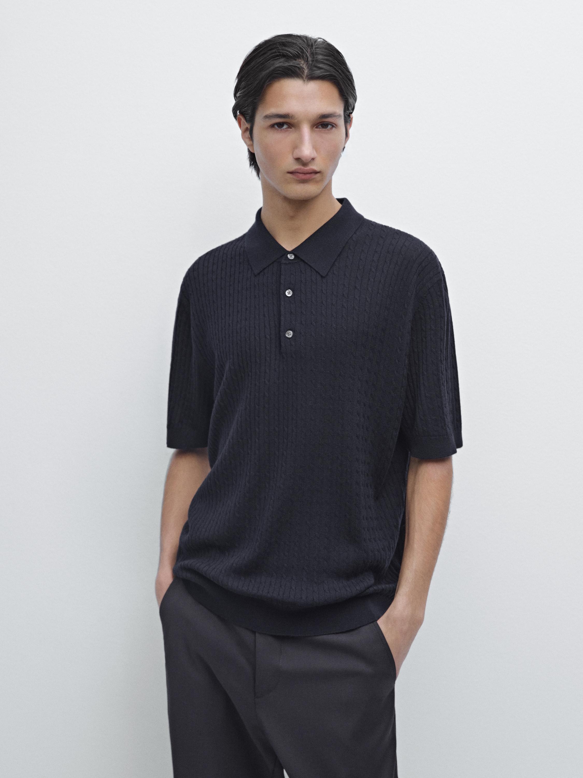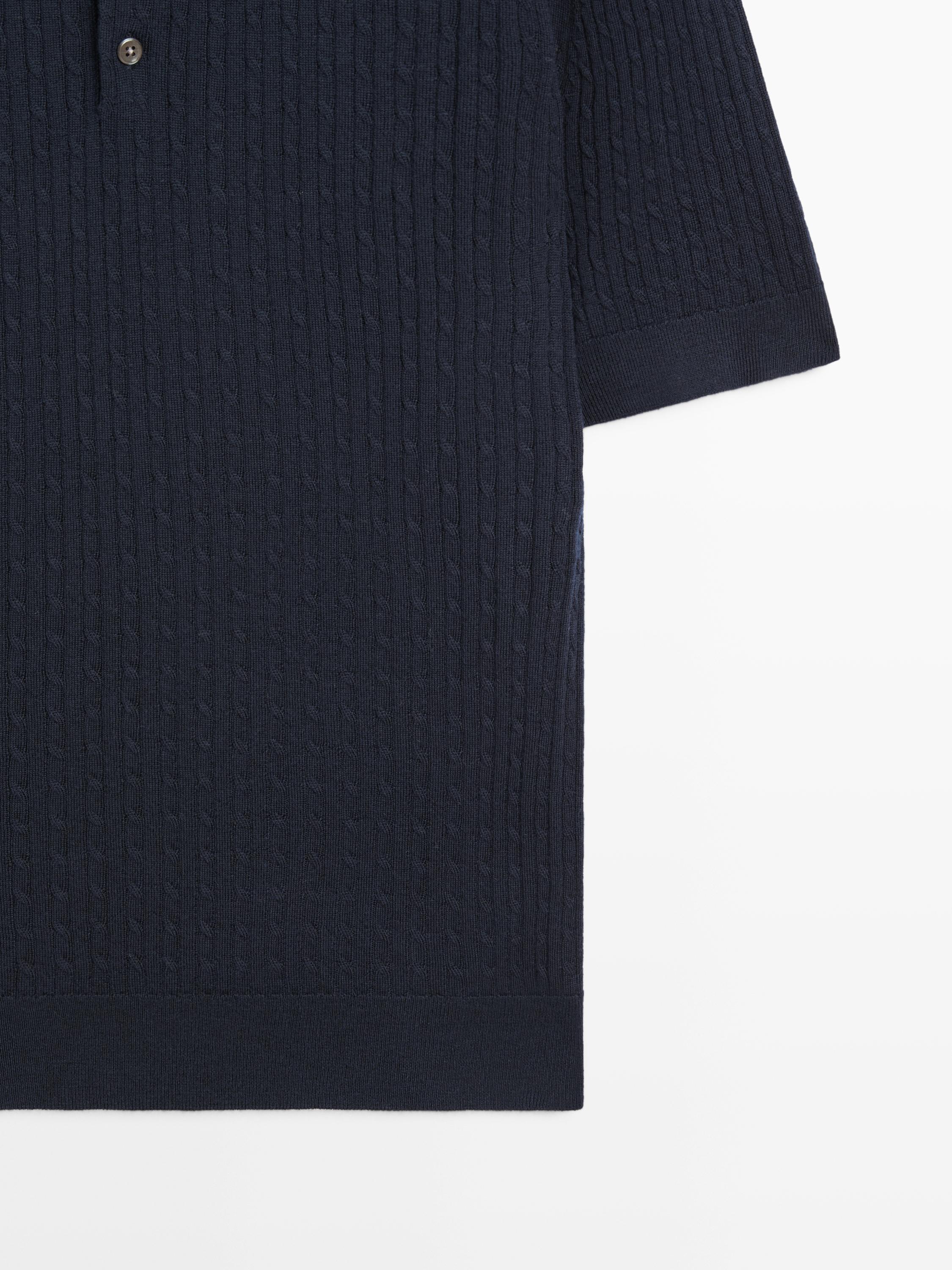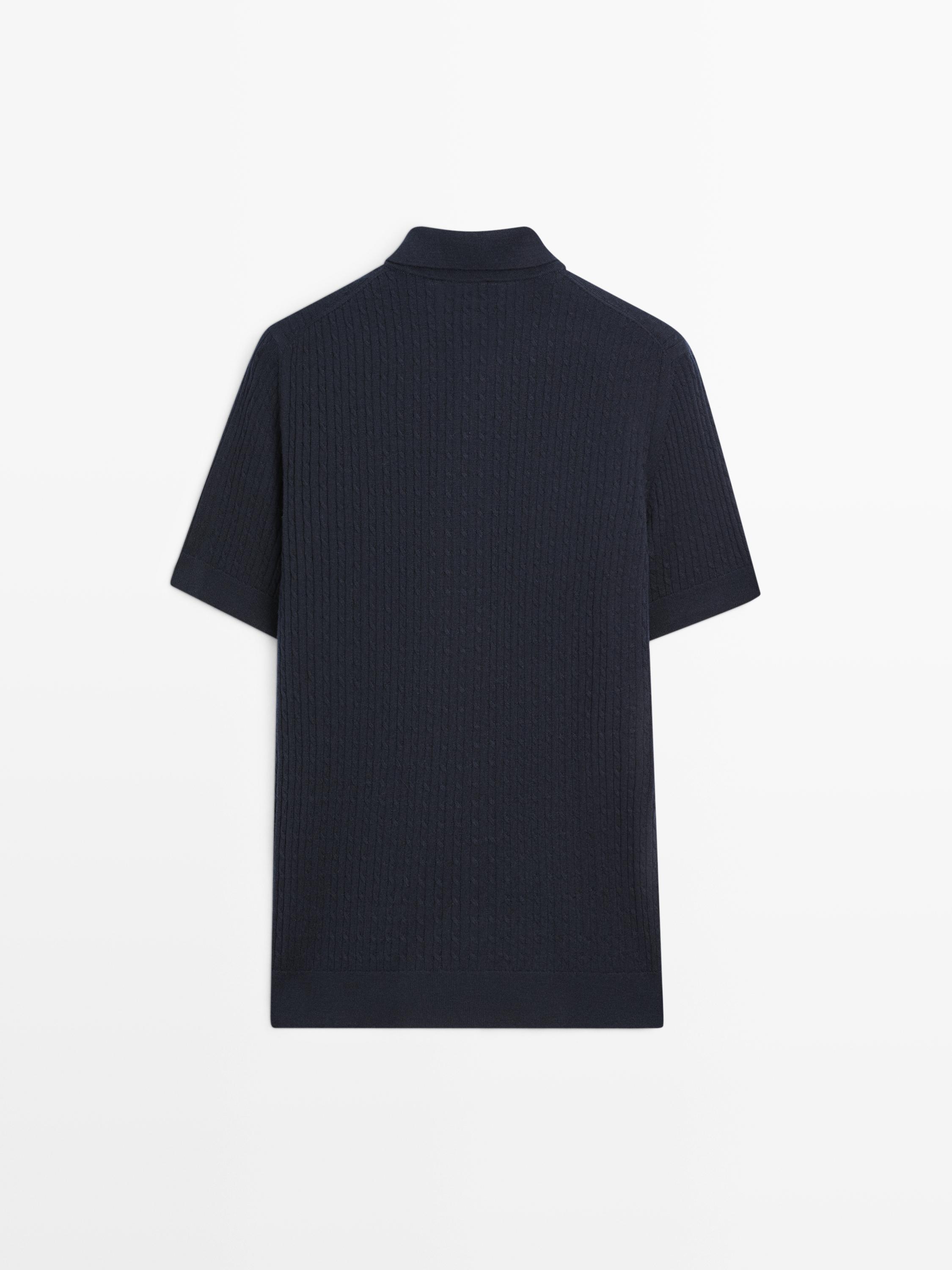 Massimo Dutti Трикотажный свитер-поло из мериносовой шерсти, темно-синий