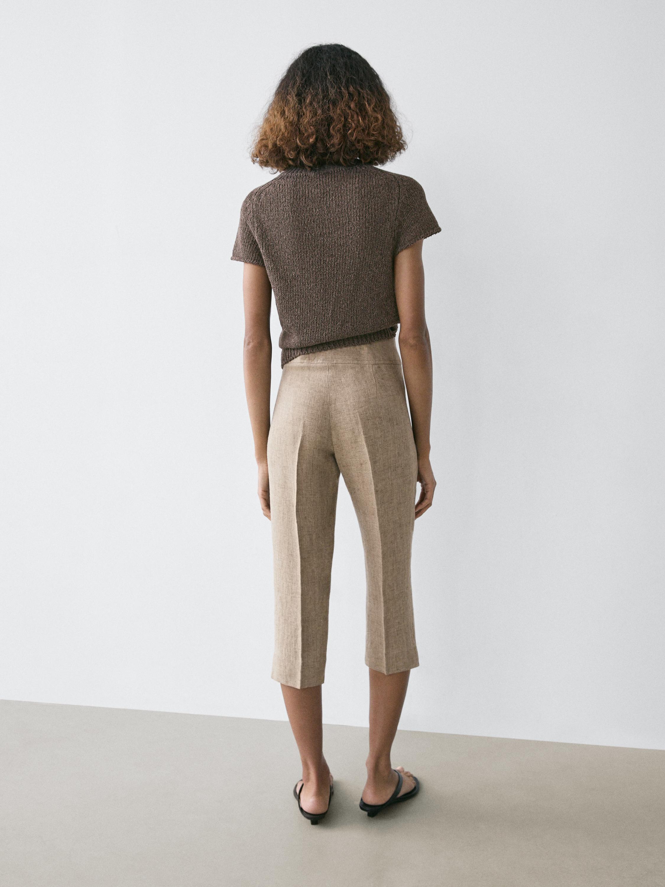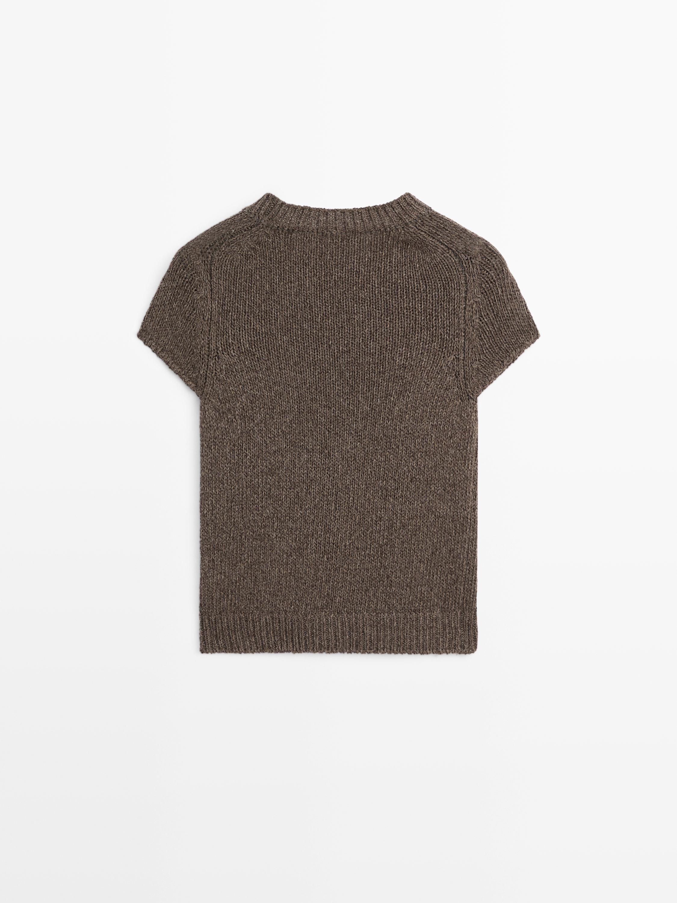 Massimo Dutti Трикотажный свитер в рубчик с короткими рукавами, коричневый