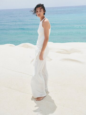 Massimo Dutti Трикотажный топ с горловиной халтер и деталями в рубчик, натуральный, кремовый