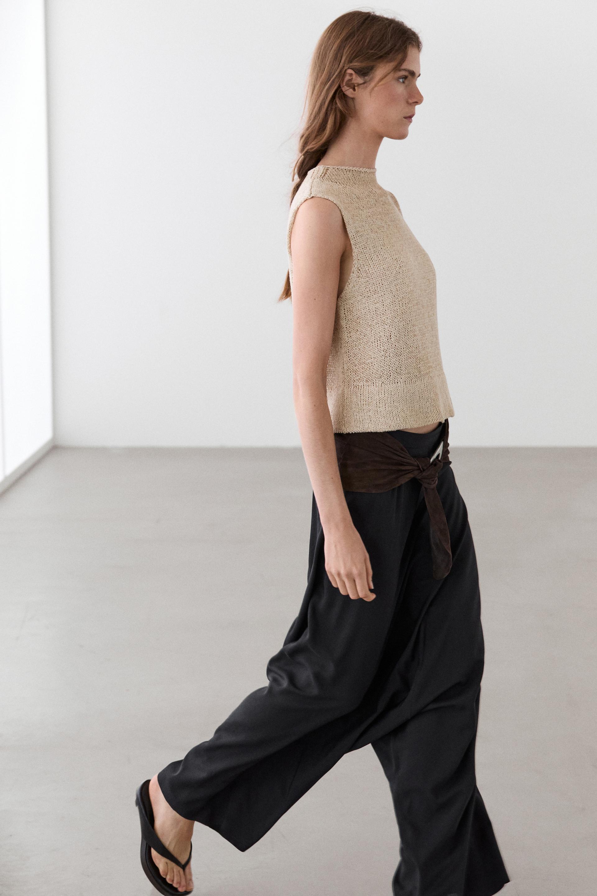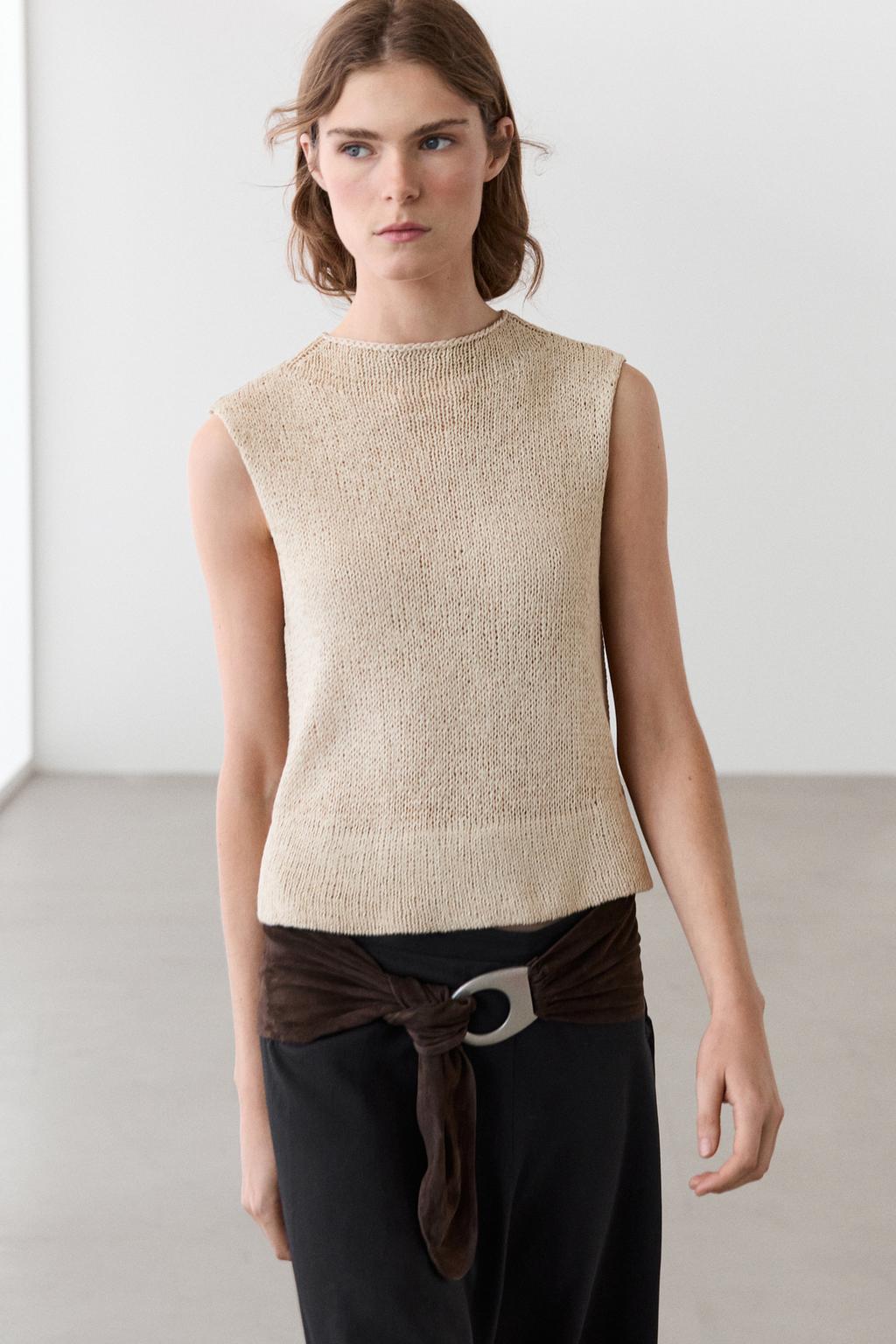 Massimo Dutti Трикотажный топ со льном, бежевый