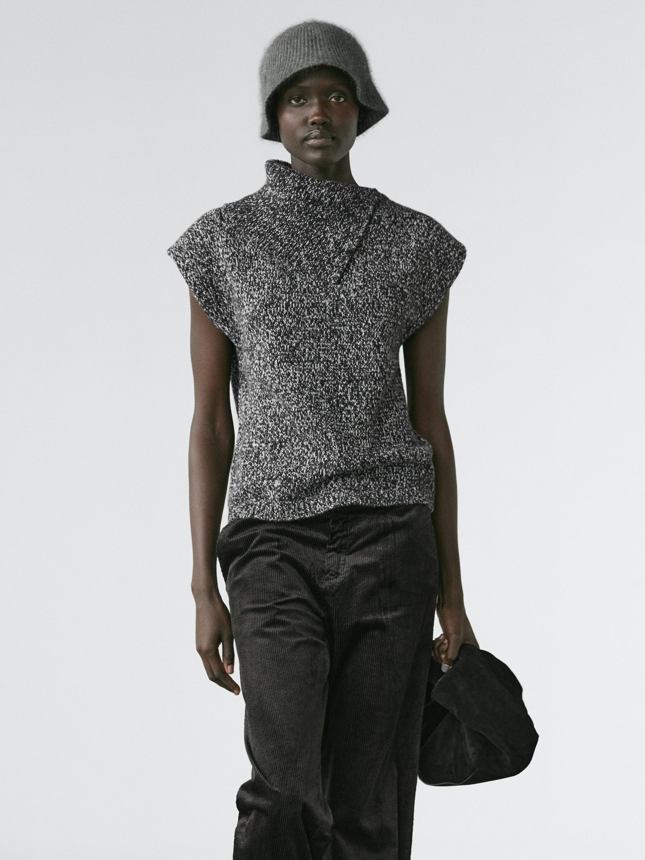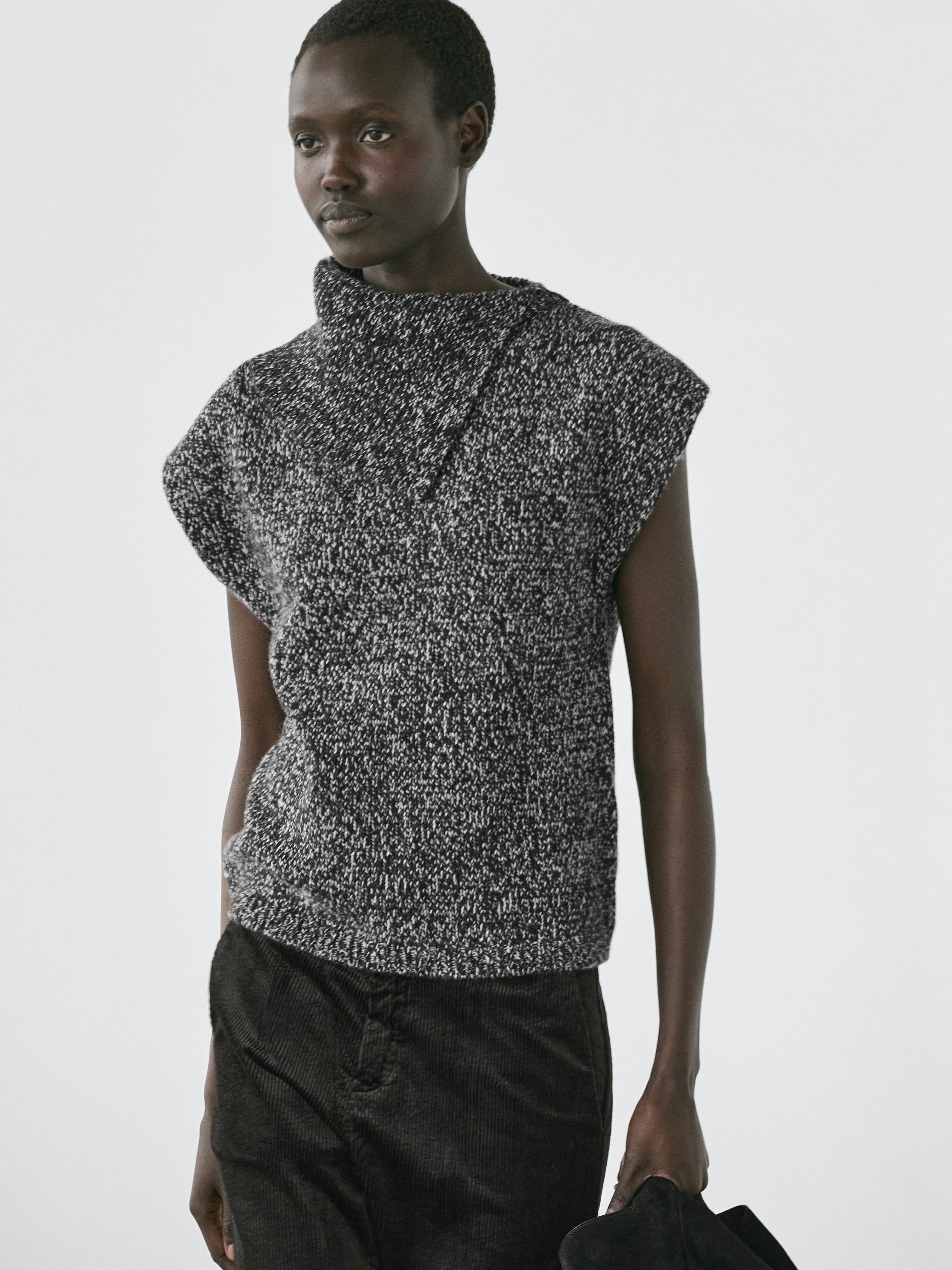 Massimo Dutti Трикотажный жилет мулине с воротником, черный