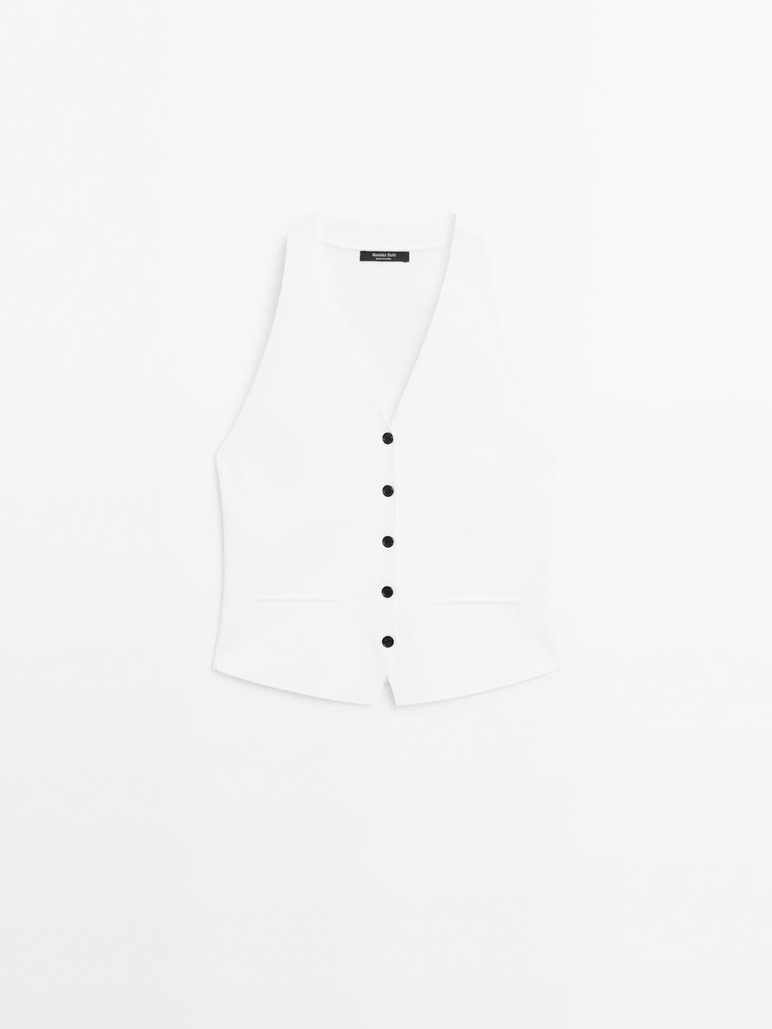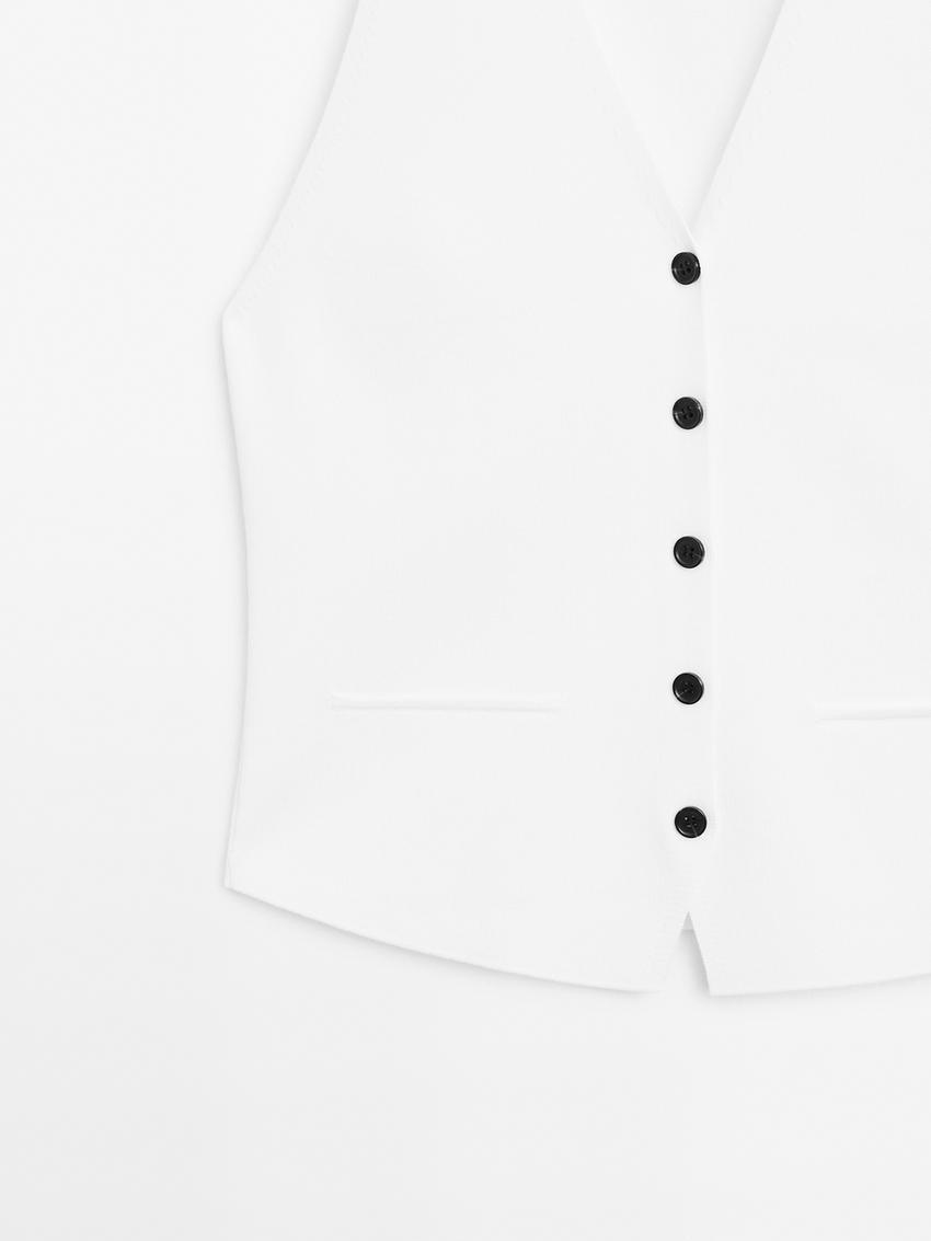 Massimo Dutti Трикотажный жилет с контрастными пуговицами, белый