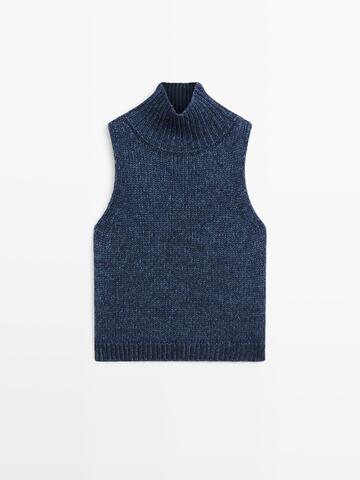 Massimo Dutti Трикотажный жилет с высоким воротником, синий