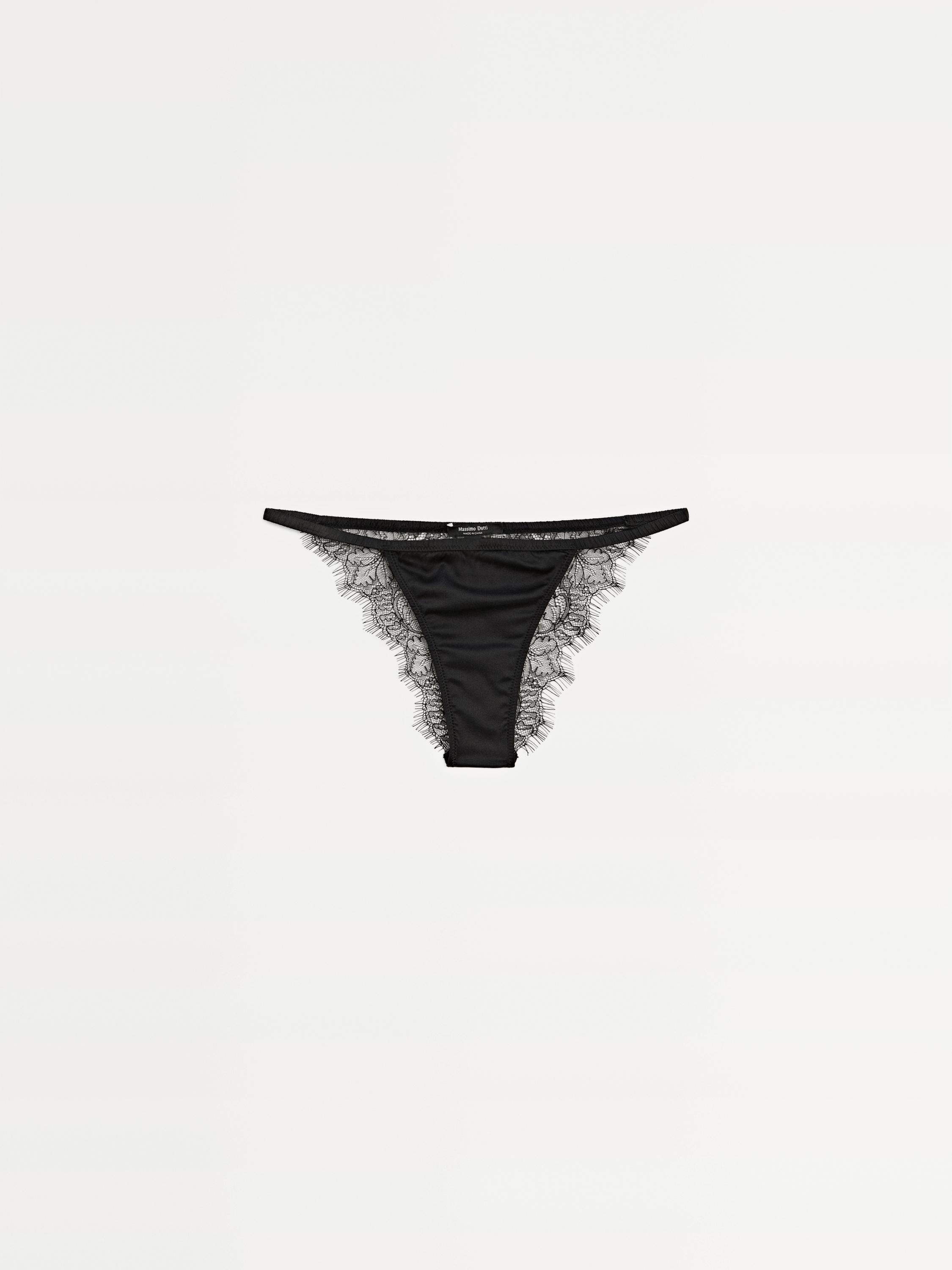 Massimo Dutti Трусы из смесового шелка с кружевом, черный