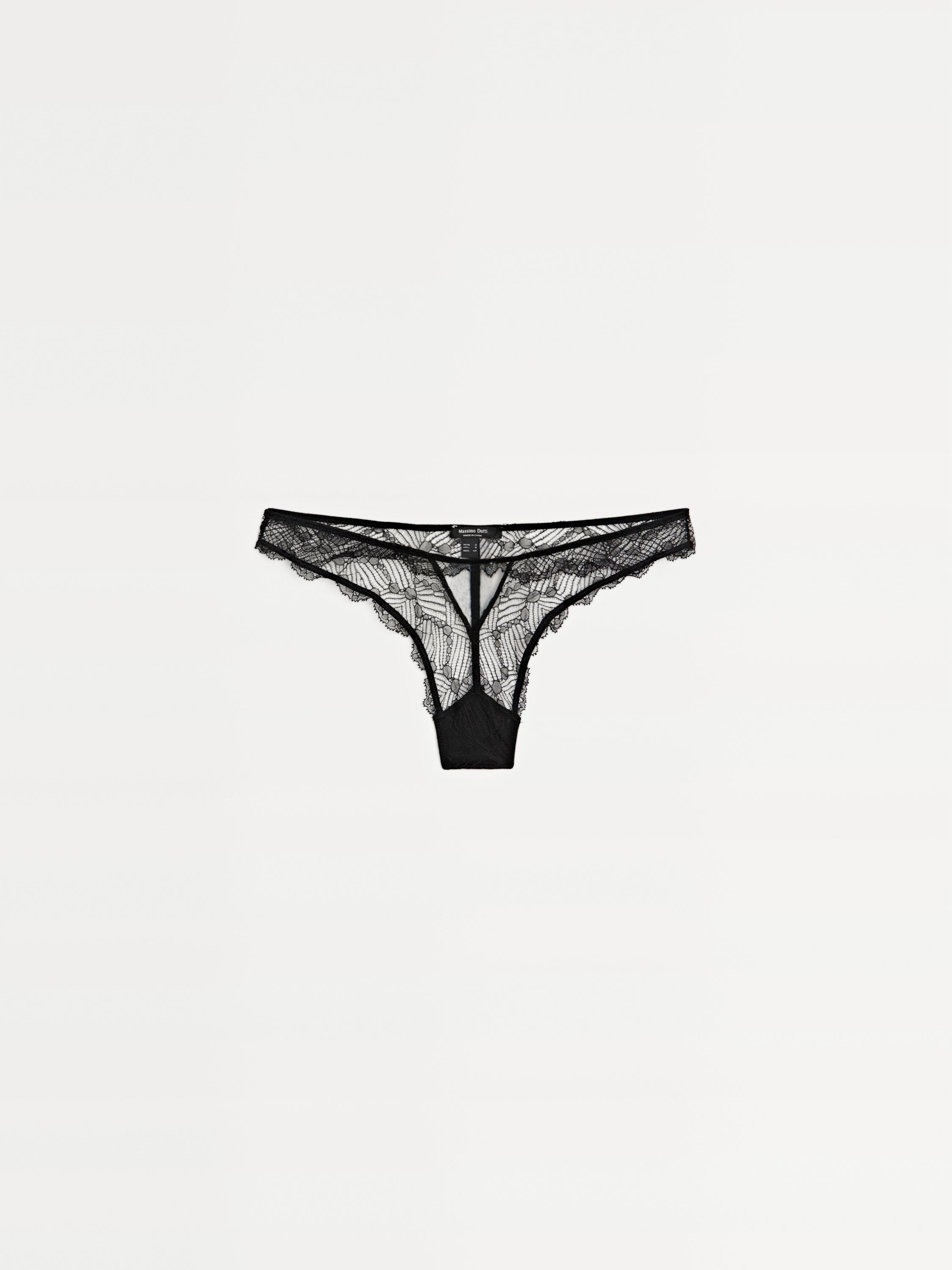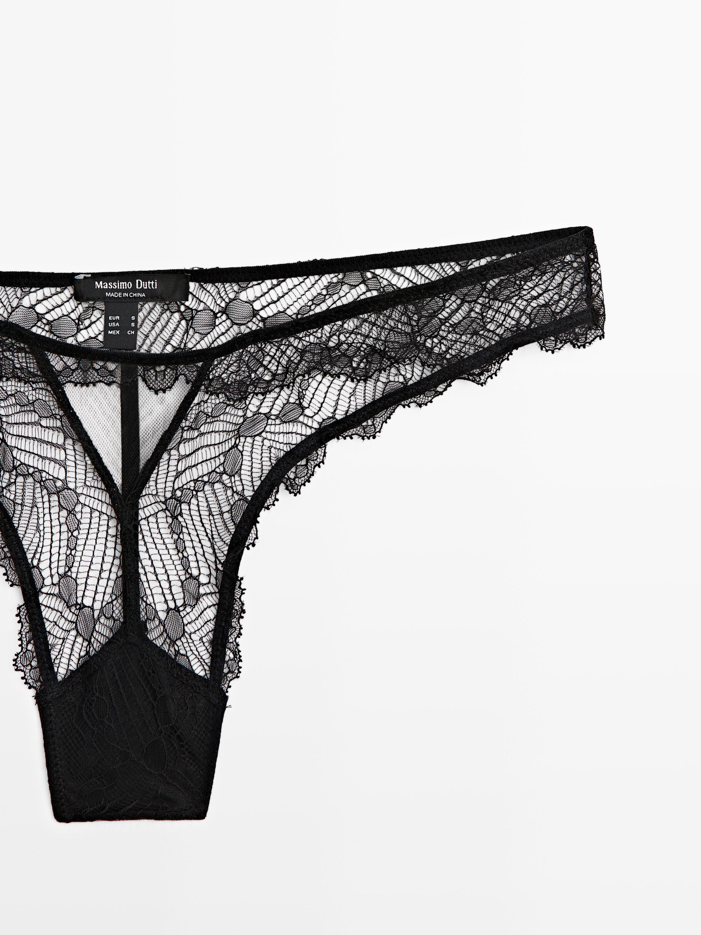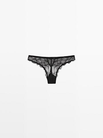 Massimo Dutti Трусы-танга из кружева с сетчатыми деталями, черный