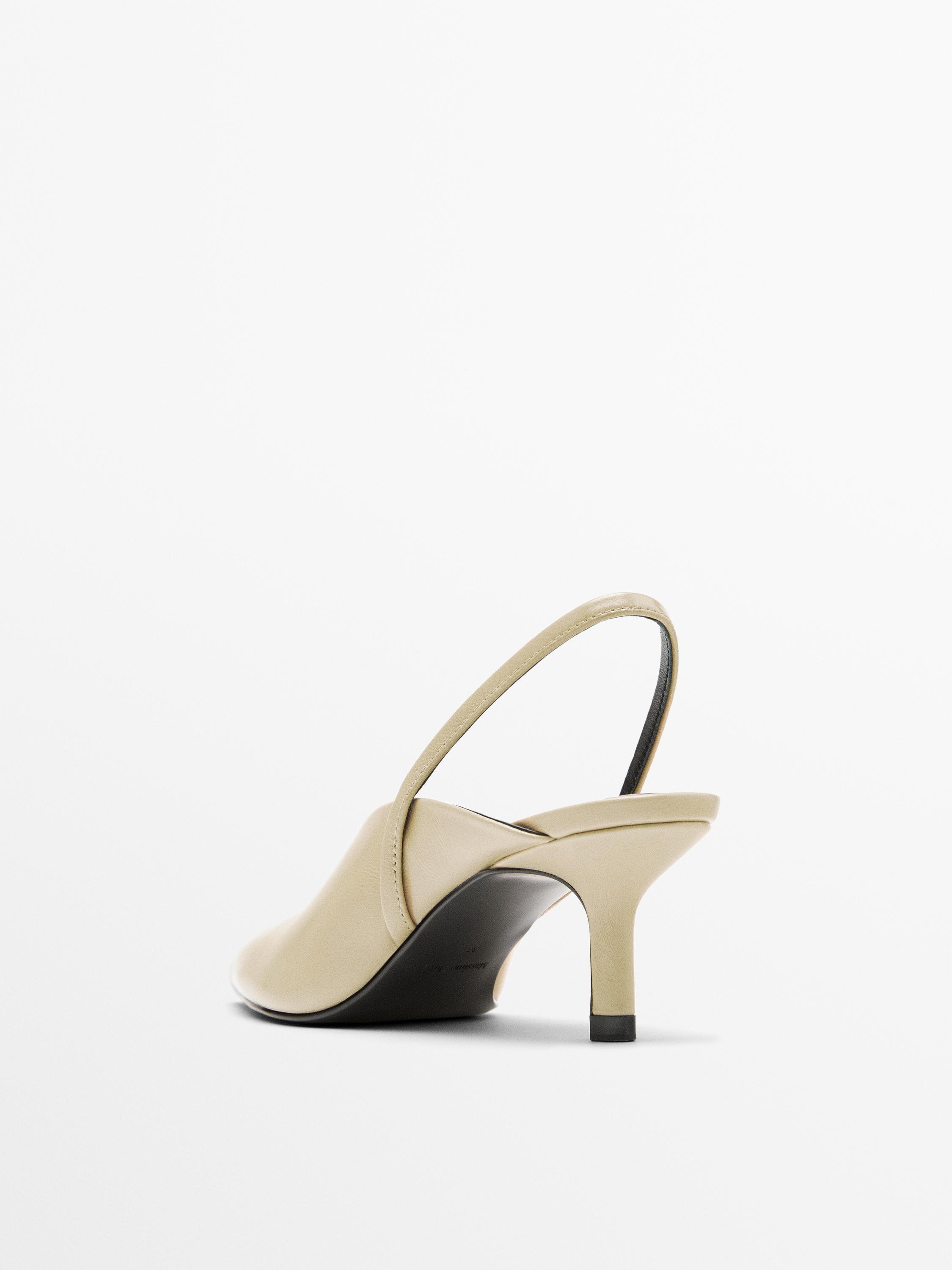 Massimo Dutti Туфли на высоком каблуке с открытой пяткой, кремовый