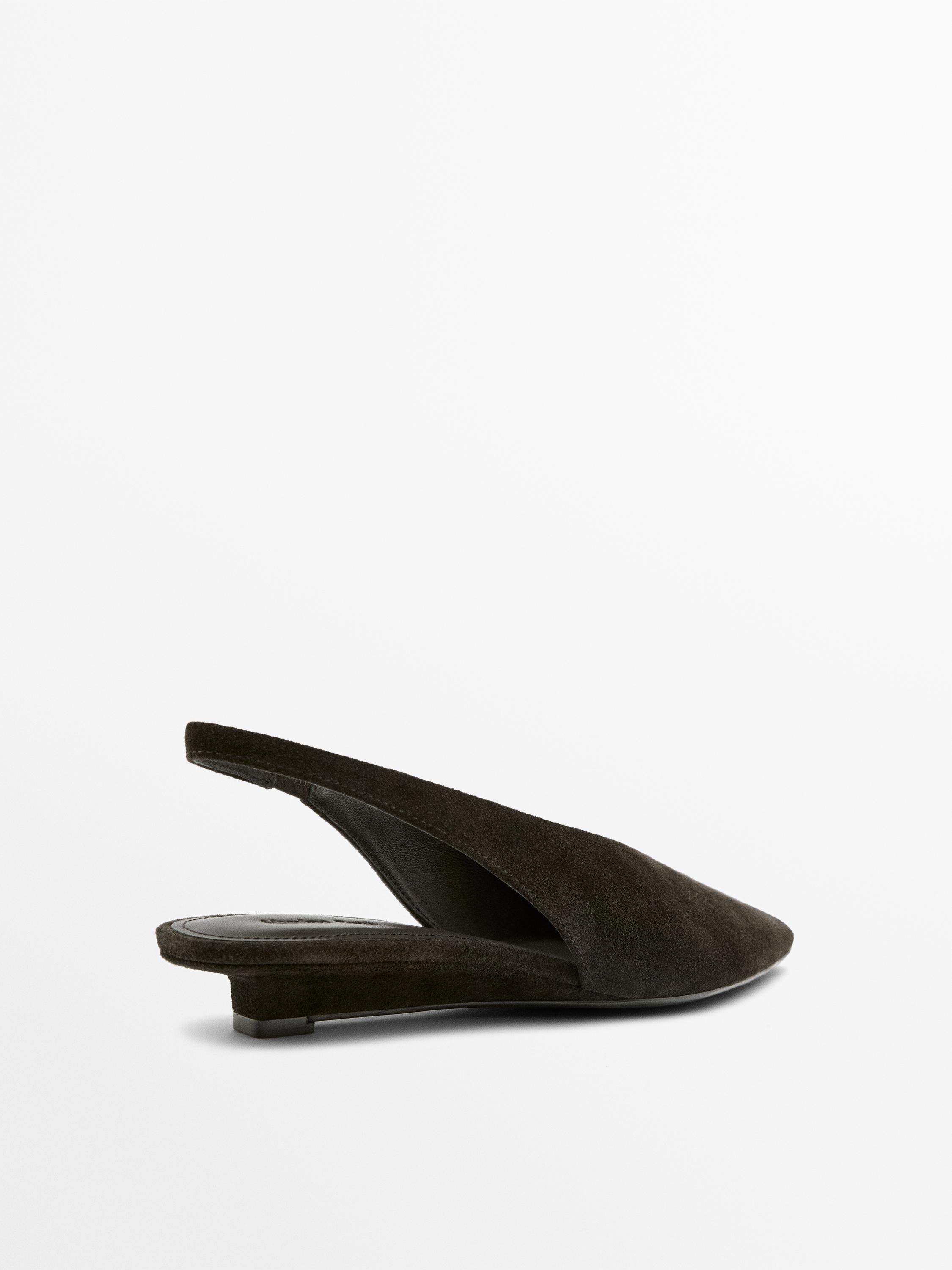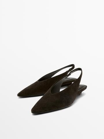 Massimo Dutti Туфли-слингбэки из натуральной замши с открытой пяткой, коричневый