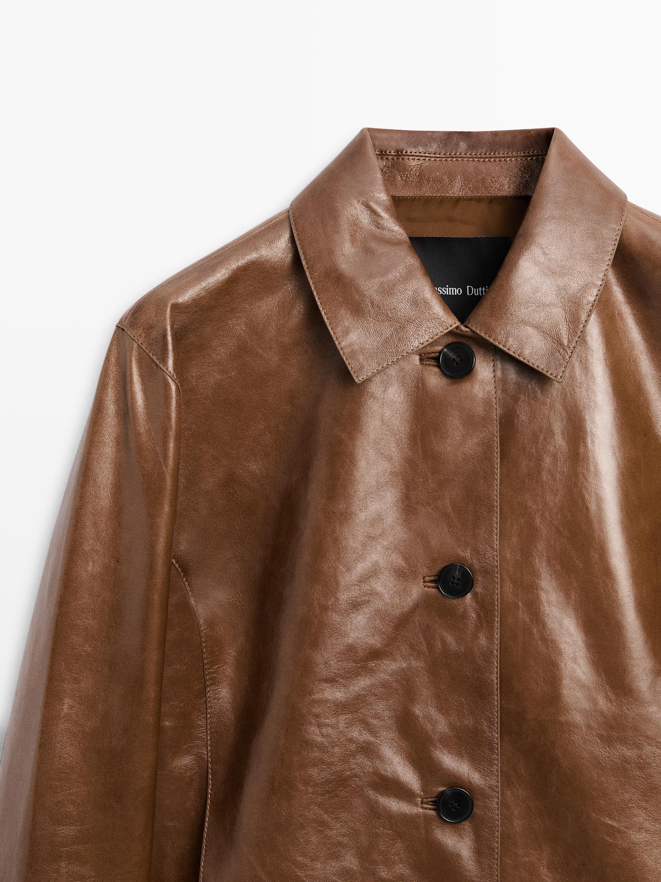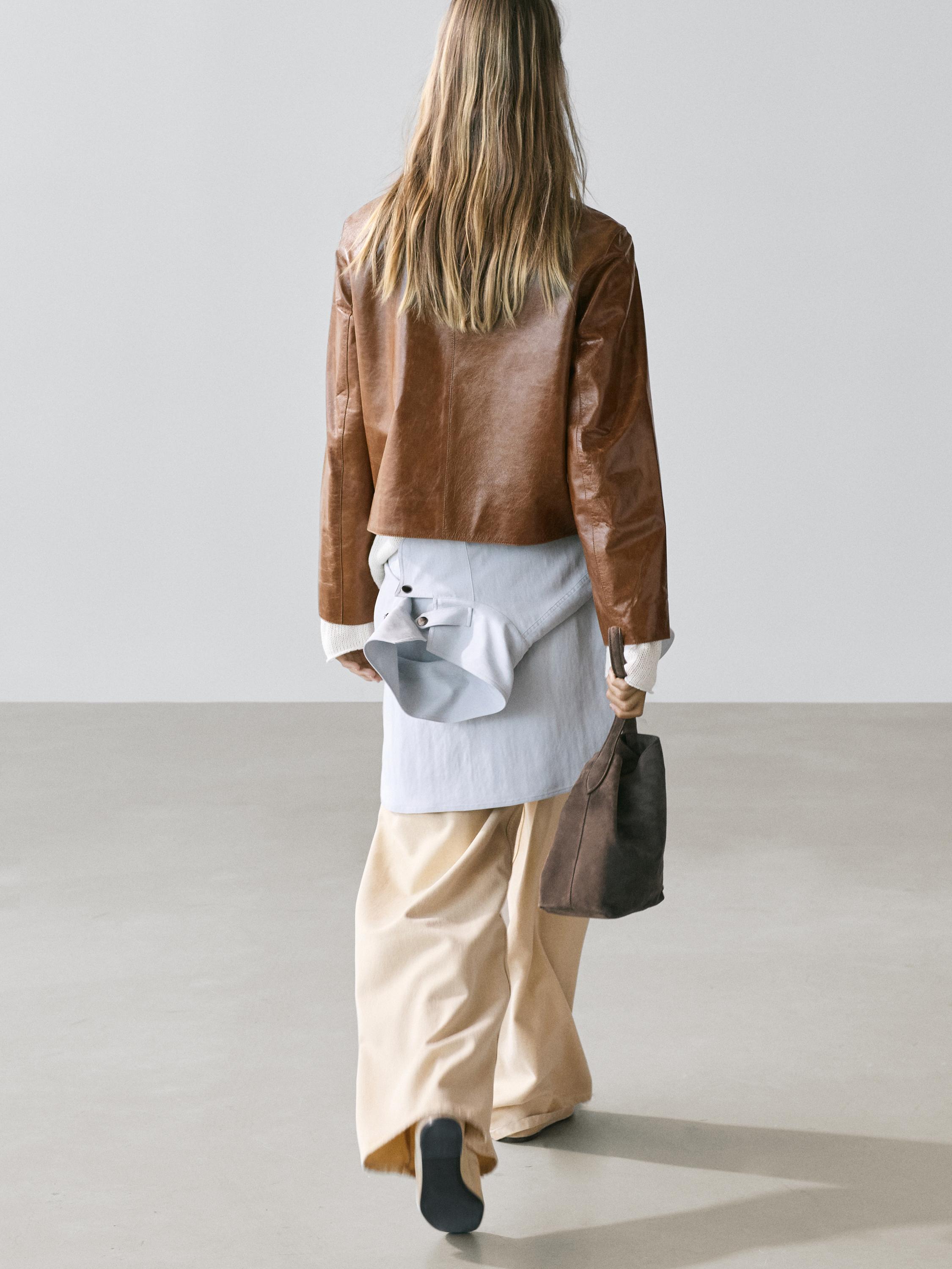 Massimo Dutti Укороченная куртка из кожи наппа, цвет верблюжьей шерсти
