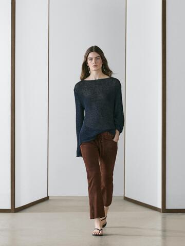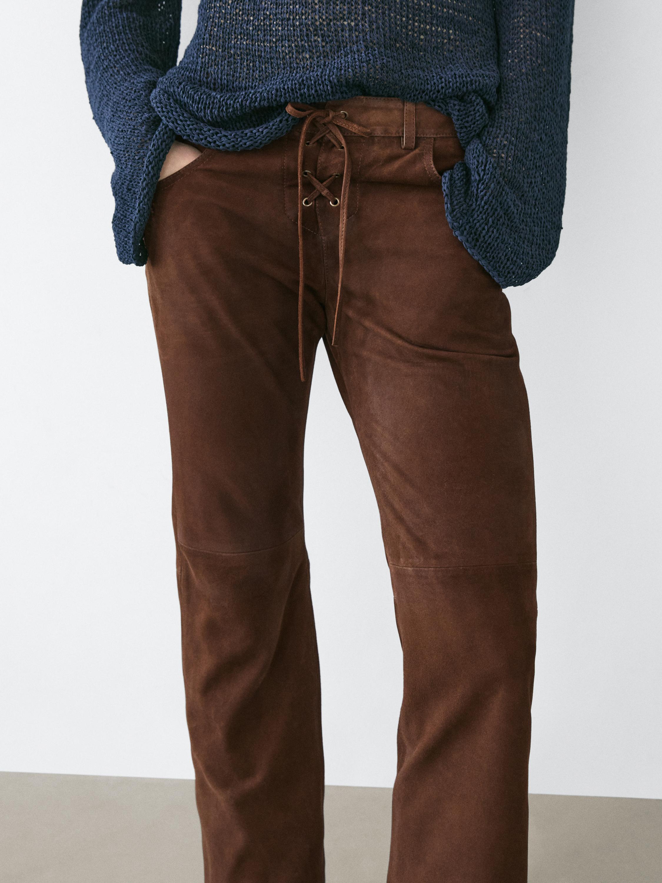 Massimo Dutti Укороченные замшевые брюки на шнуровке, коричневый