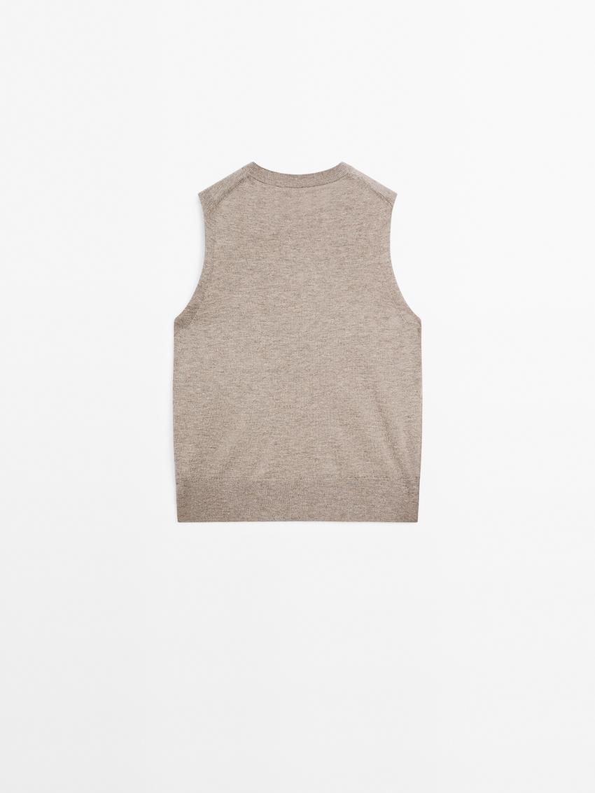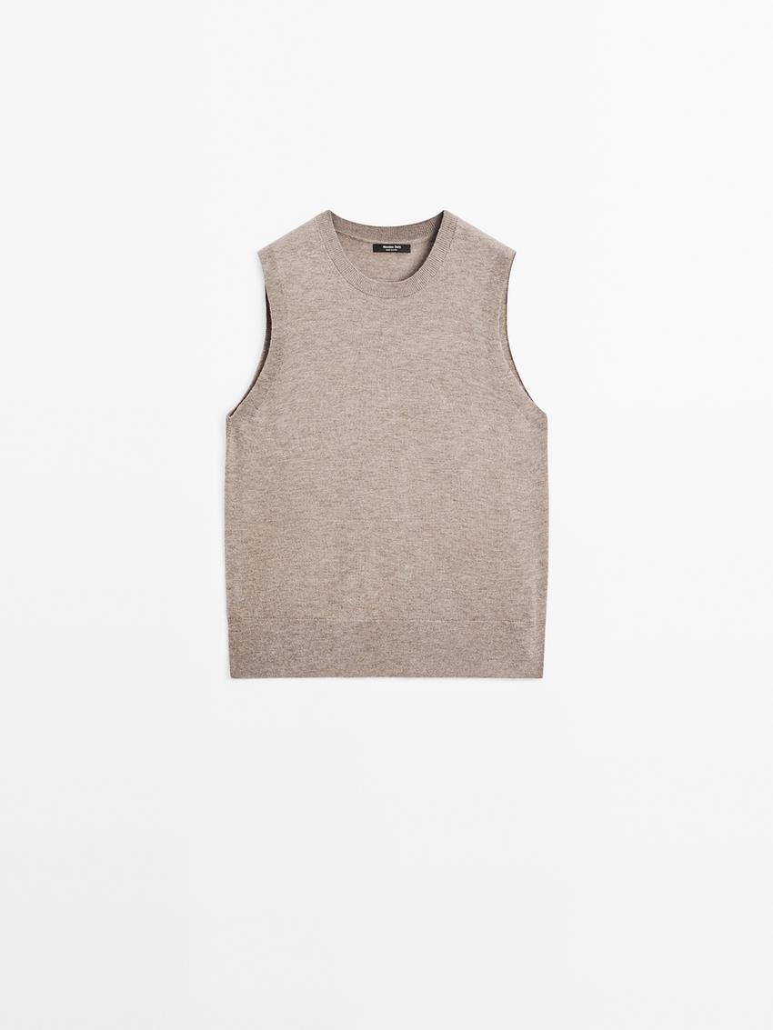 Massimo Dutti Укороченный жилет из смесовой шерсти с круглым вырезом, кротово-коричневый