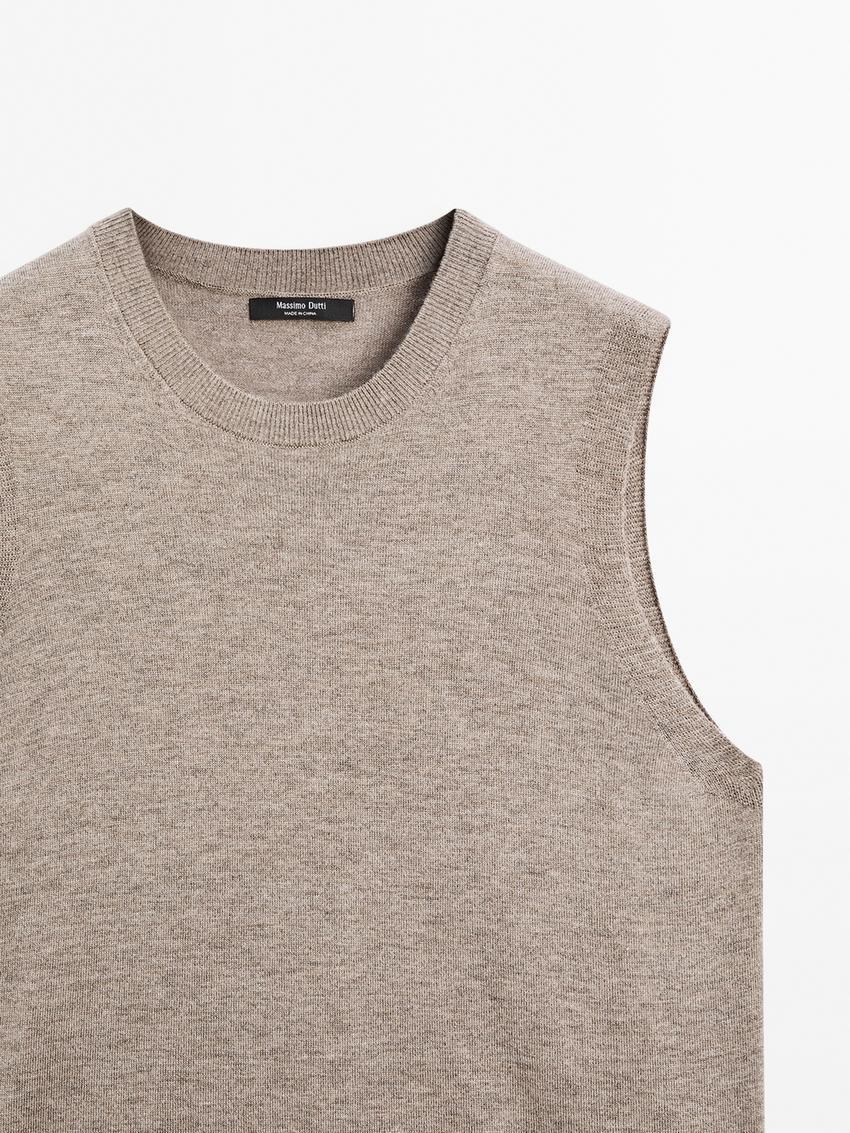 Трикотажный жилет из хлопковой ткани. Круглый вырез горловины. Без рукавов.