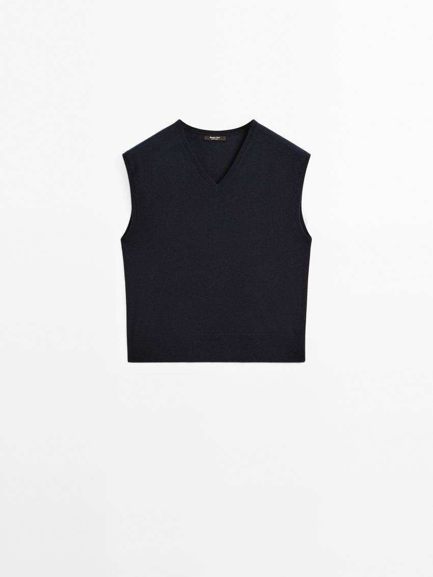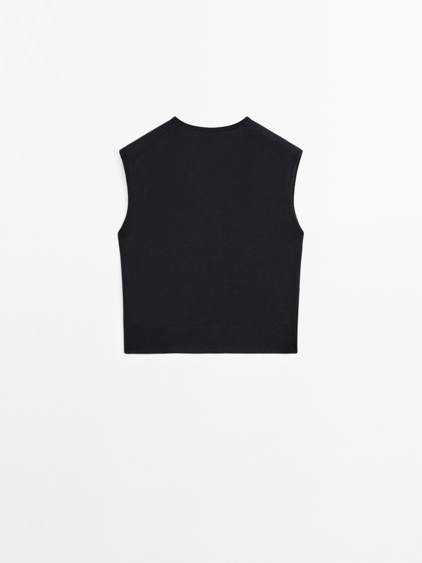 Massimo Dutti Укороченный жилет с V-образным вырезом, темно-синий