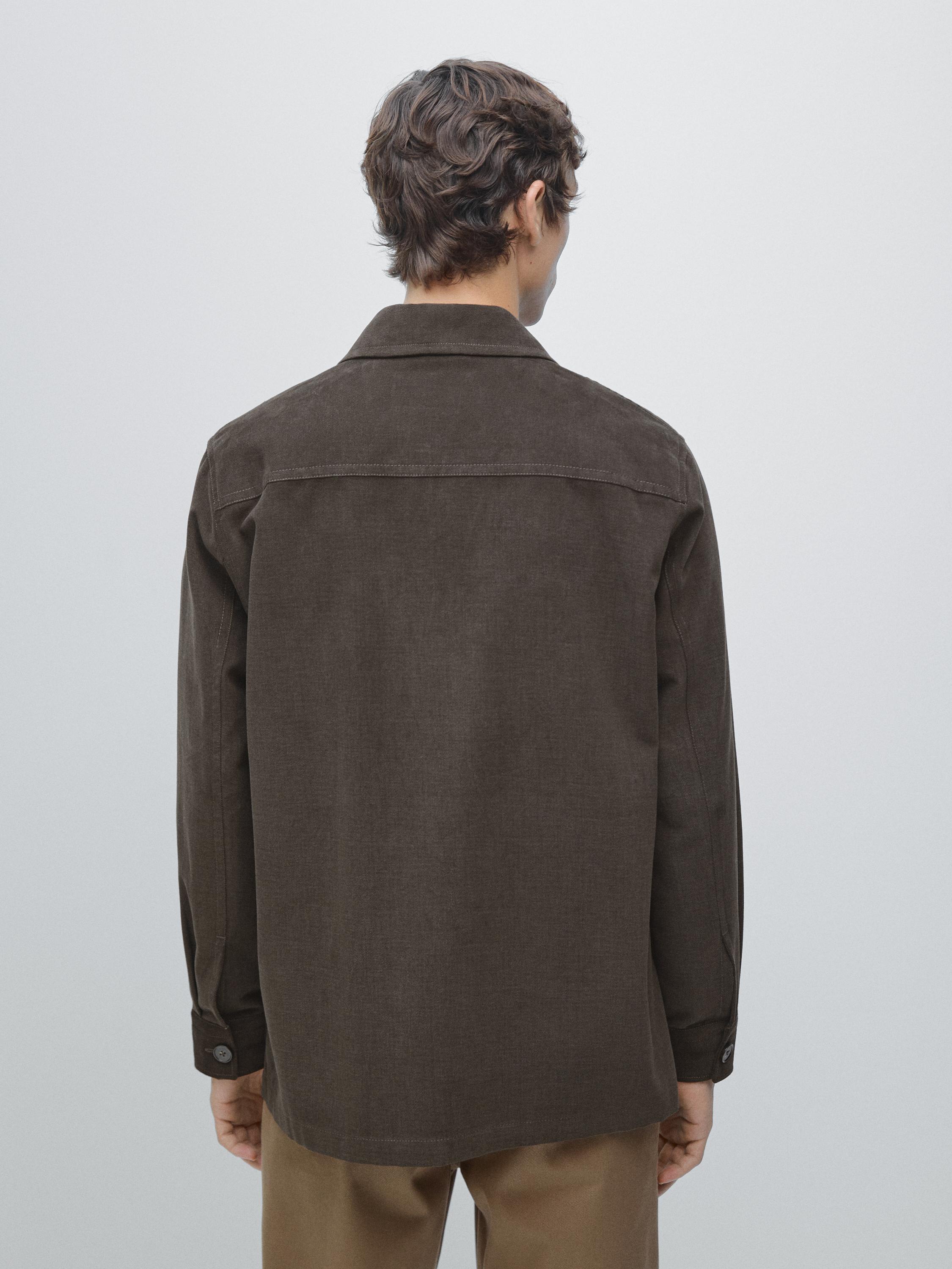 Massimo Dutti Вельветовая куртка-рубашка с карманами, коричневый
