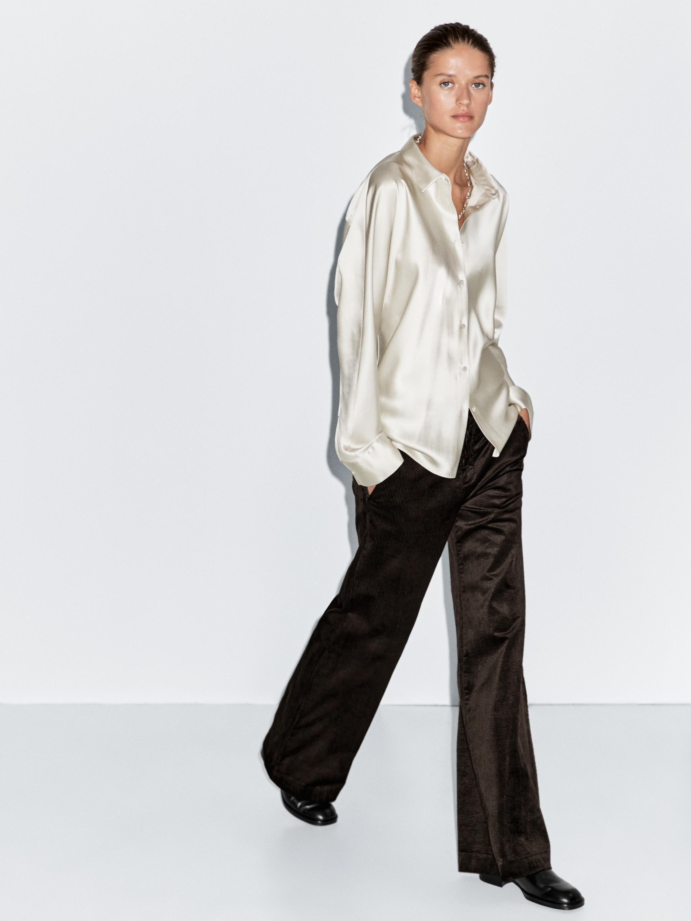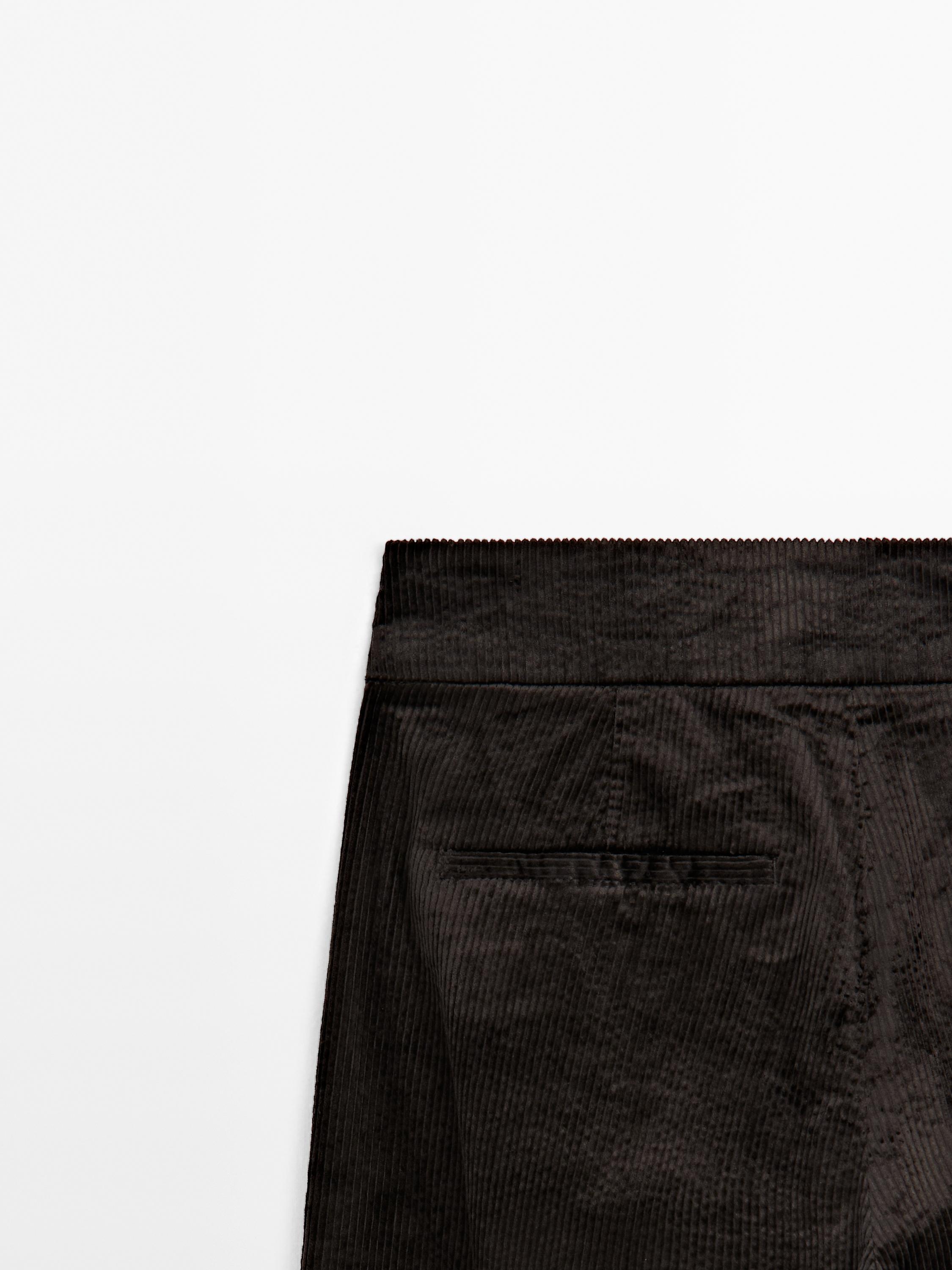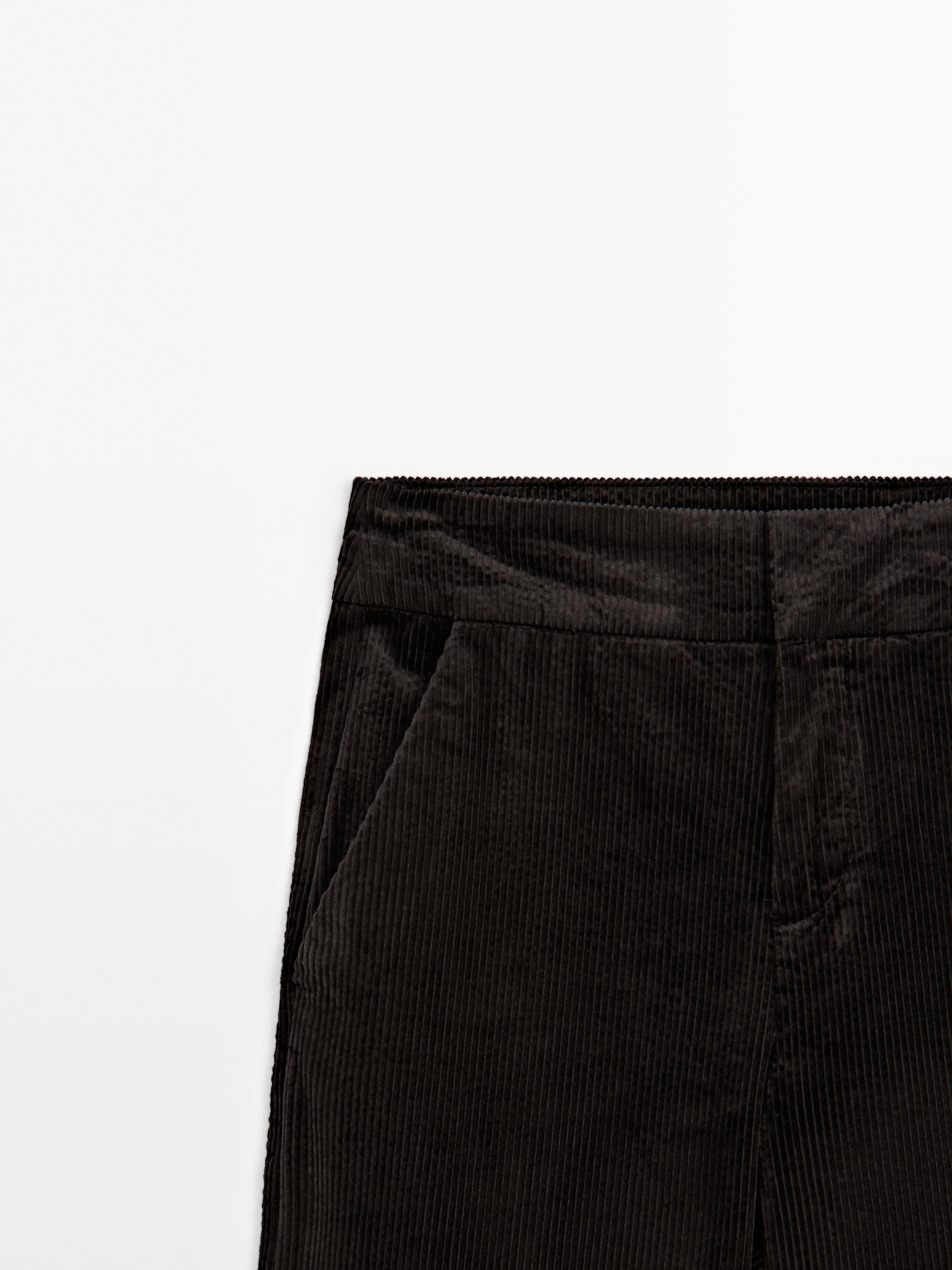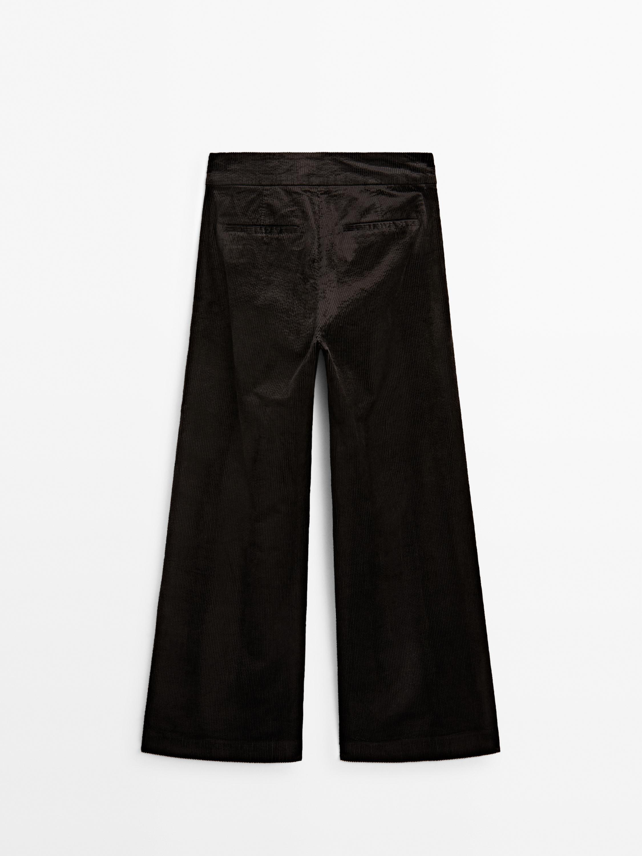 Massimo Dutti Вельветовые брюки-палаццо со средней посадкой, шоколадный