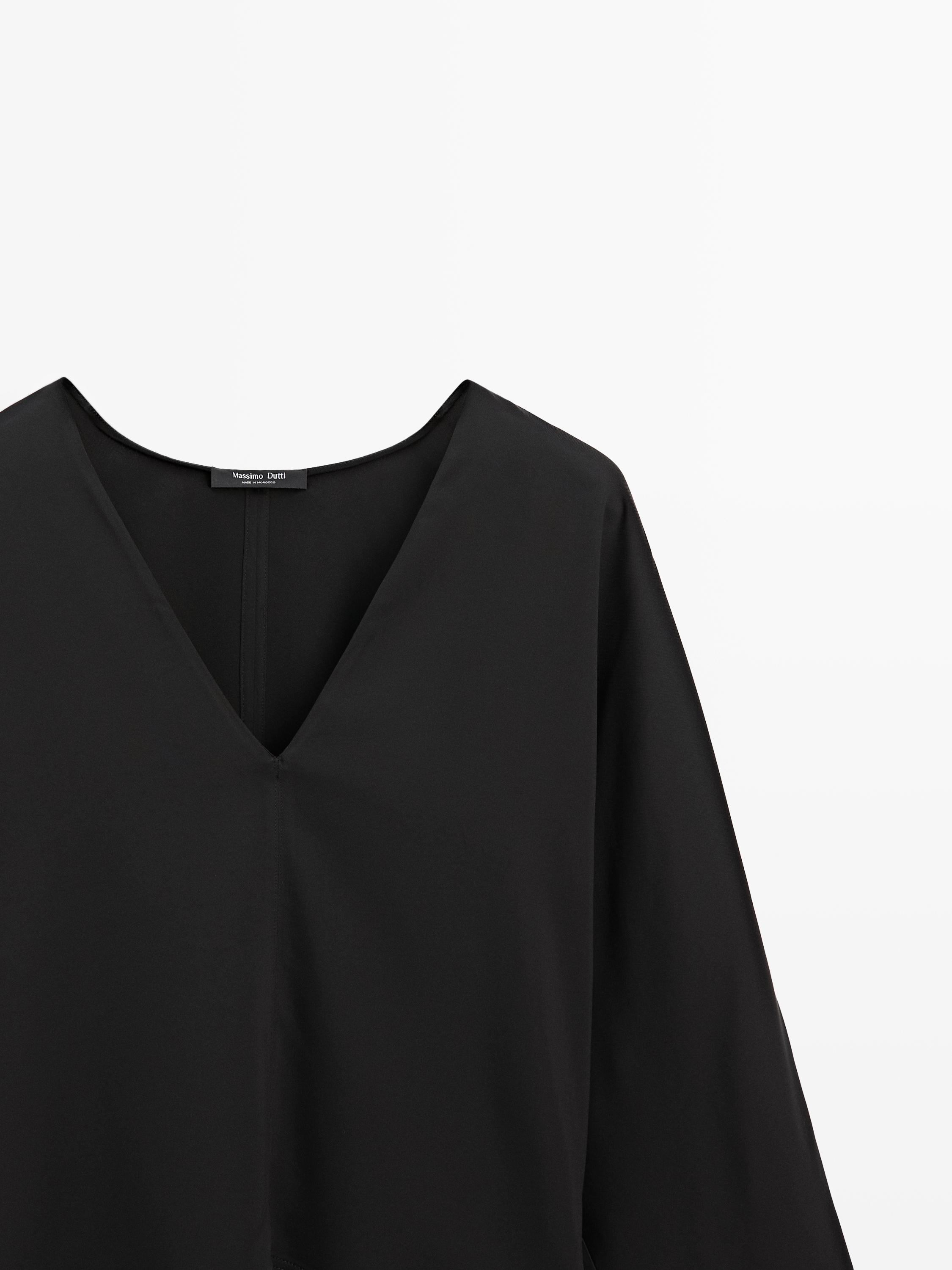 Massimo Dutti Вид Блузка с V-образным вырезом и драпировкой, черный