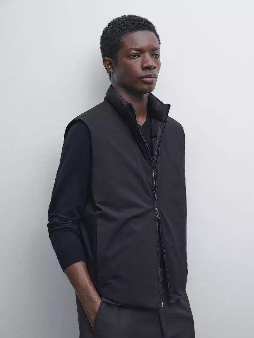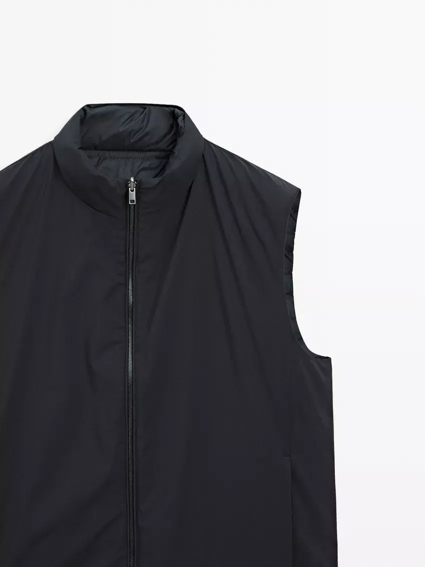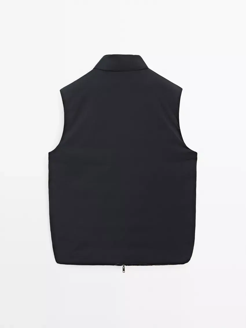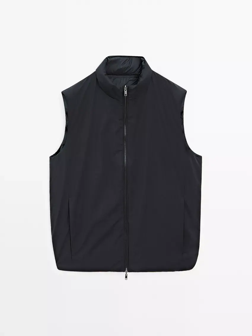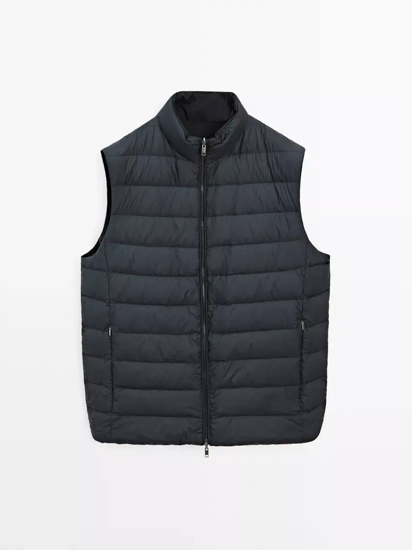 Massimo Dutti Водоотталкивающий двусторонний жилет из пуха, темно-синий