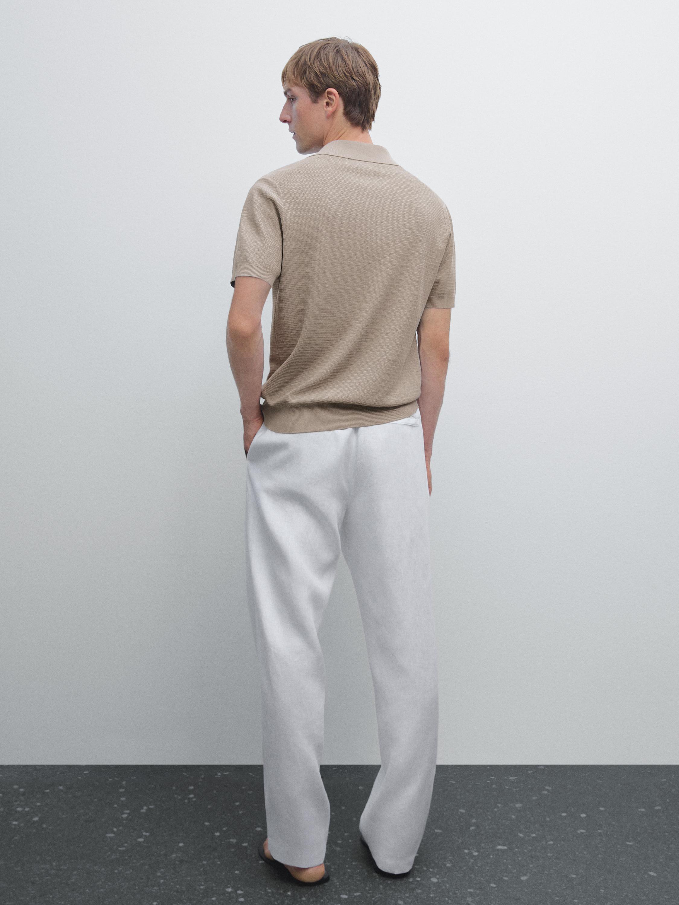 Massimo Dutti Вязаная футболка-поло с V-образным вырезом, бежевый