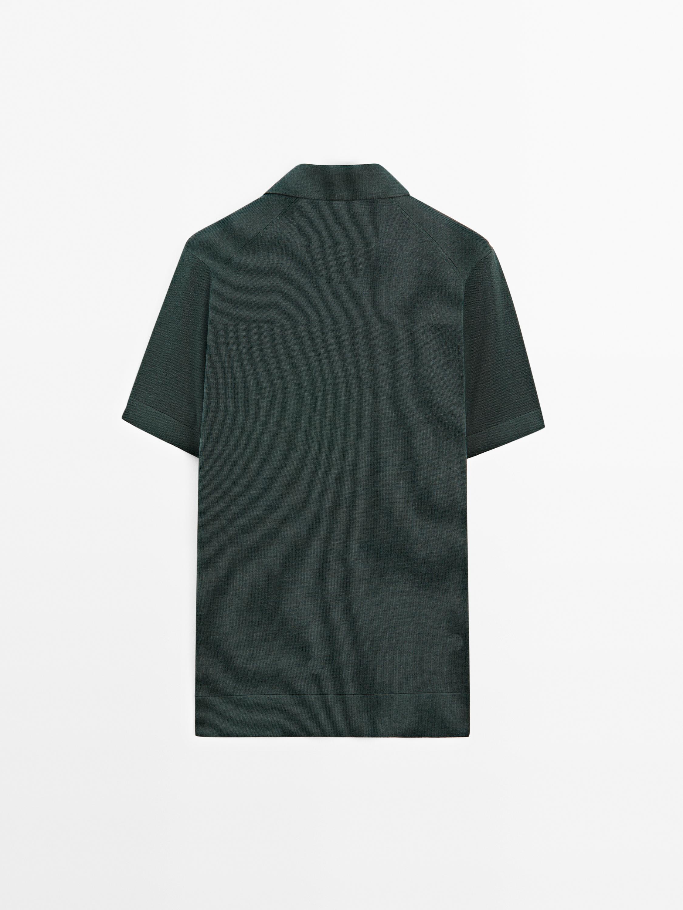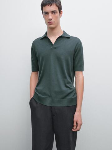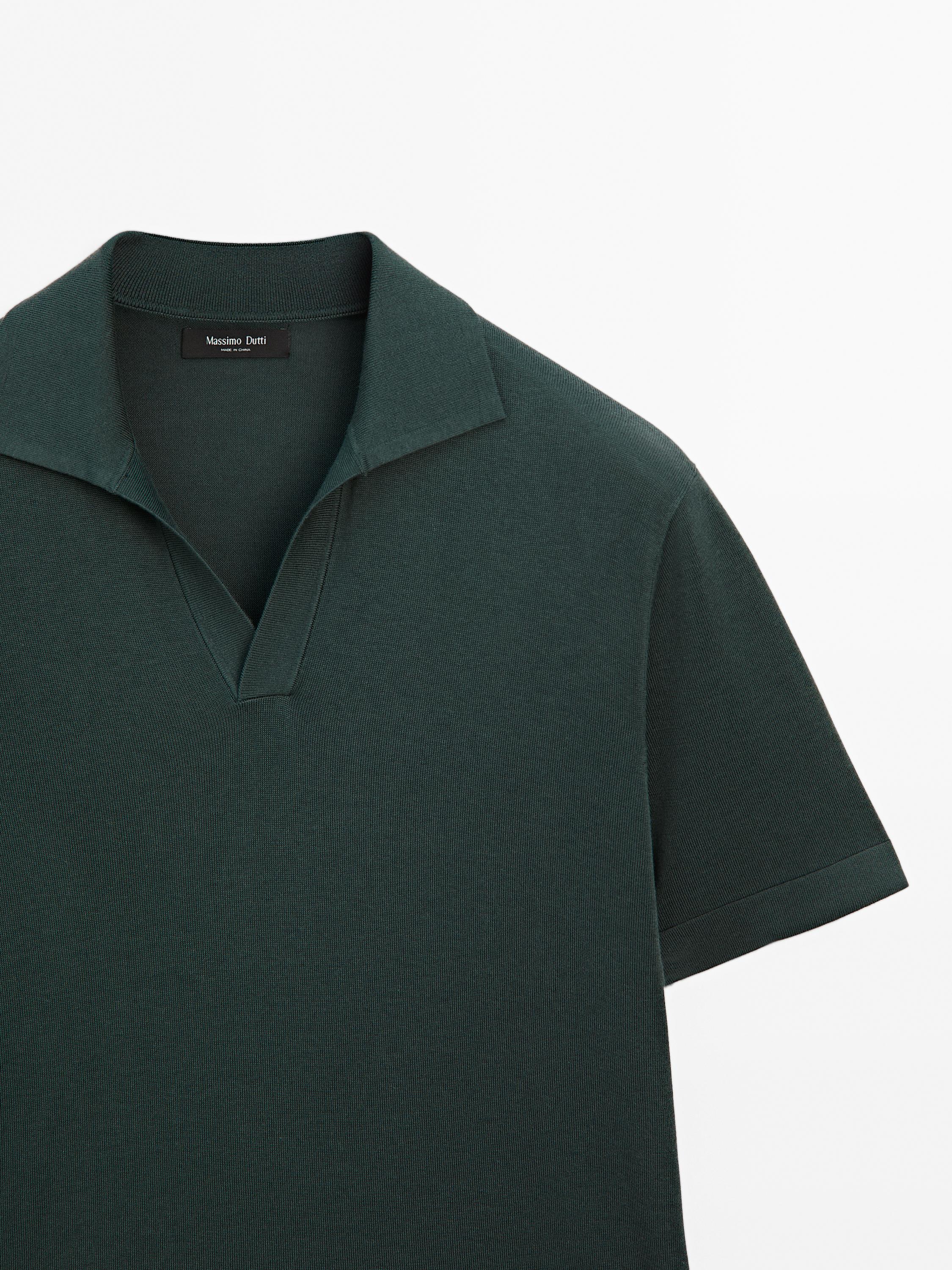 Massimo Dutti Вязаная футболка-поло с V-образным вырезом, бирюзово-зеленый