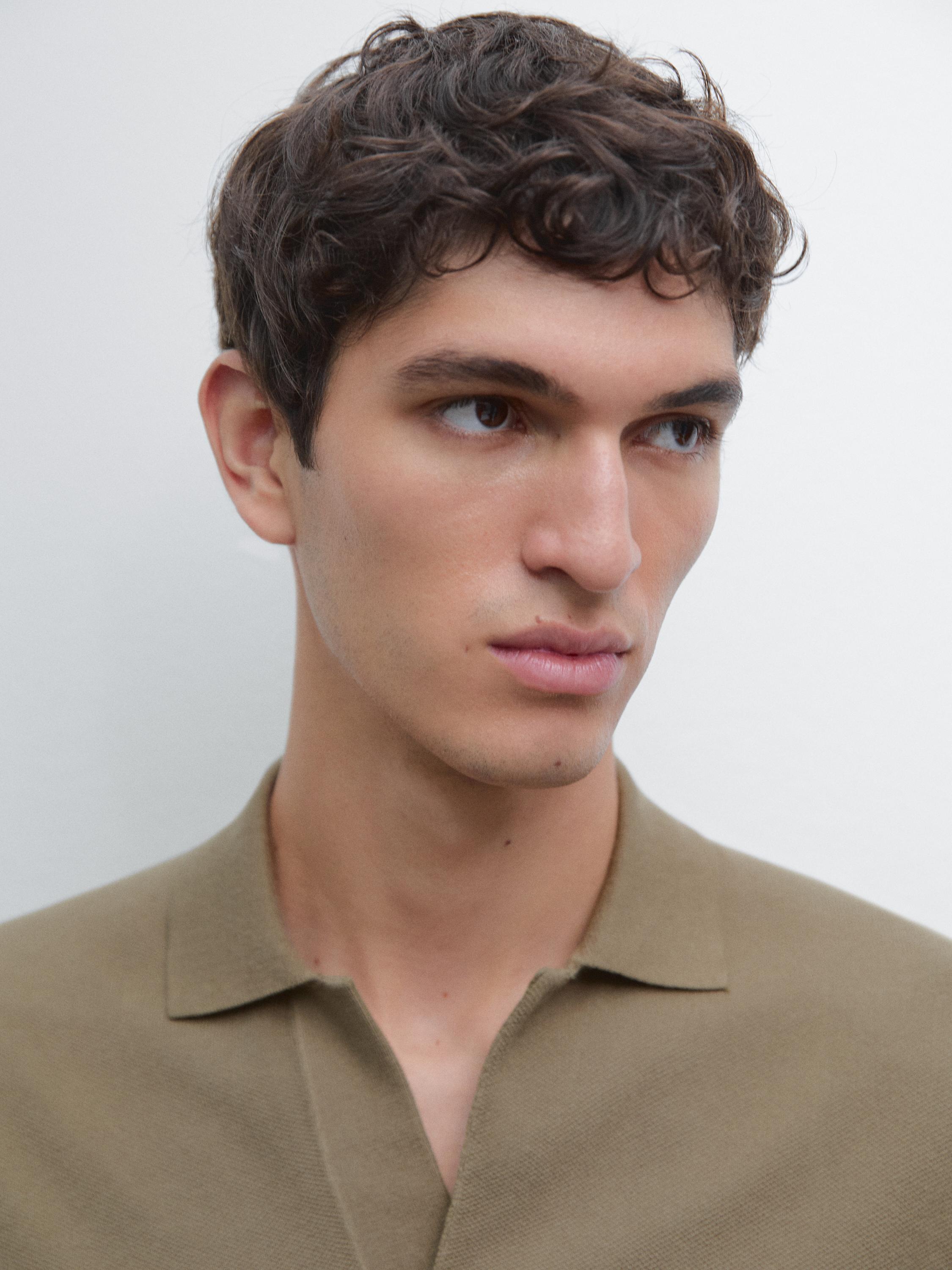Massimo Dutti Вязаная футболка-поло с V-образным вырезом, хаки