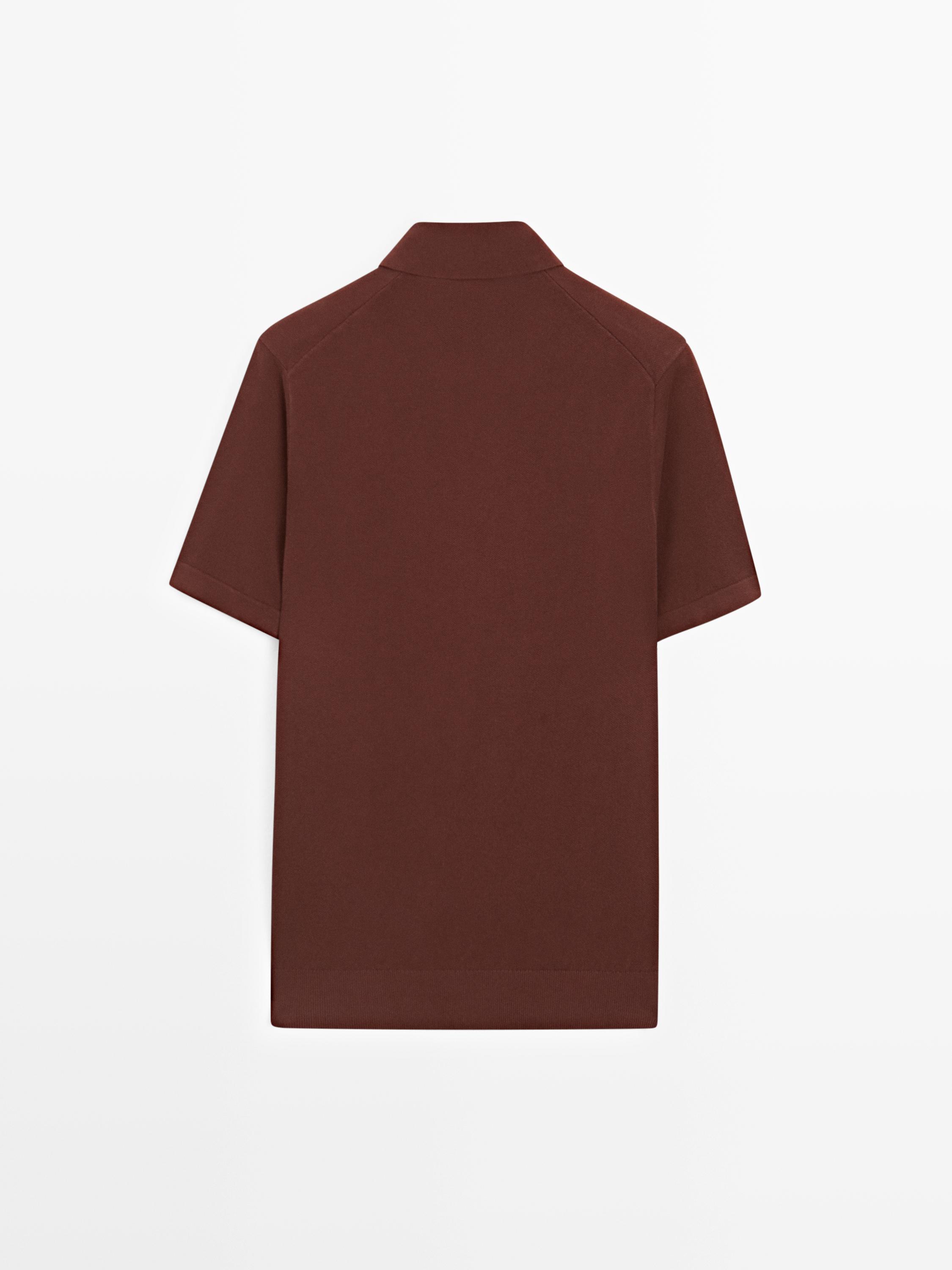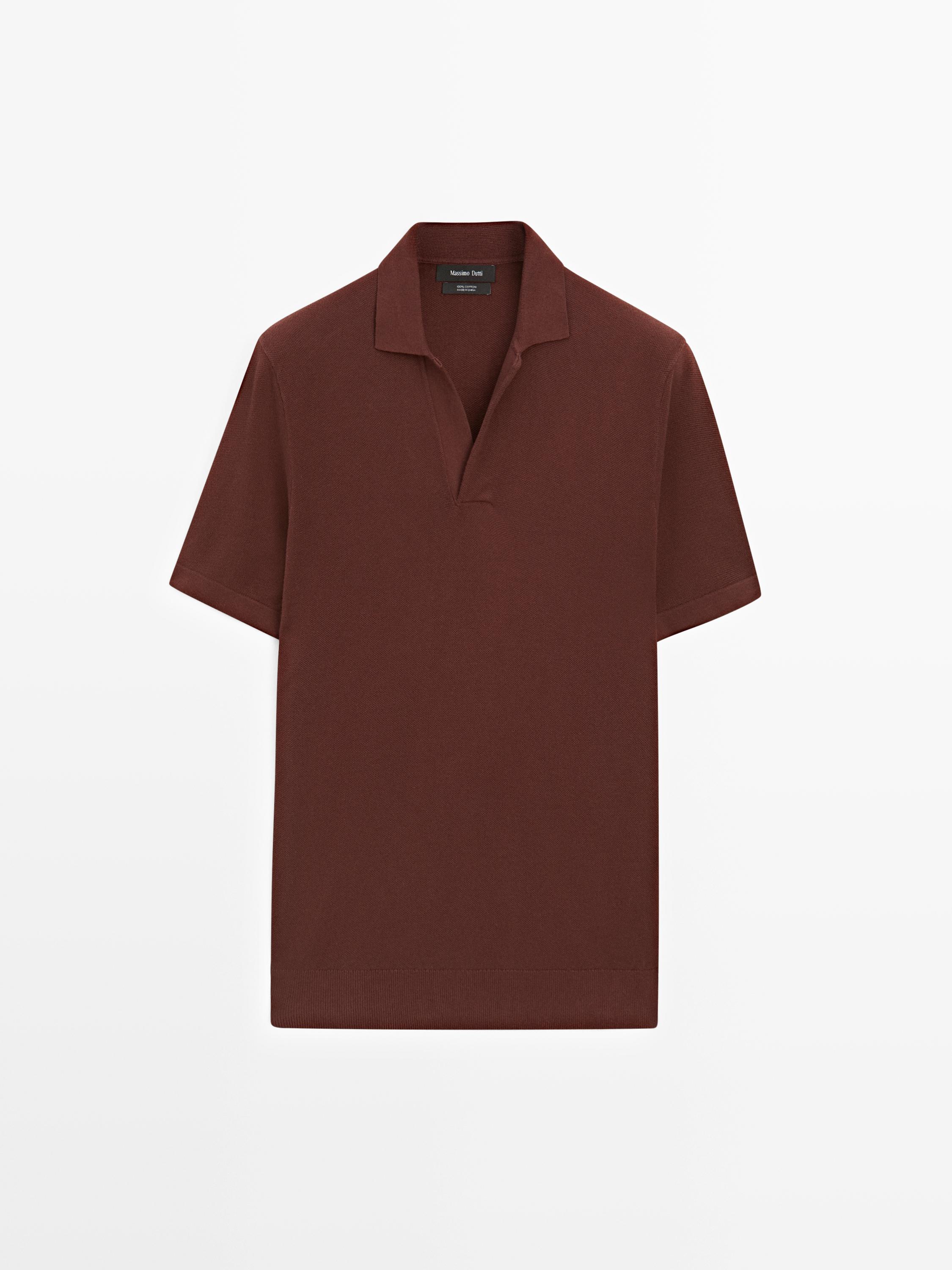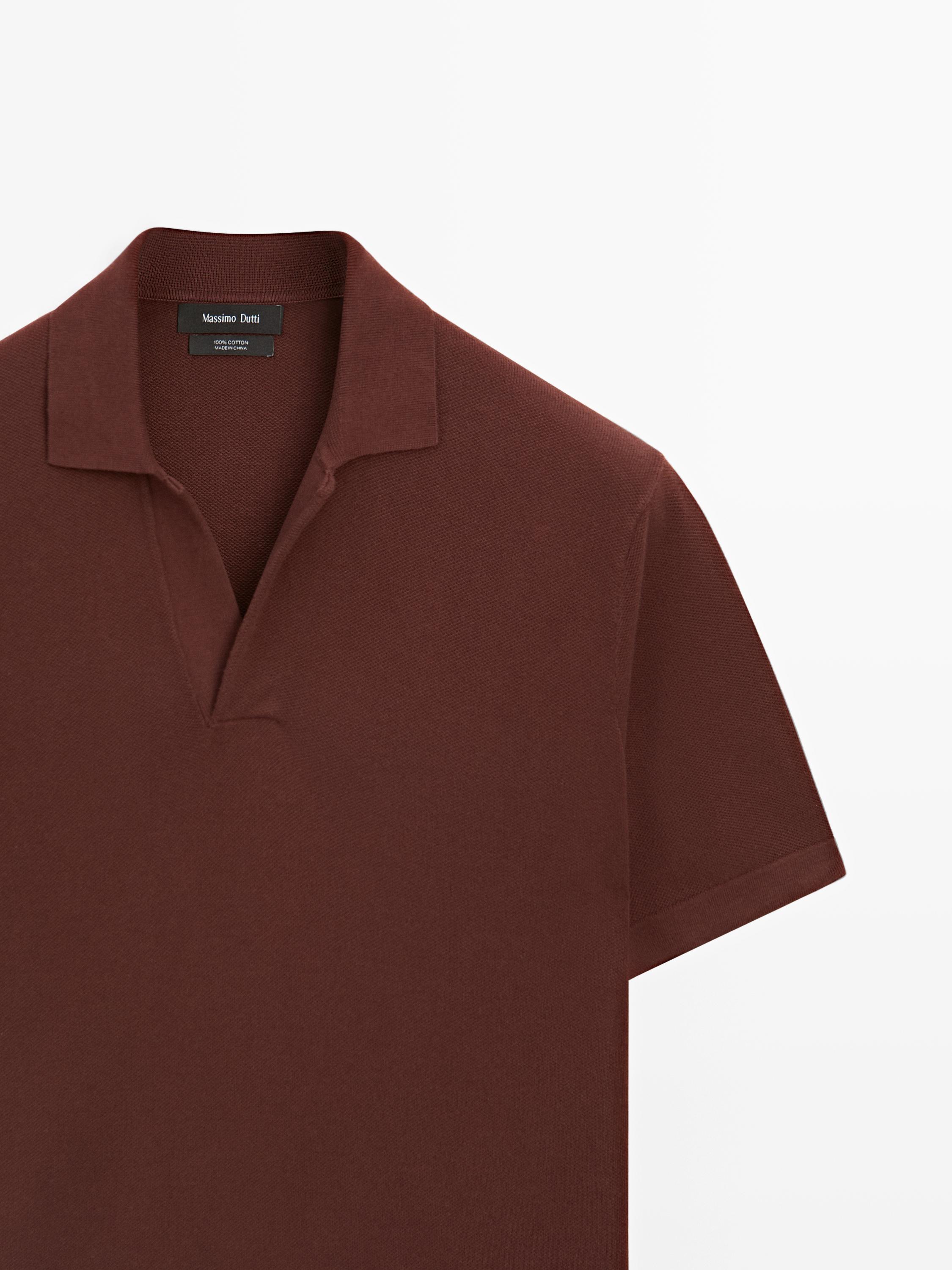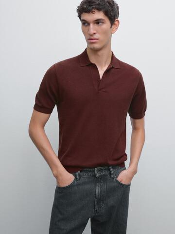 Massimo Dutti Вязаная футболка-поло с V-образным вырезом, красное дерево