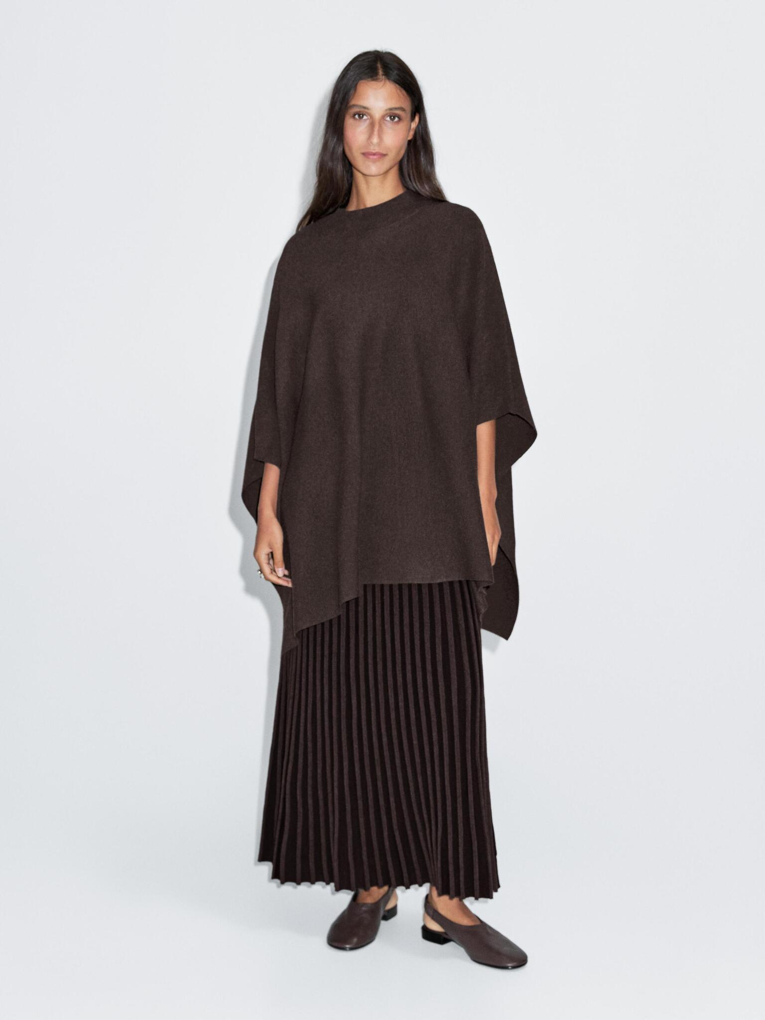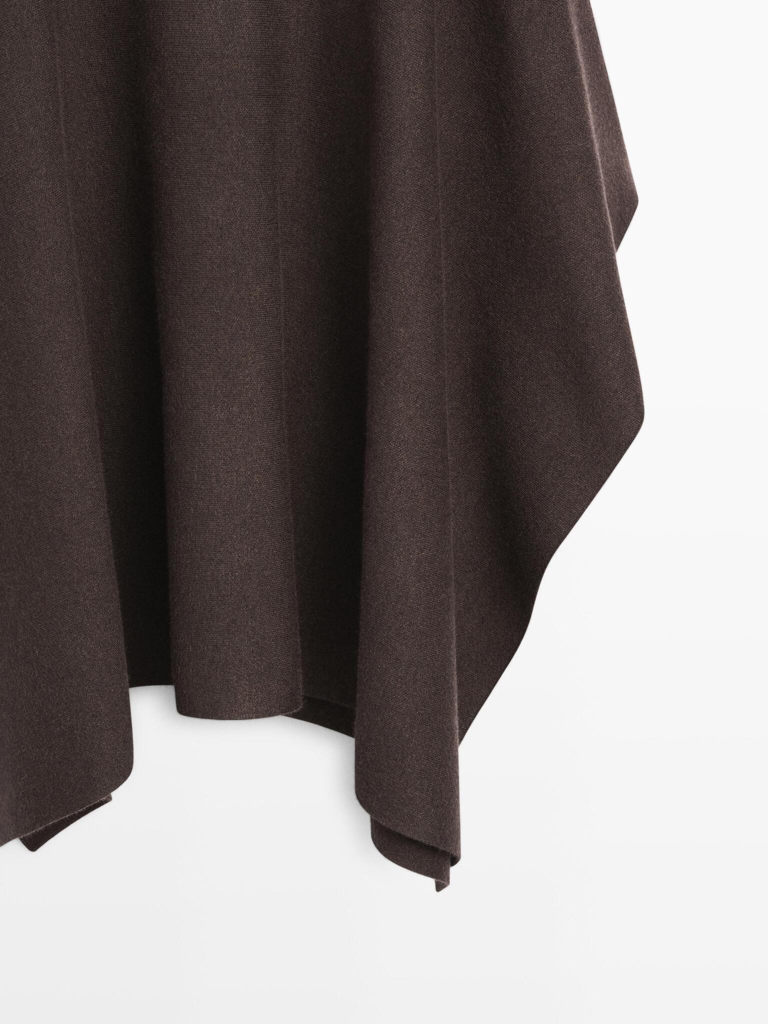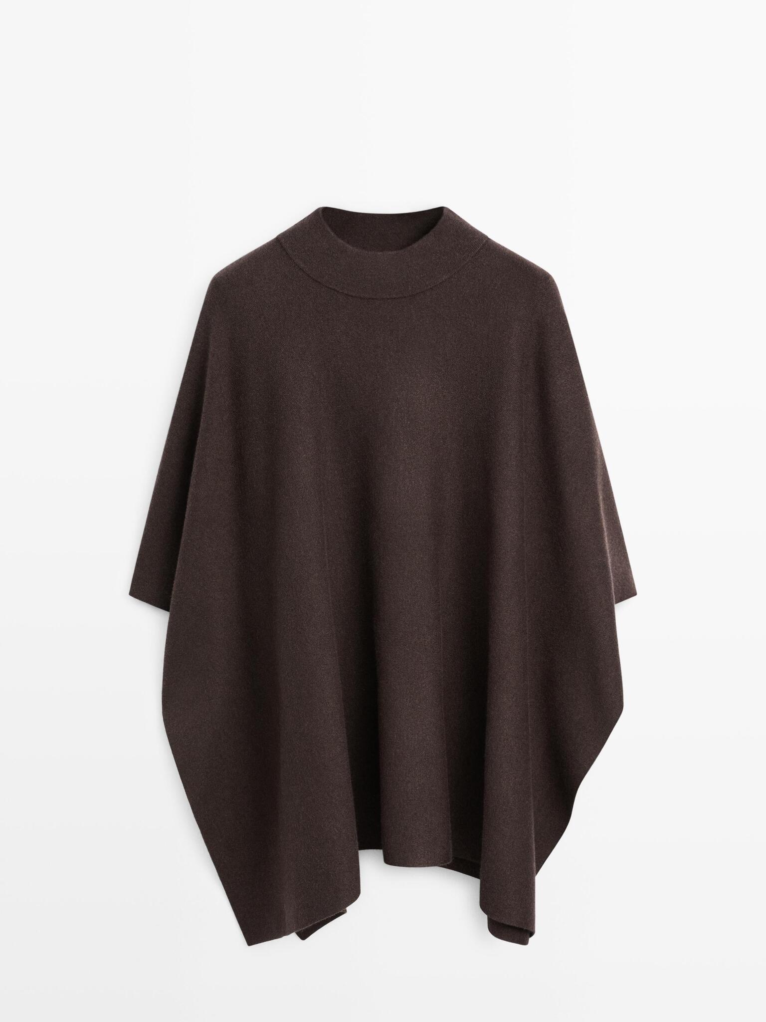 Massimo Dutti Вязаная накидка с воротником-стойкой, коричневый