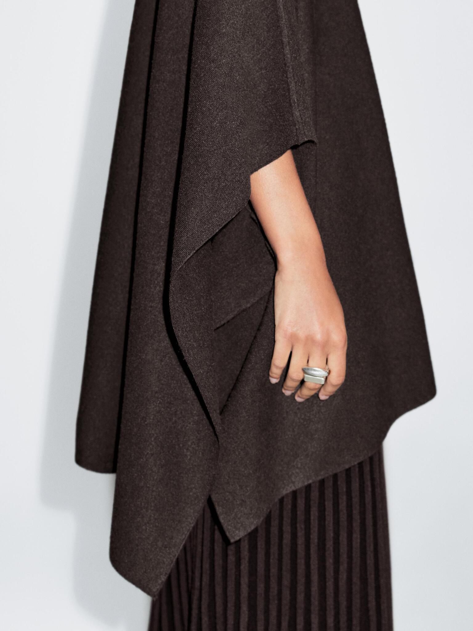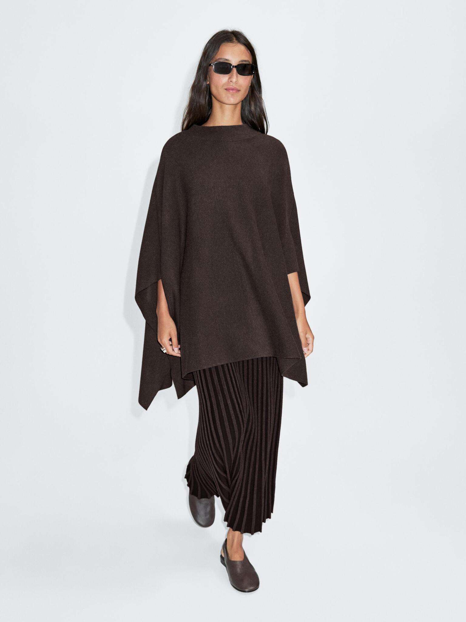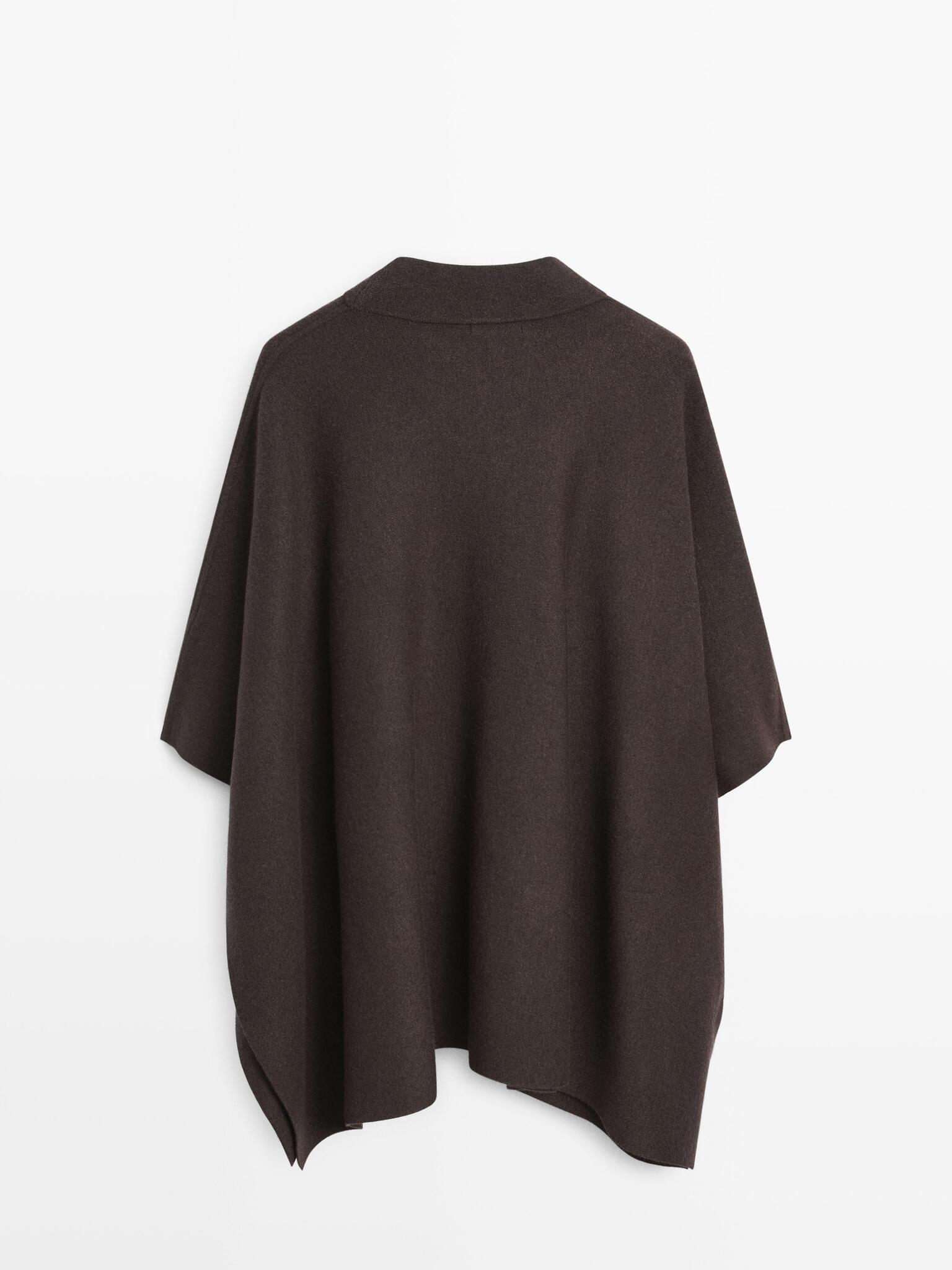 Massimo Dutti Вязаная накидка с воротником-стойкой, коричневый