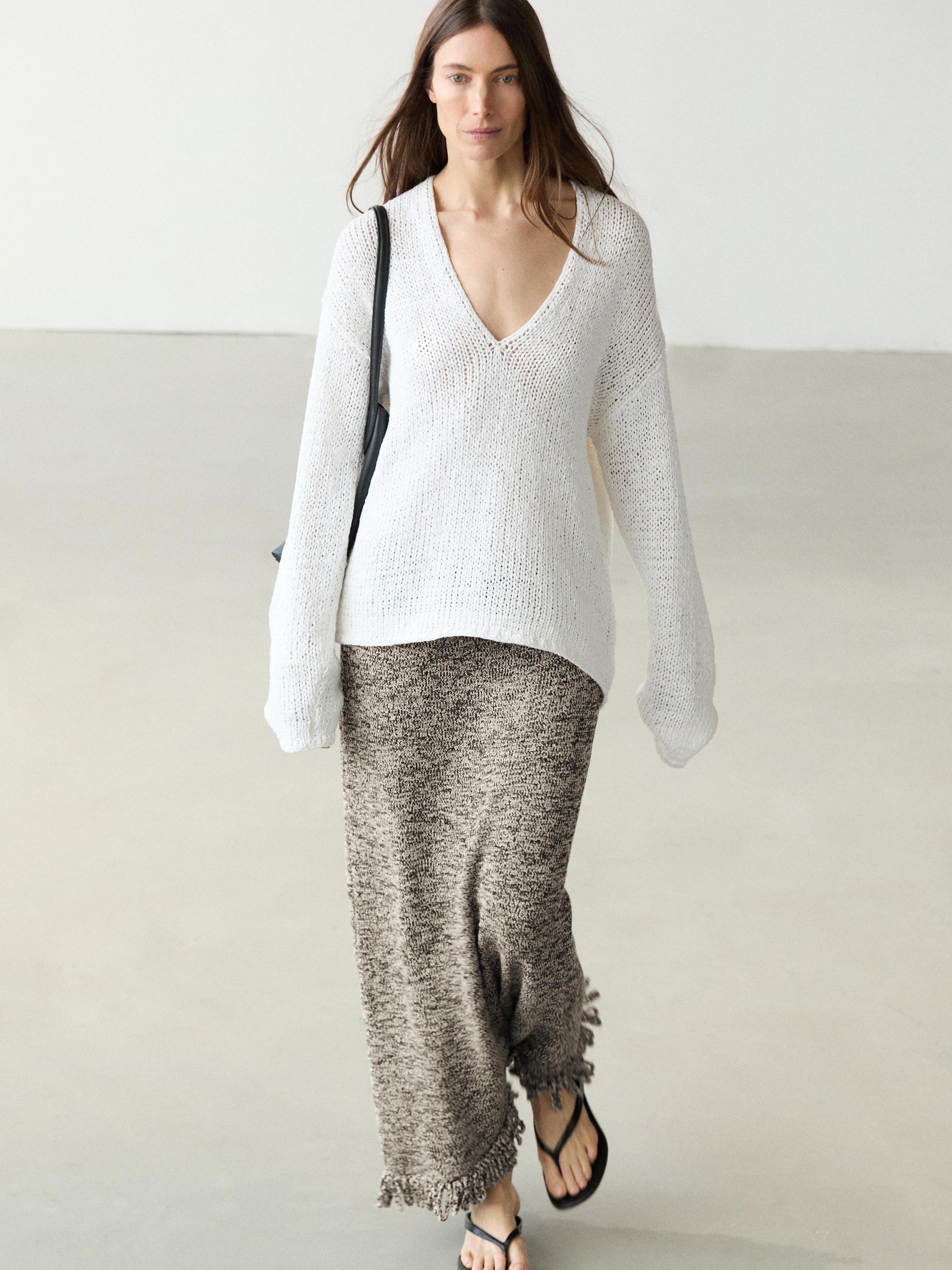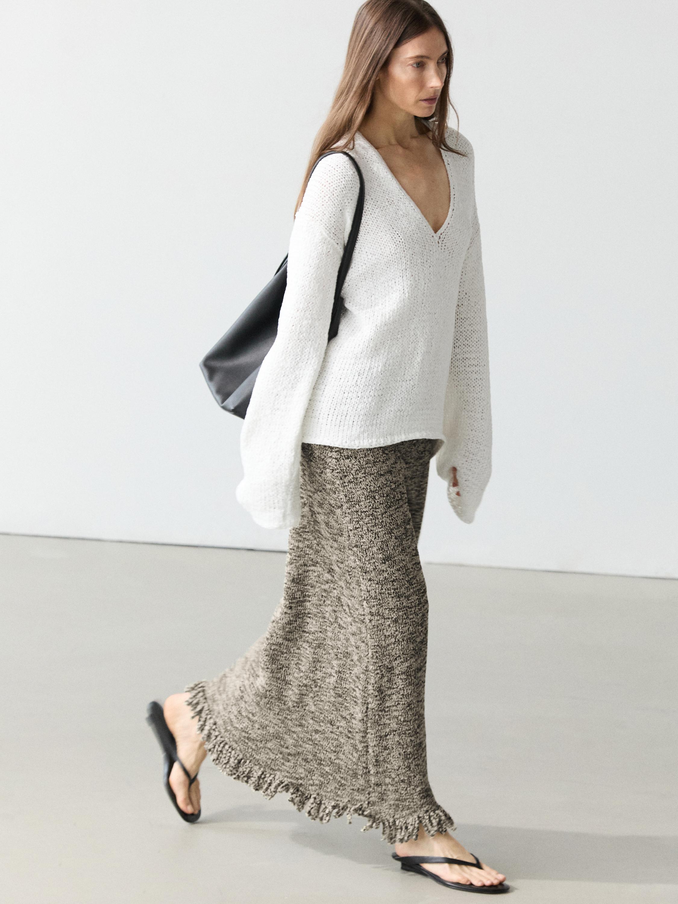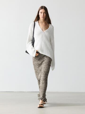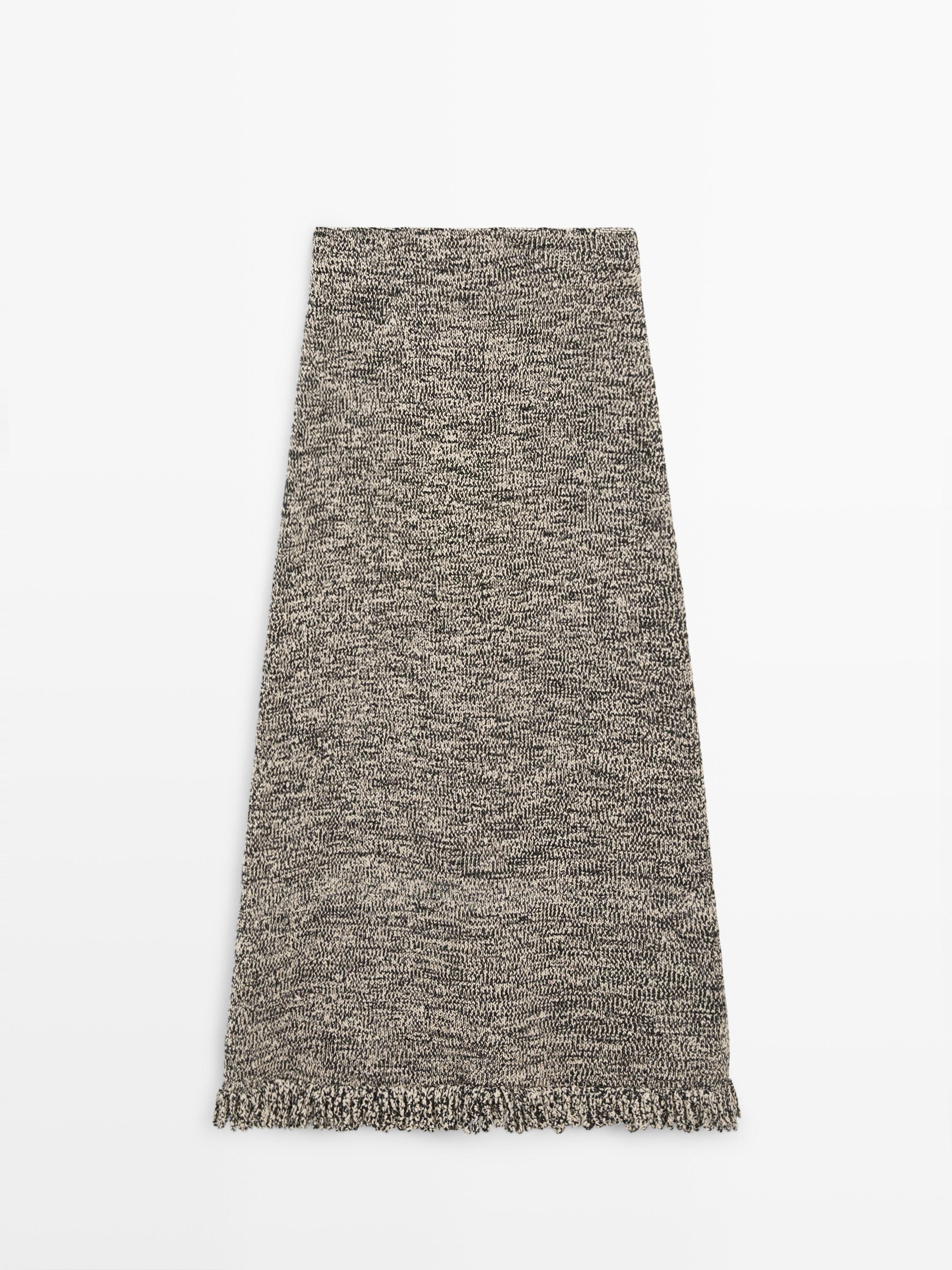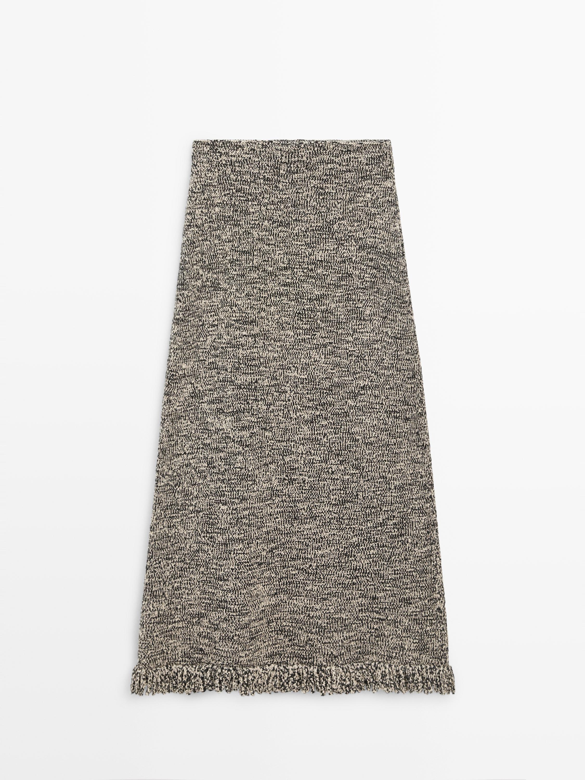 Massimo Dutti Вязаная юбка с бахромой, черный