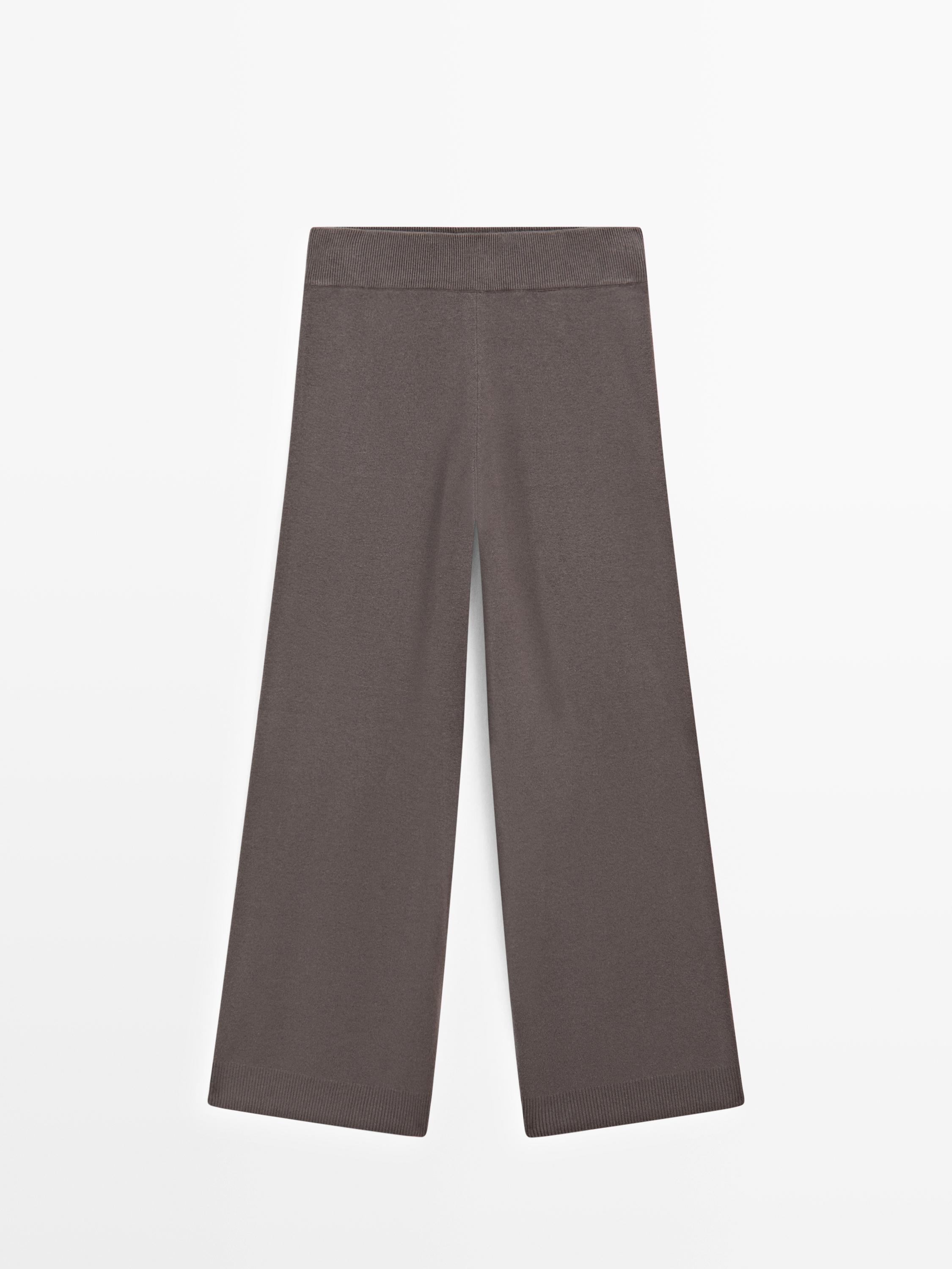 Massimo Dutti Вязаные брюки с ребристой отделкой, коричневый