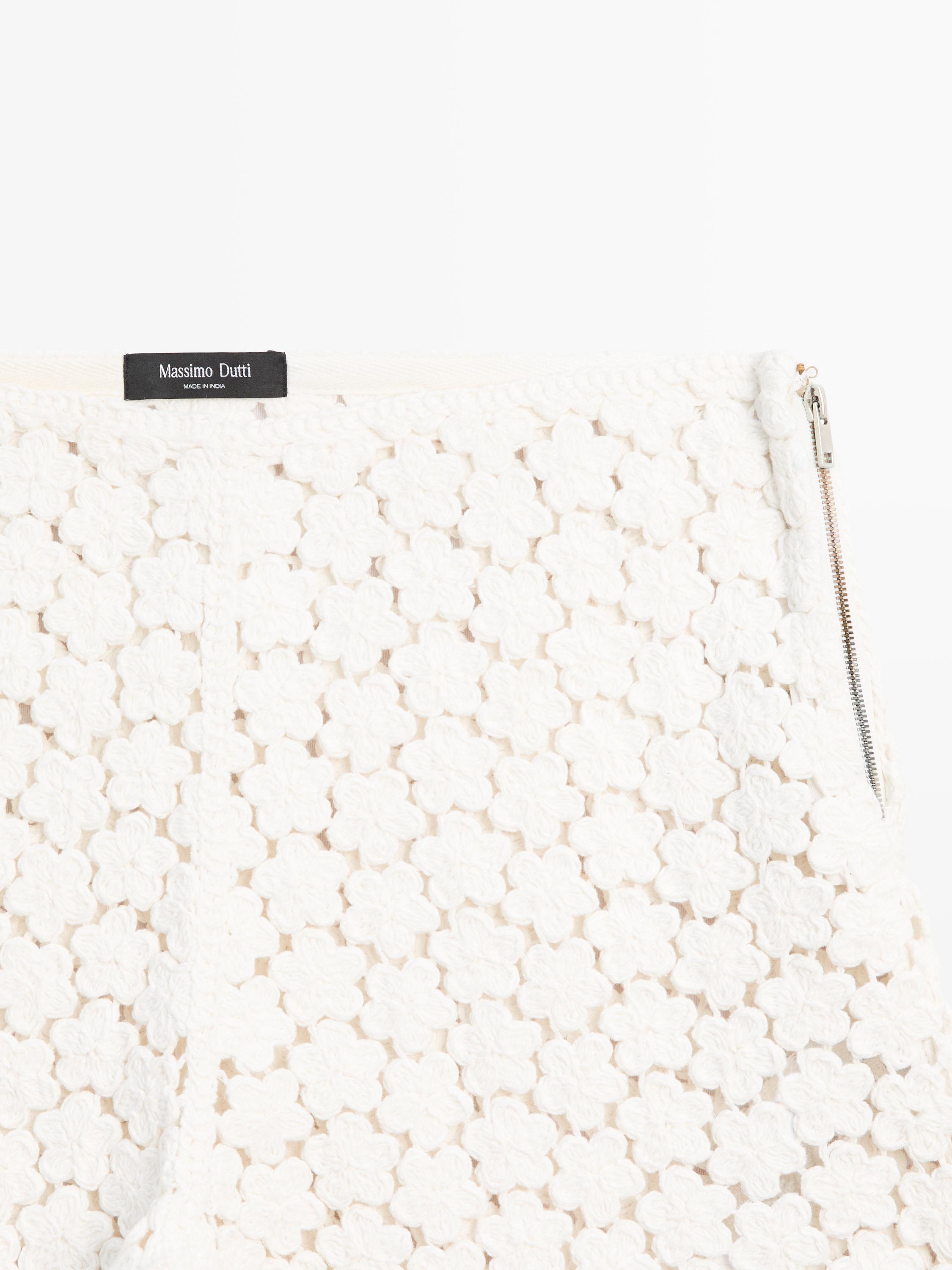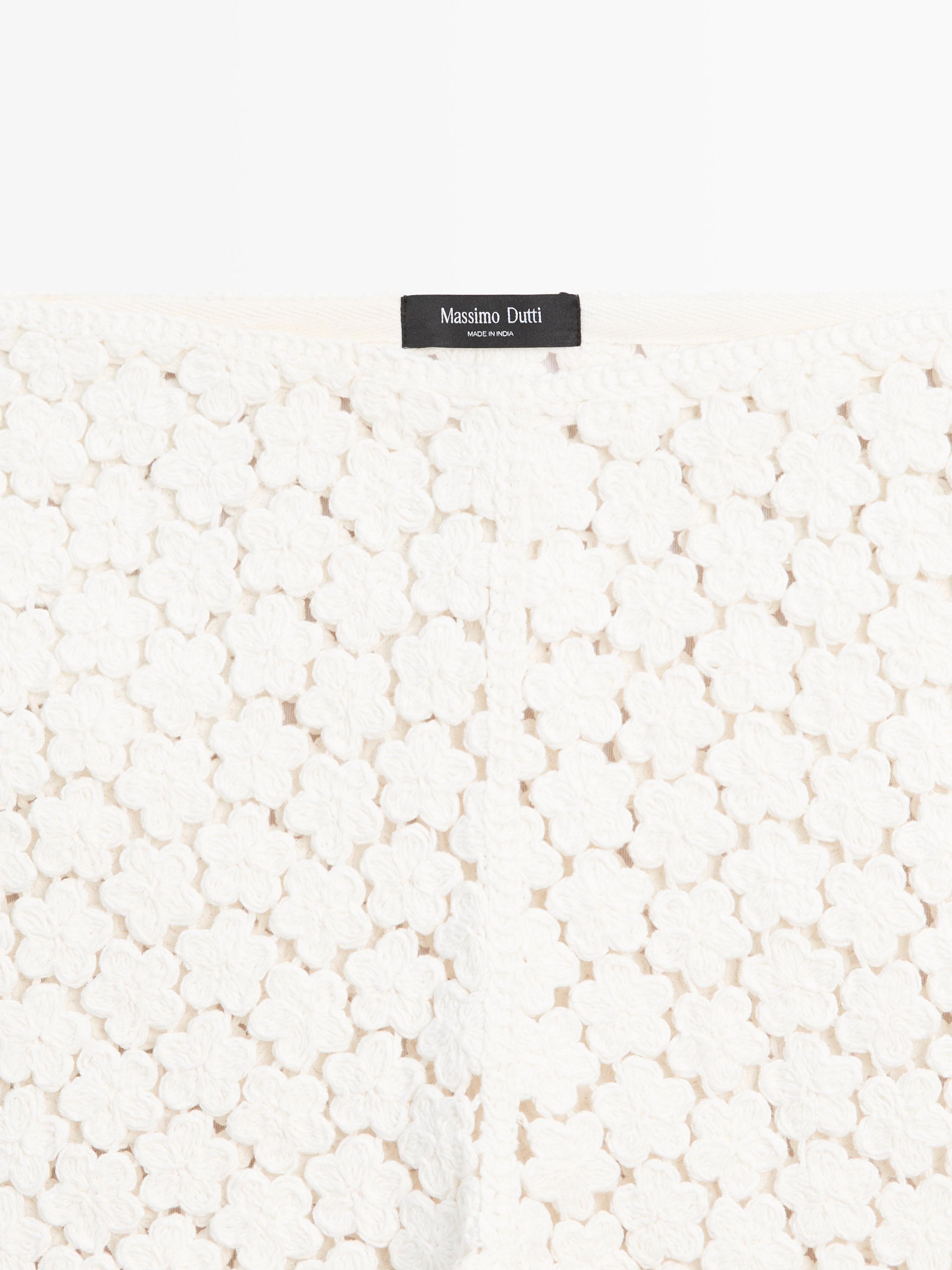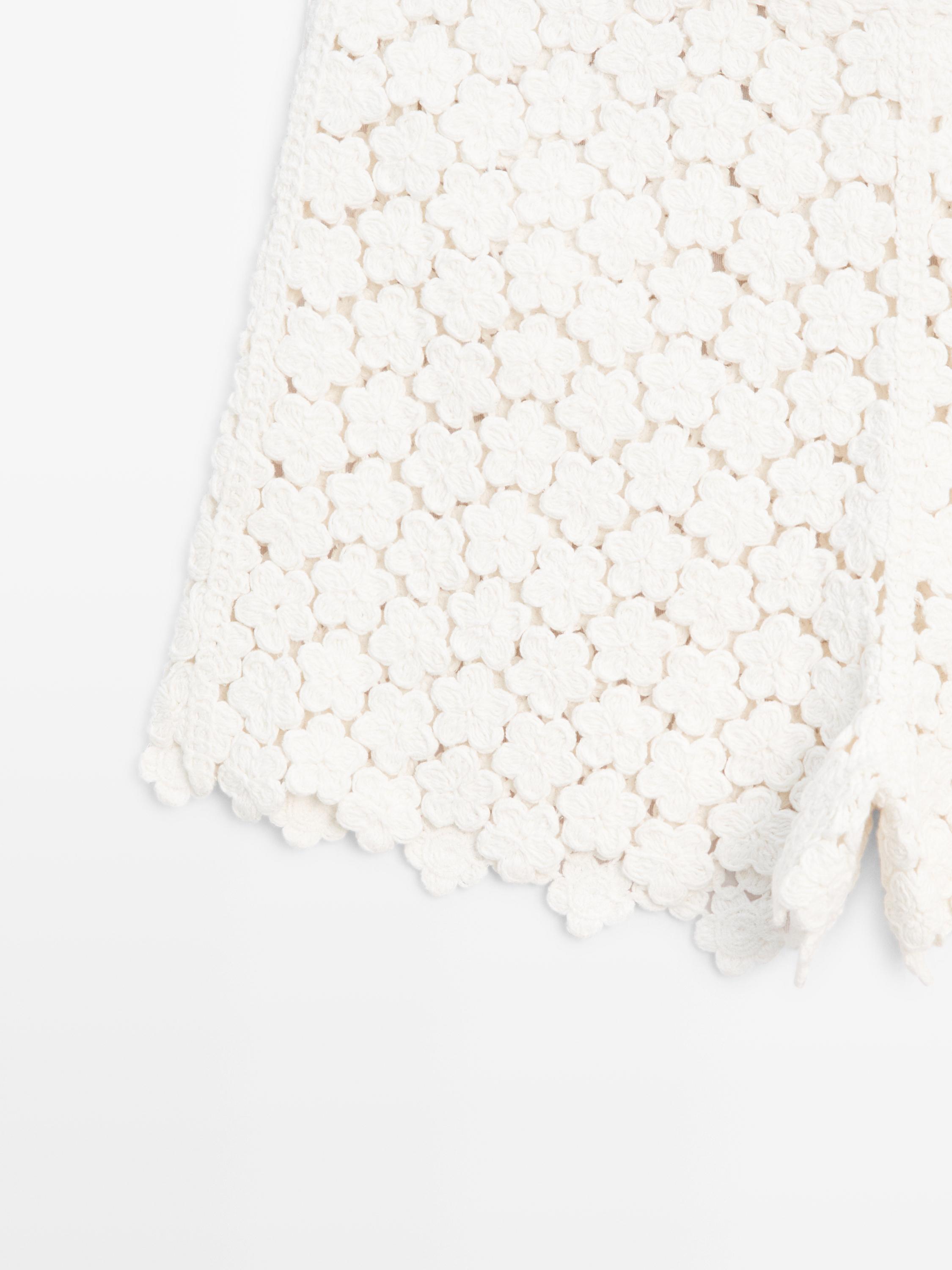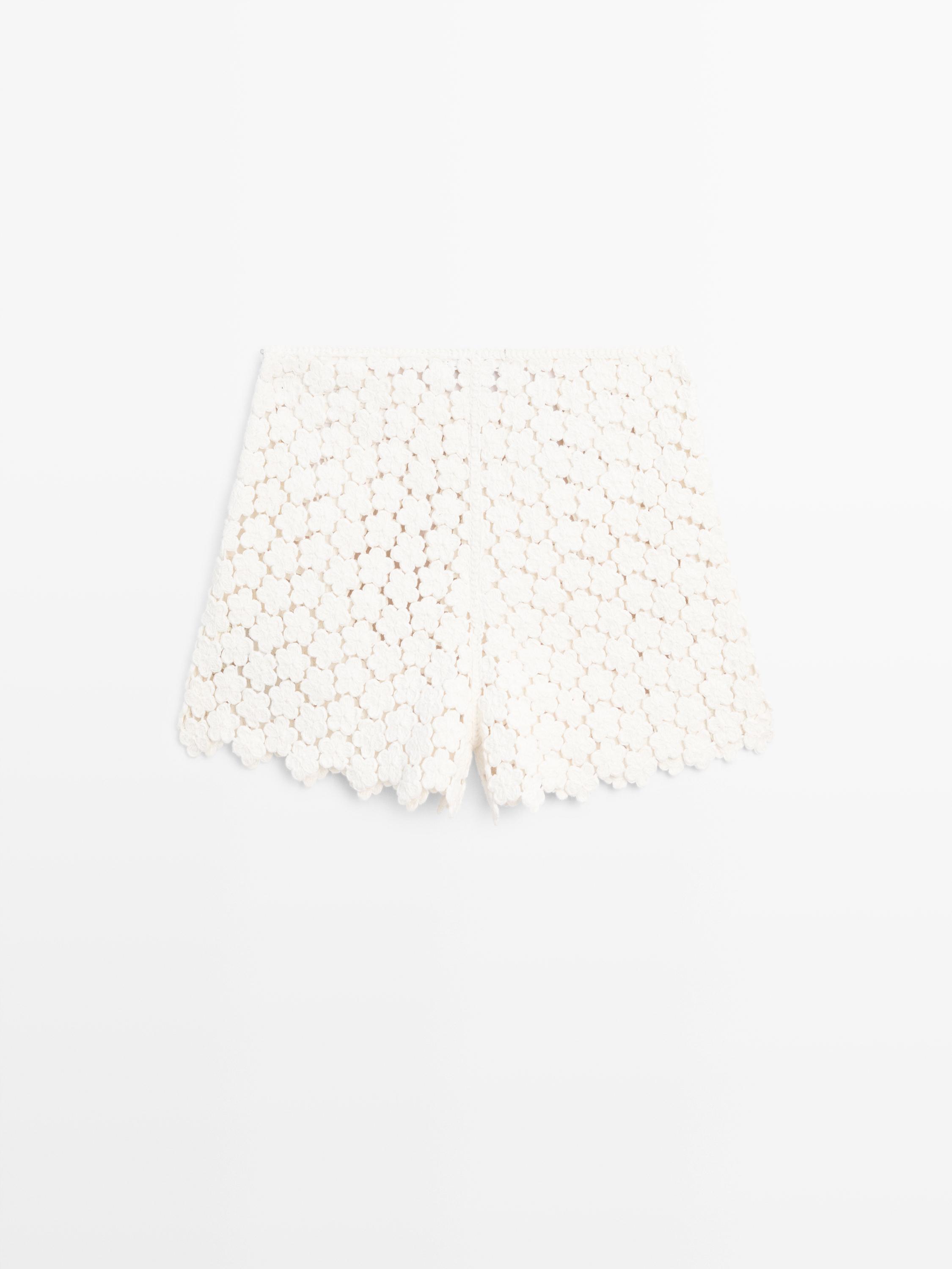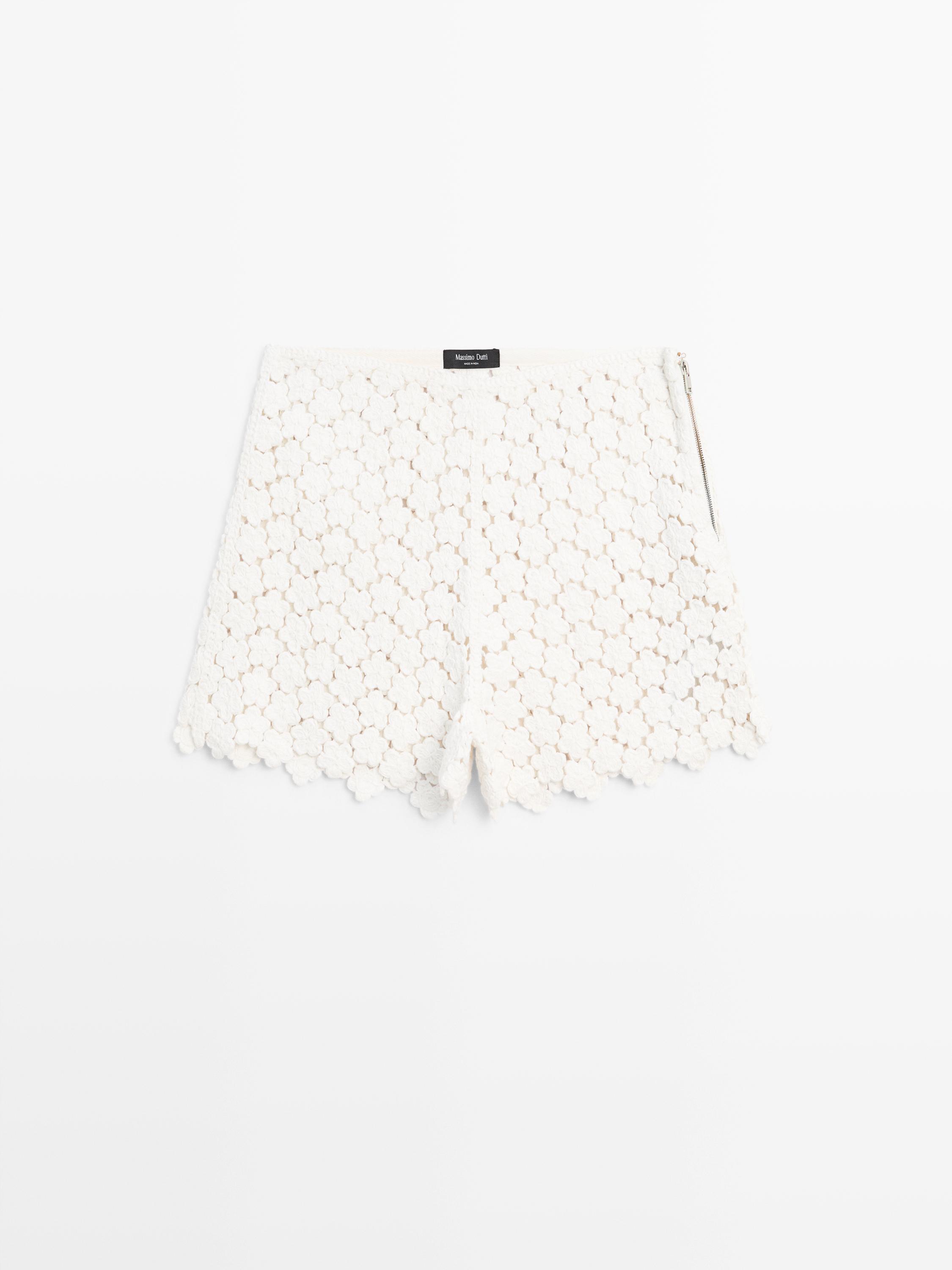 Massimo Dutti Вязаные крючком шорты с цветочным декором, кремовый