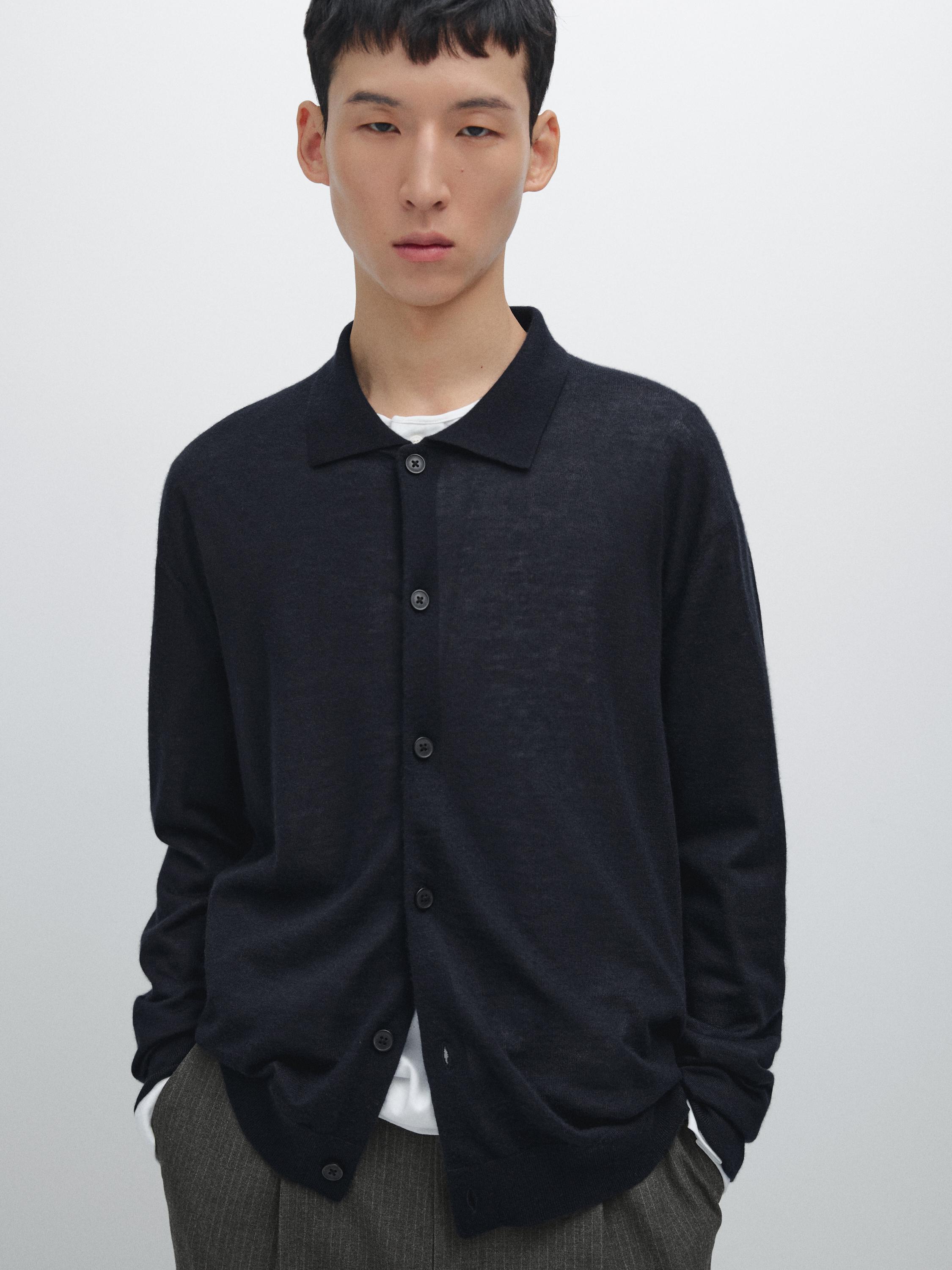 Massimo Dutti Вязаный кардиган из кашемира, темно-синий