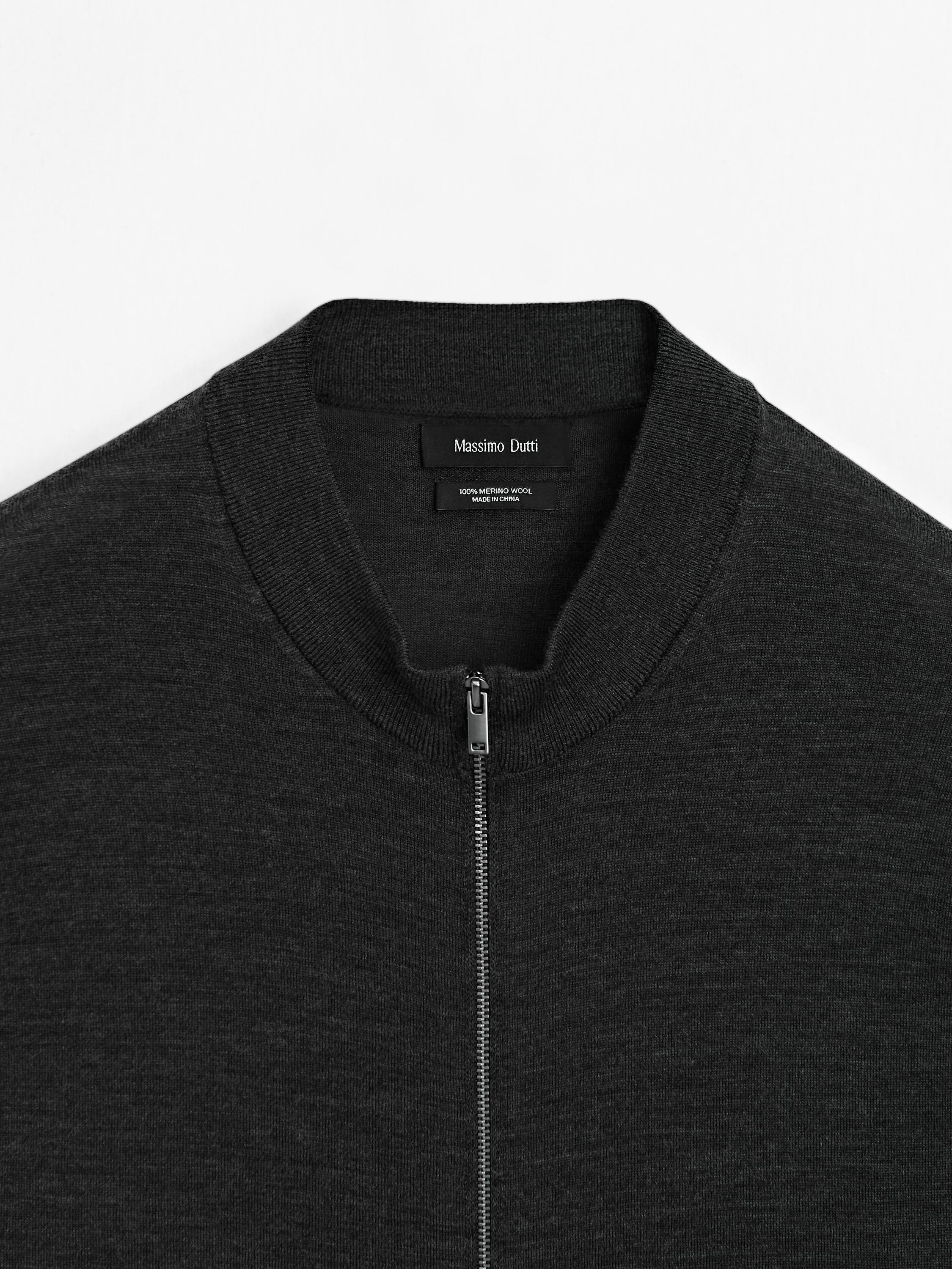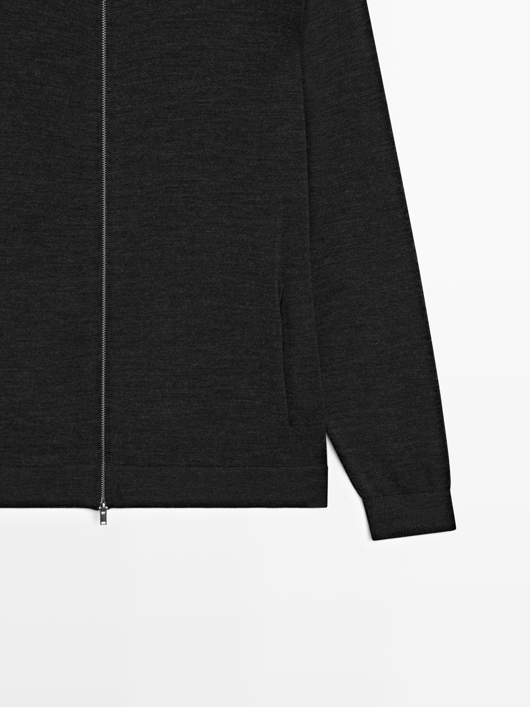 Massimo Dutti Вязаный кардиган из мериносовой шерсти на молнии, серый