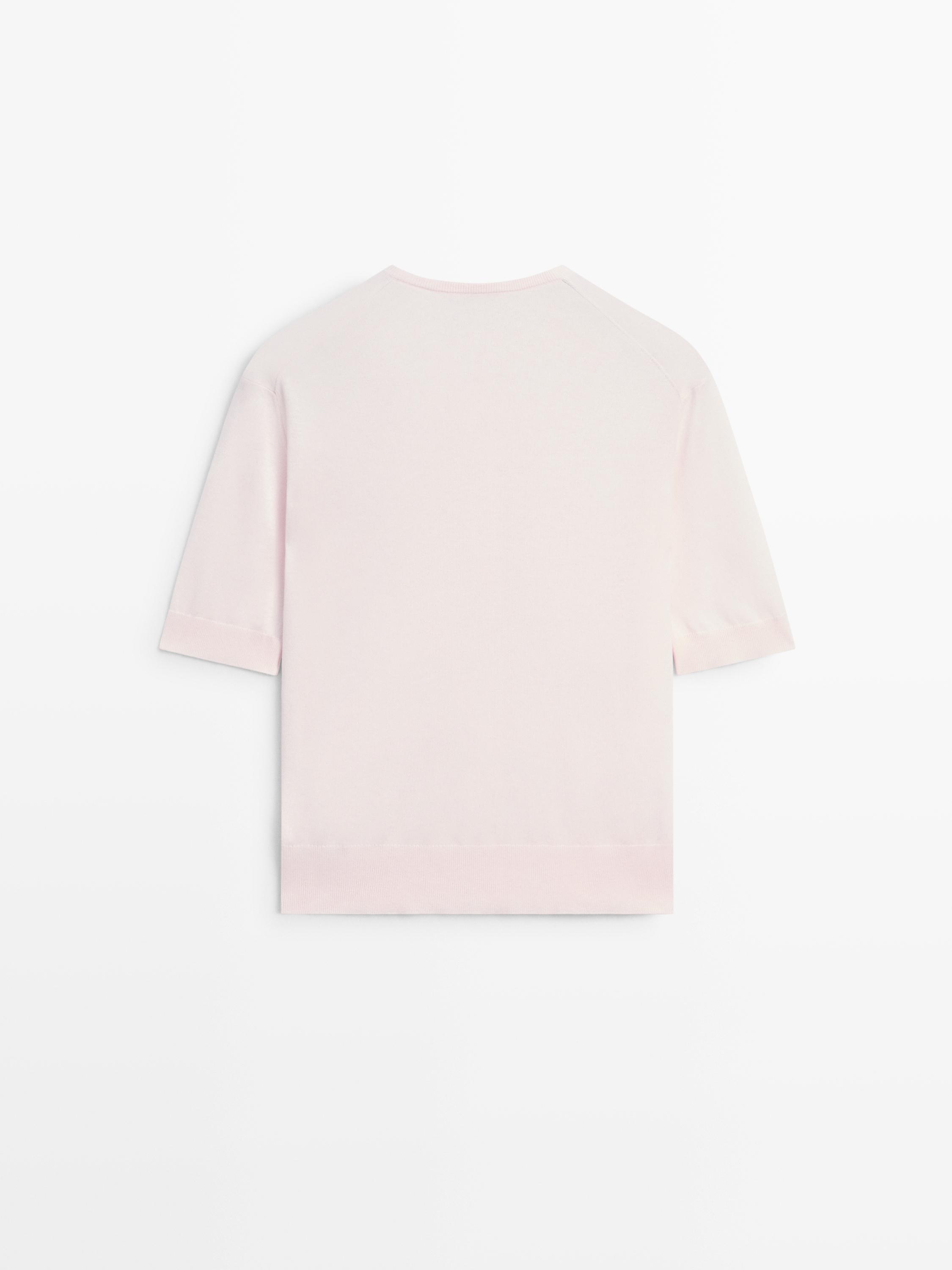 Massimo Dutti Вязаный кардиган с короткими рукавами, натуральный/кремовый