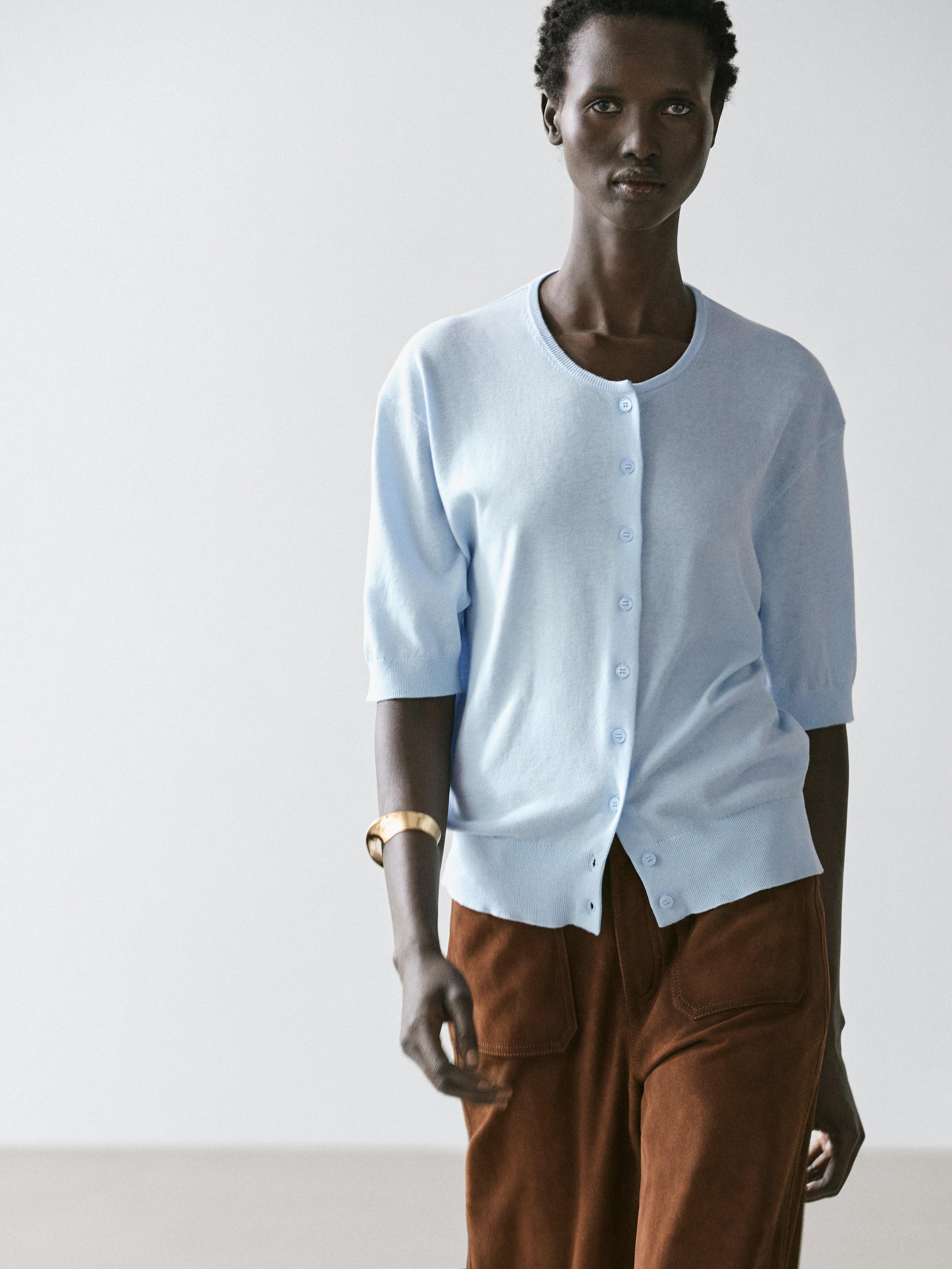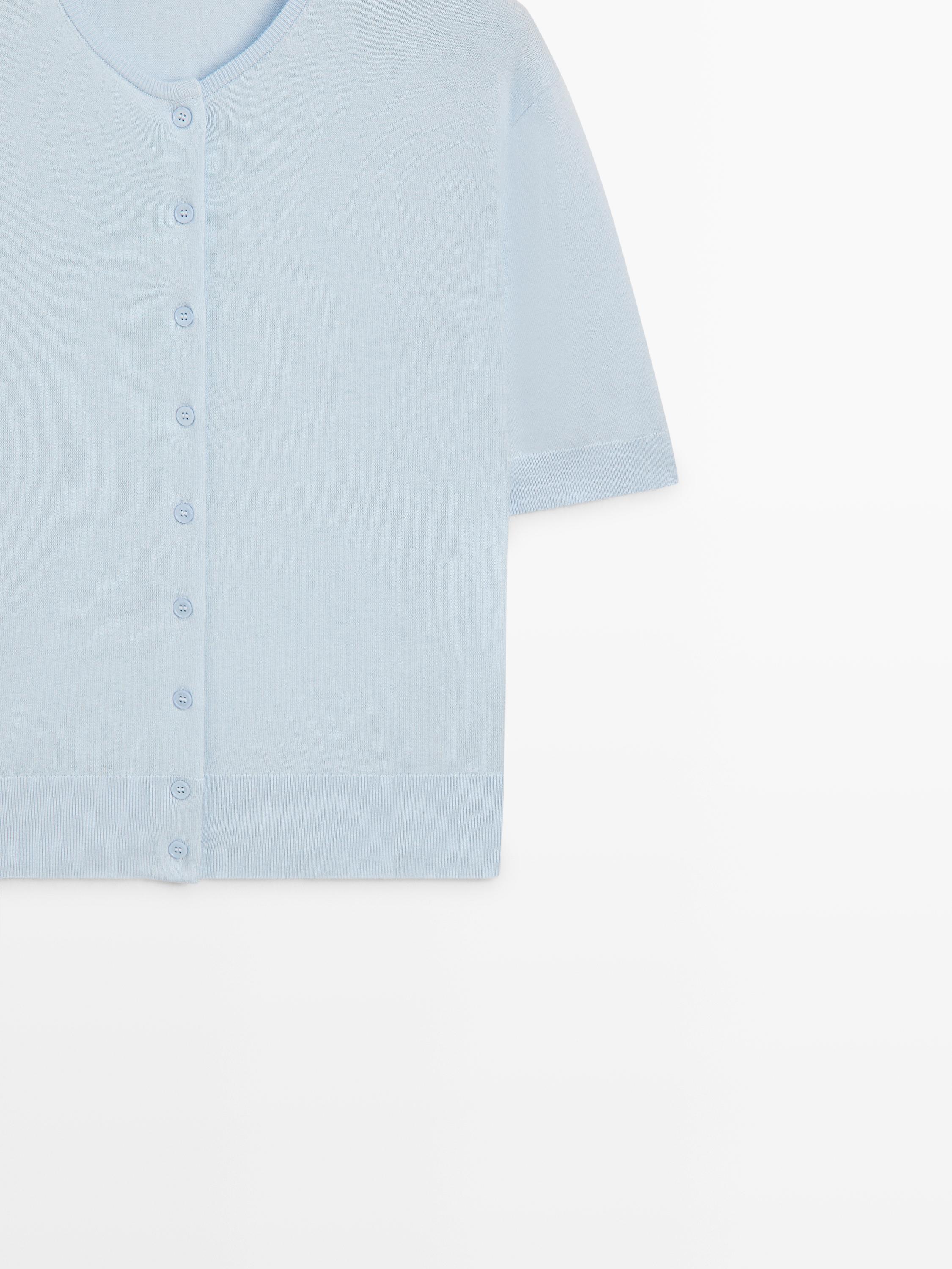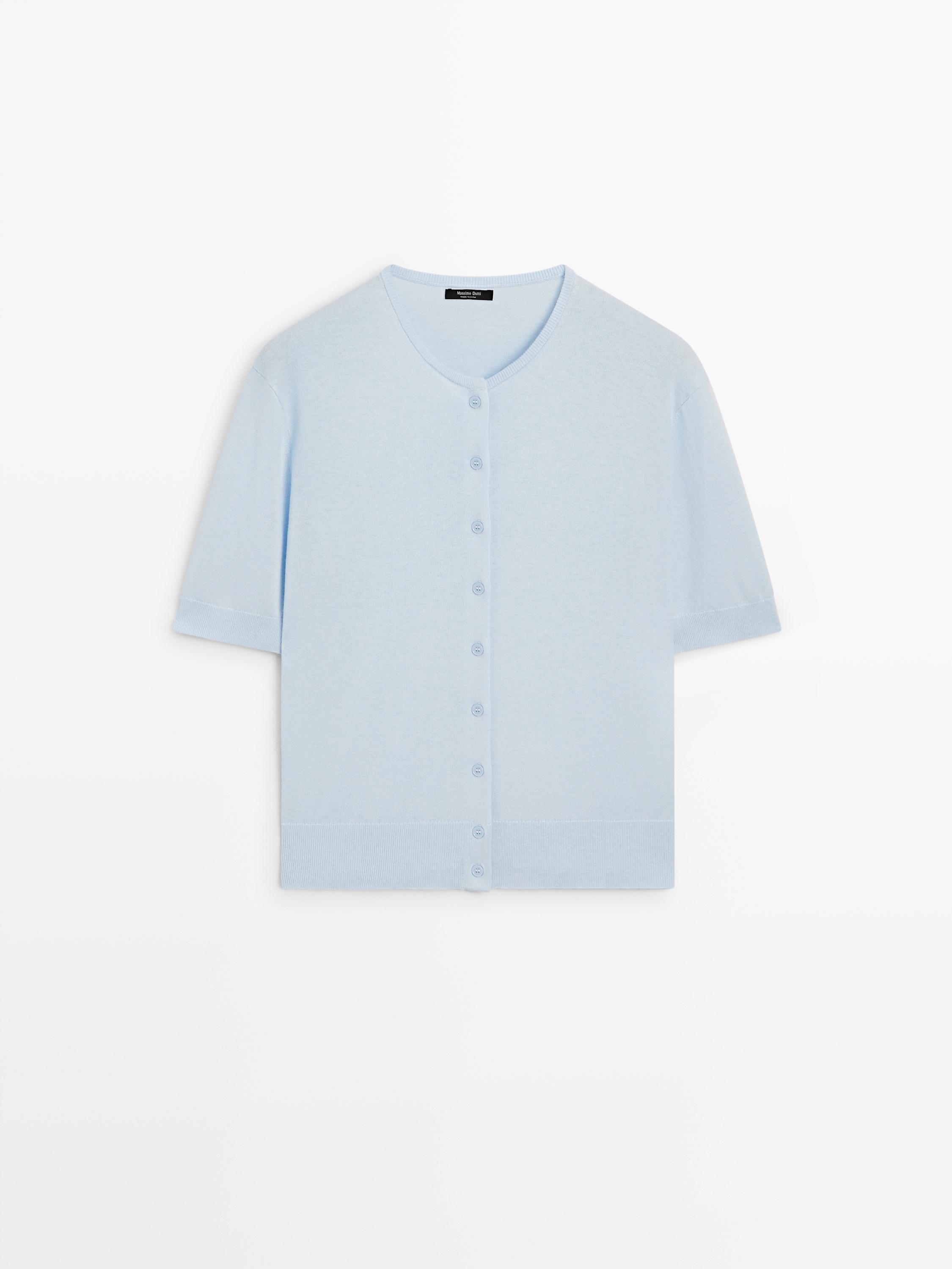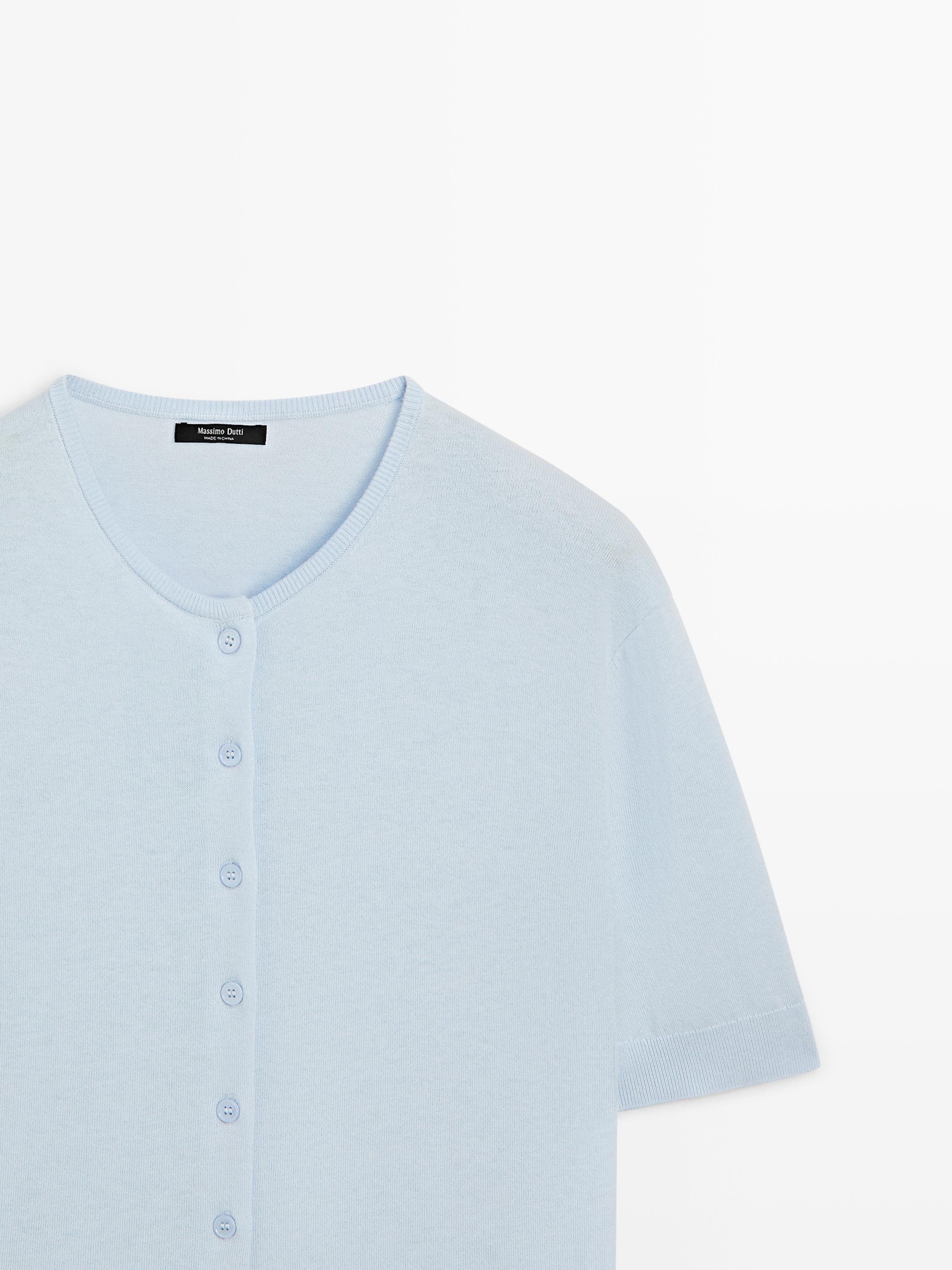 Massimo Dutti Вязаный кардиган с короткими рукавами, светло-голубой