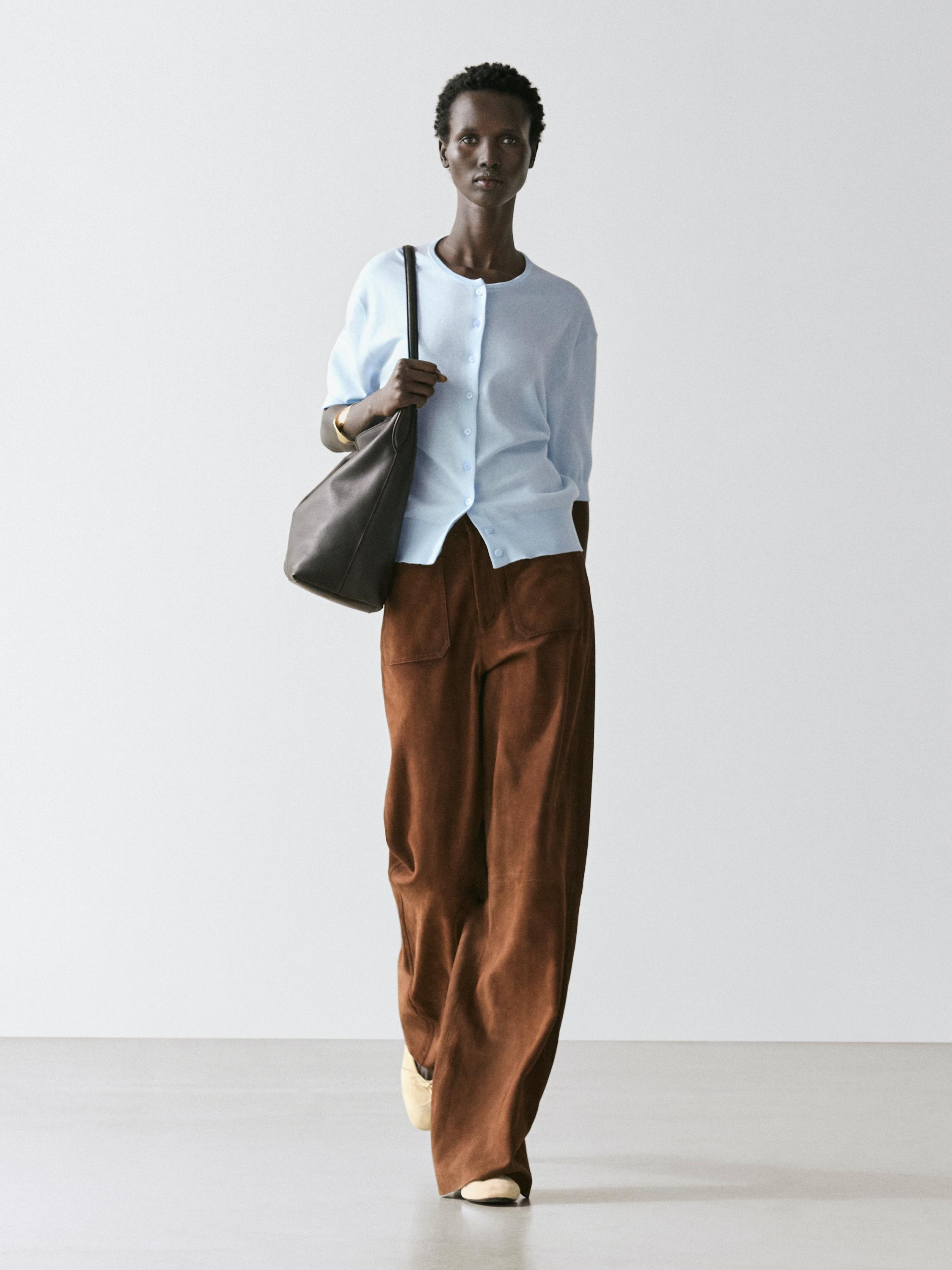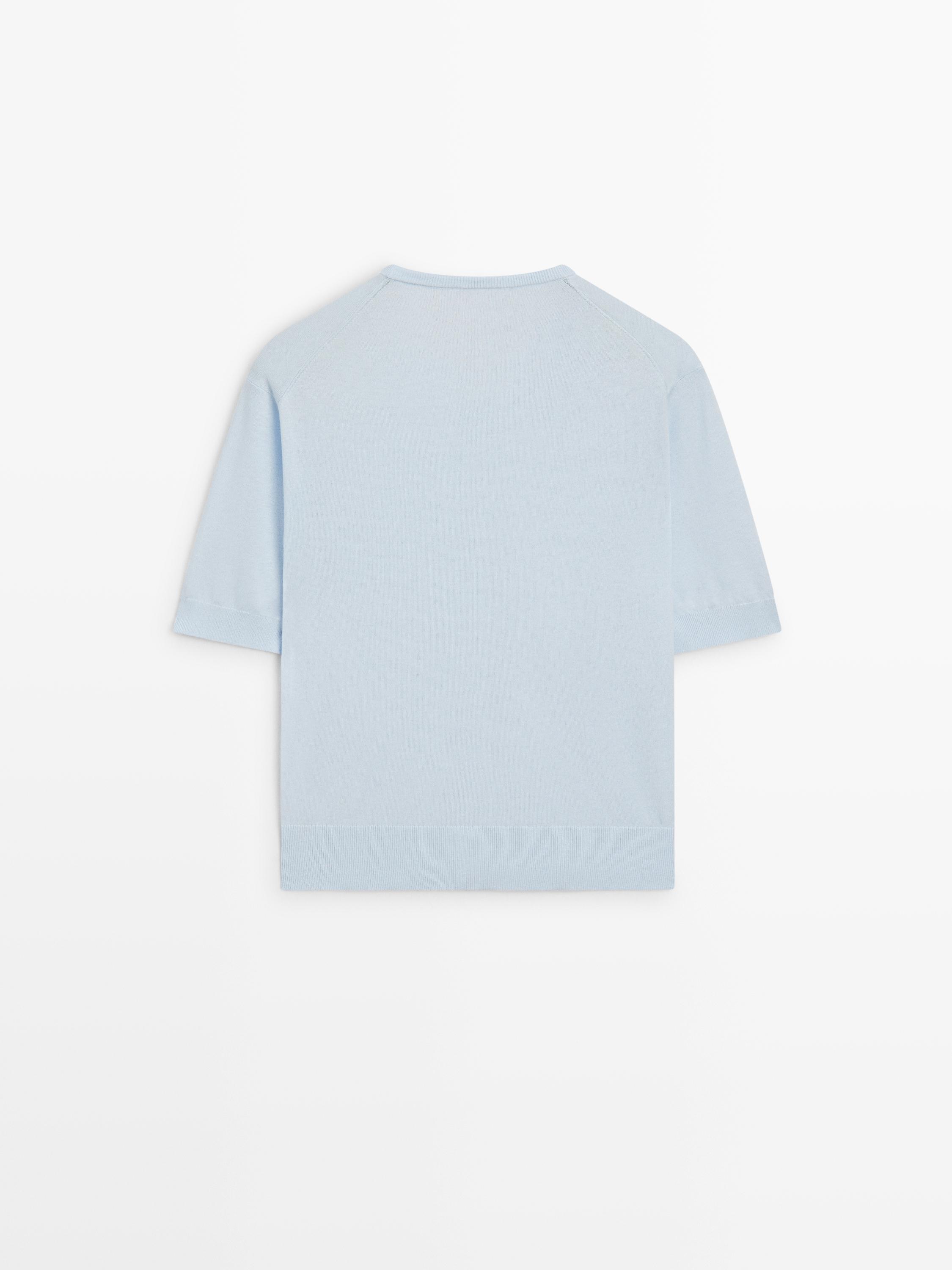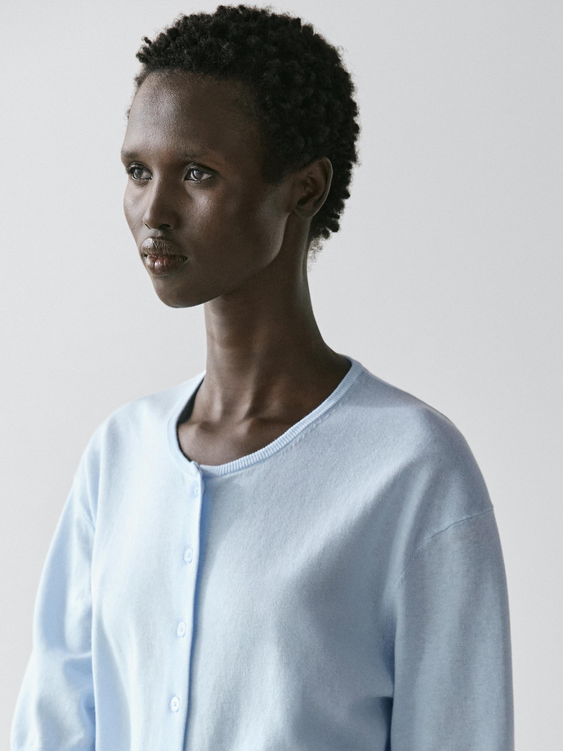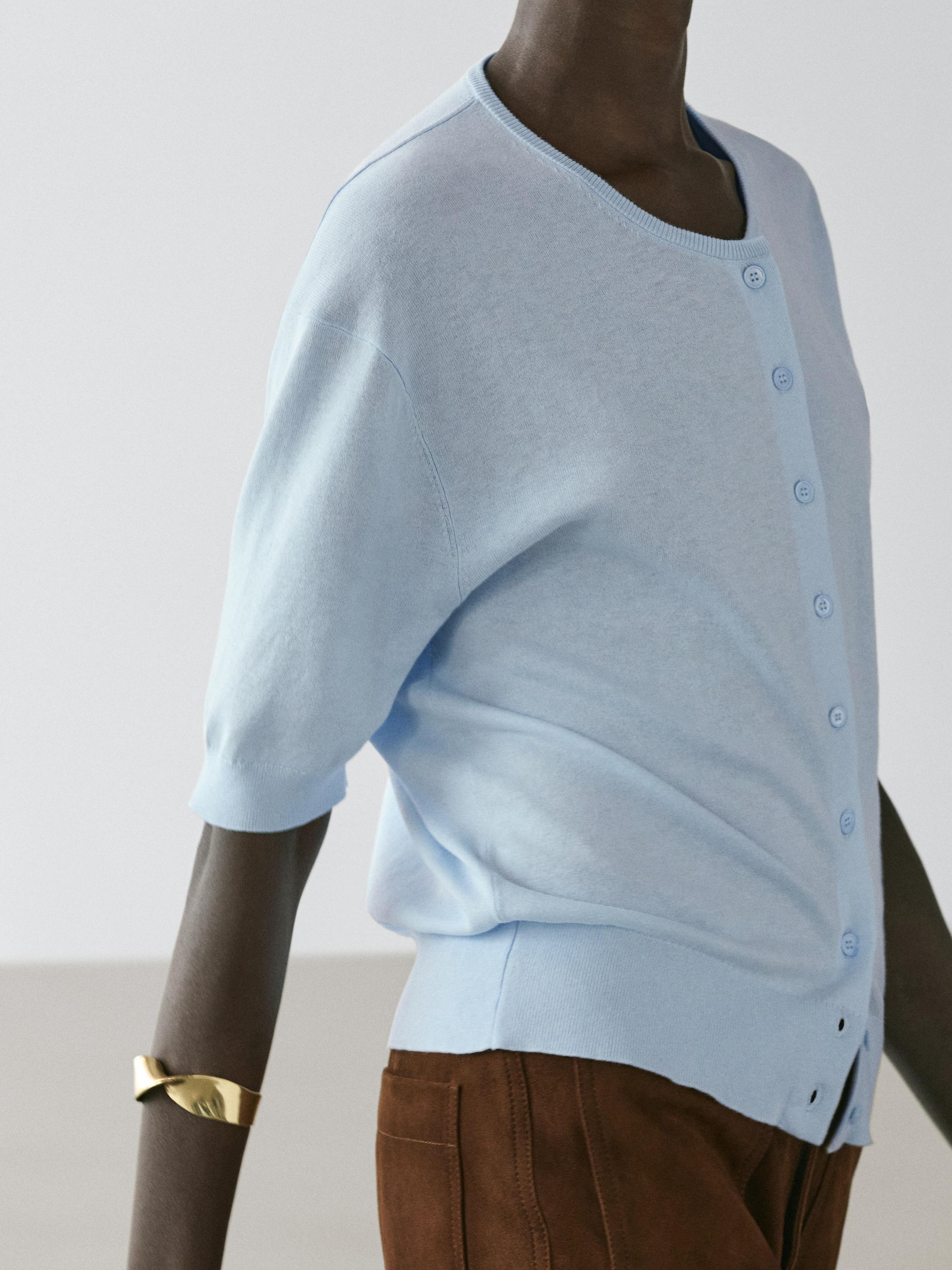 Massimo Dutti Вязаный кардиган с короткими рукавами, светло-голубой