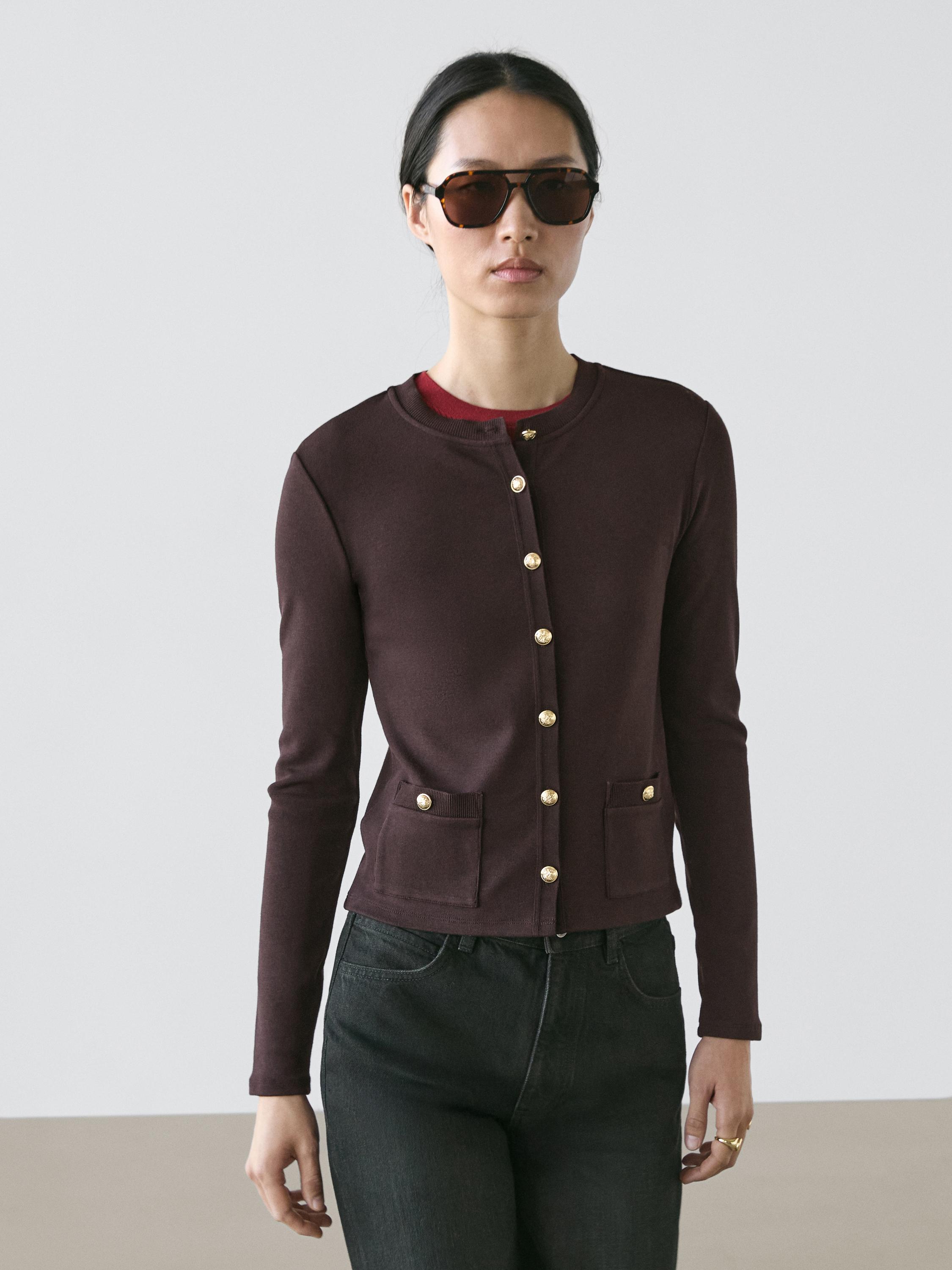 Massimo Dutti Вязаный кардиган с золотыми пуговицами, коричневый