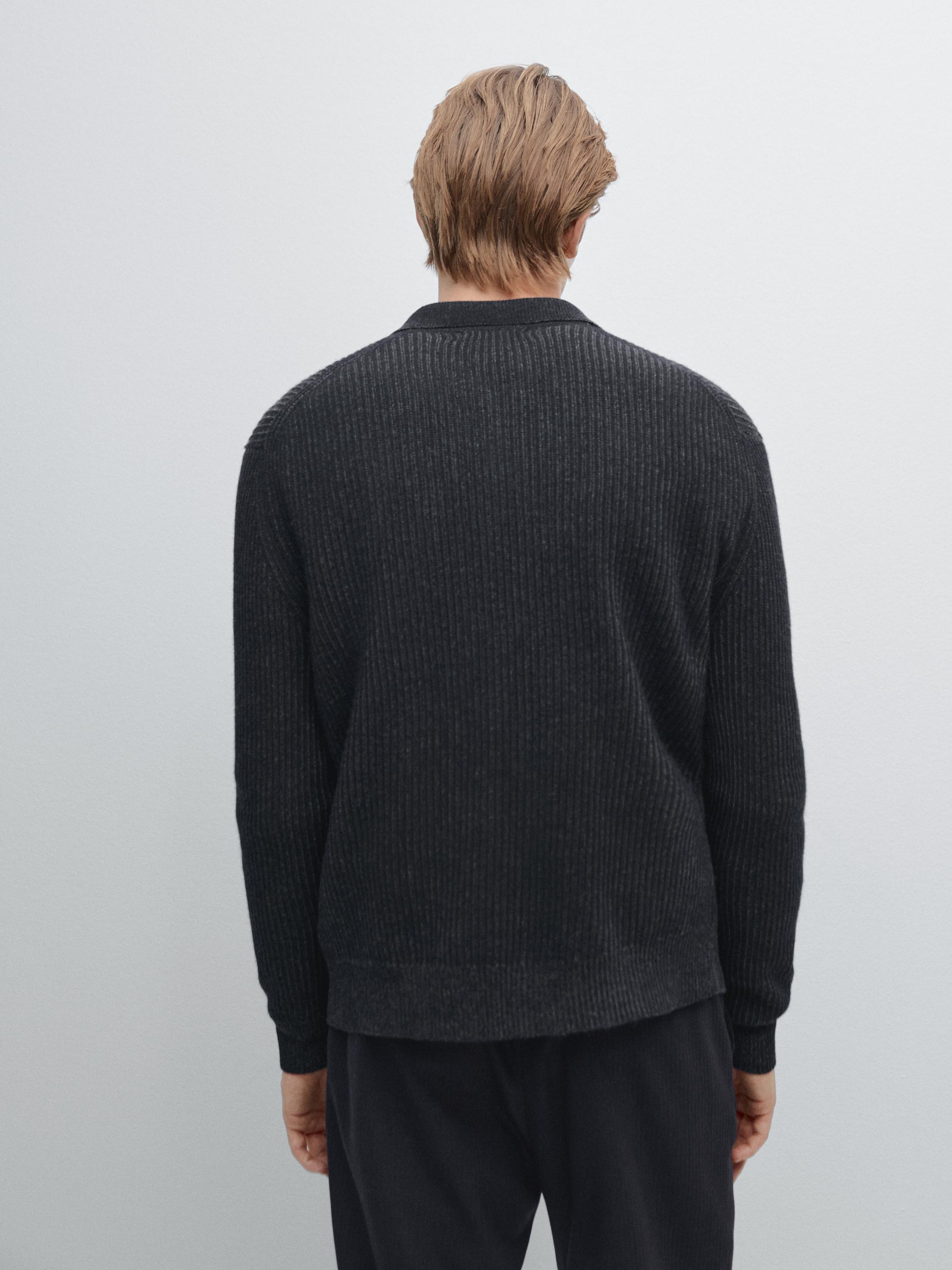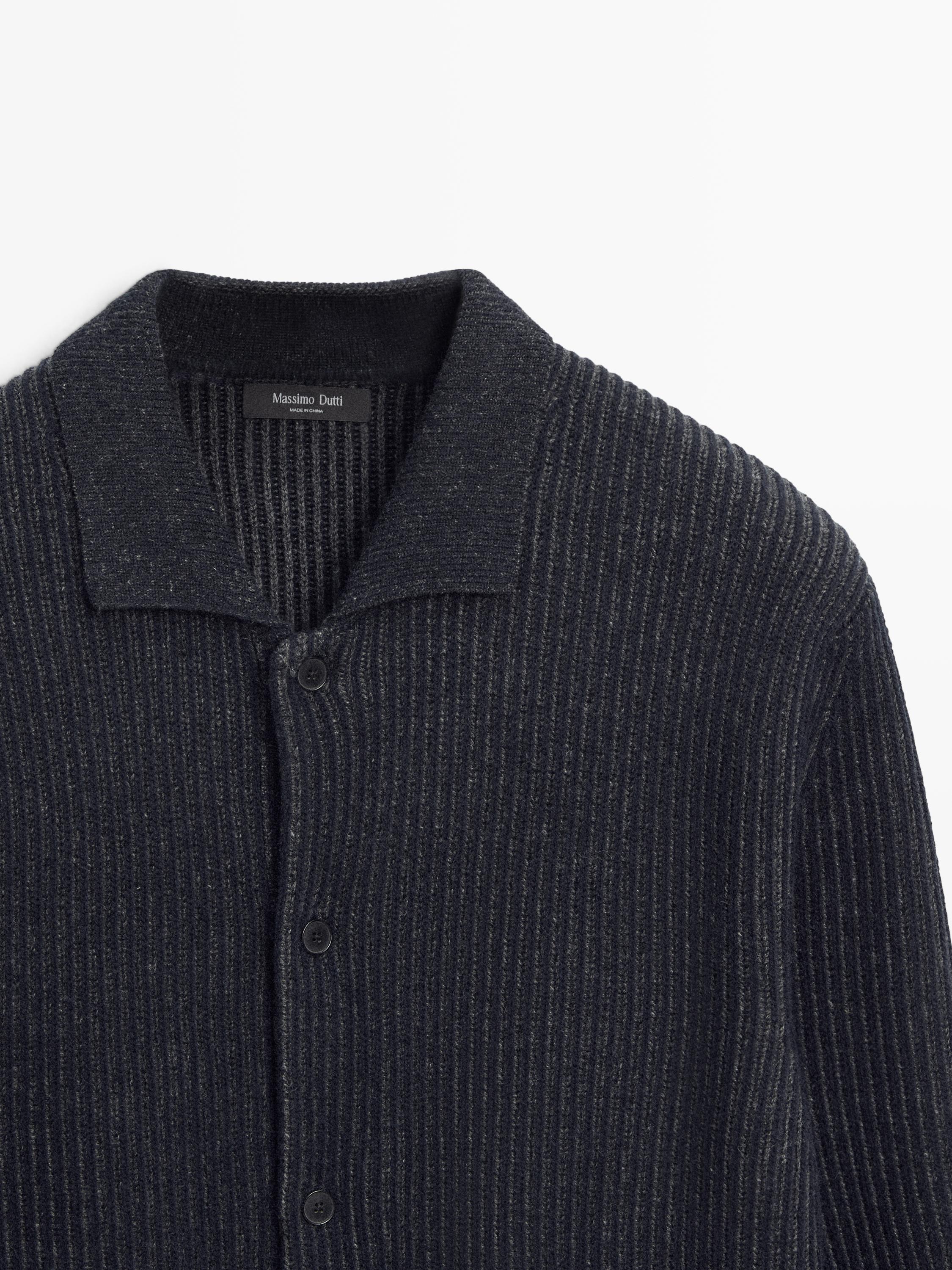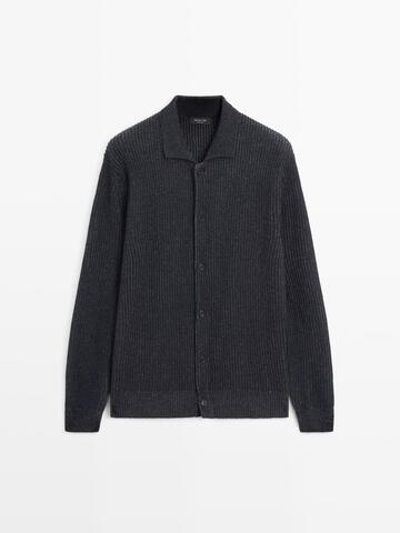 Кардиган из шерстяной смеси. Рубашечный воротник. Длинные рукава. Застежка на пуговицы спереди.