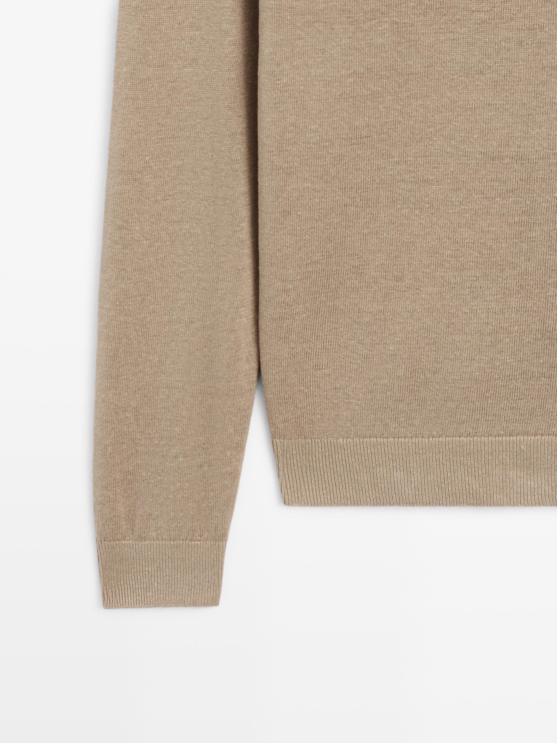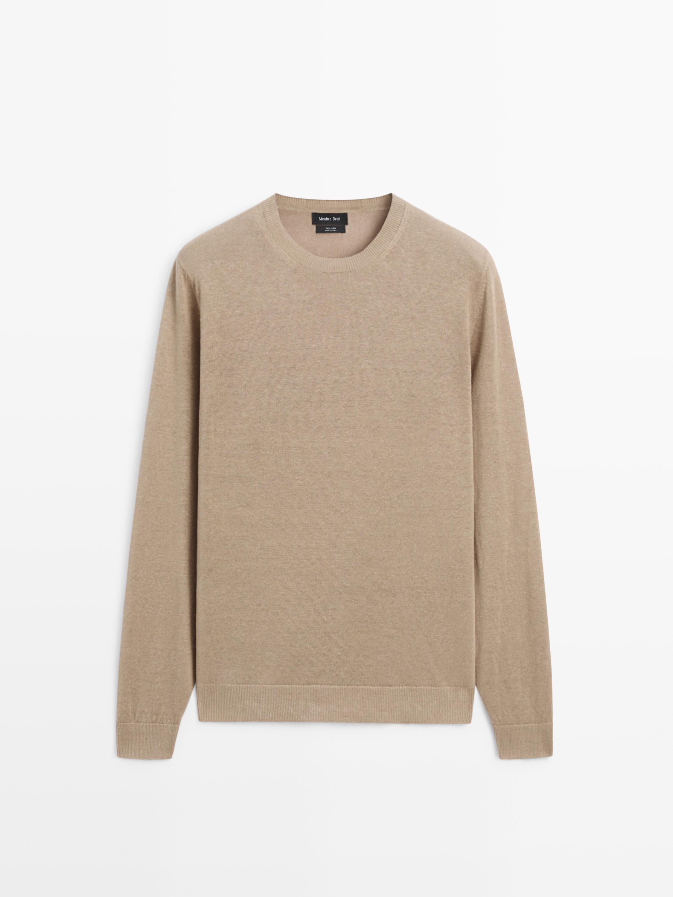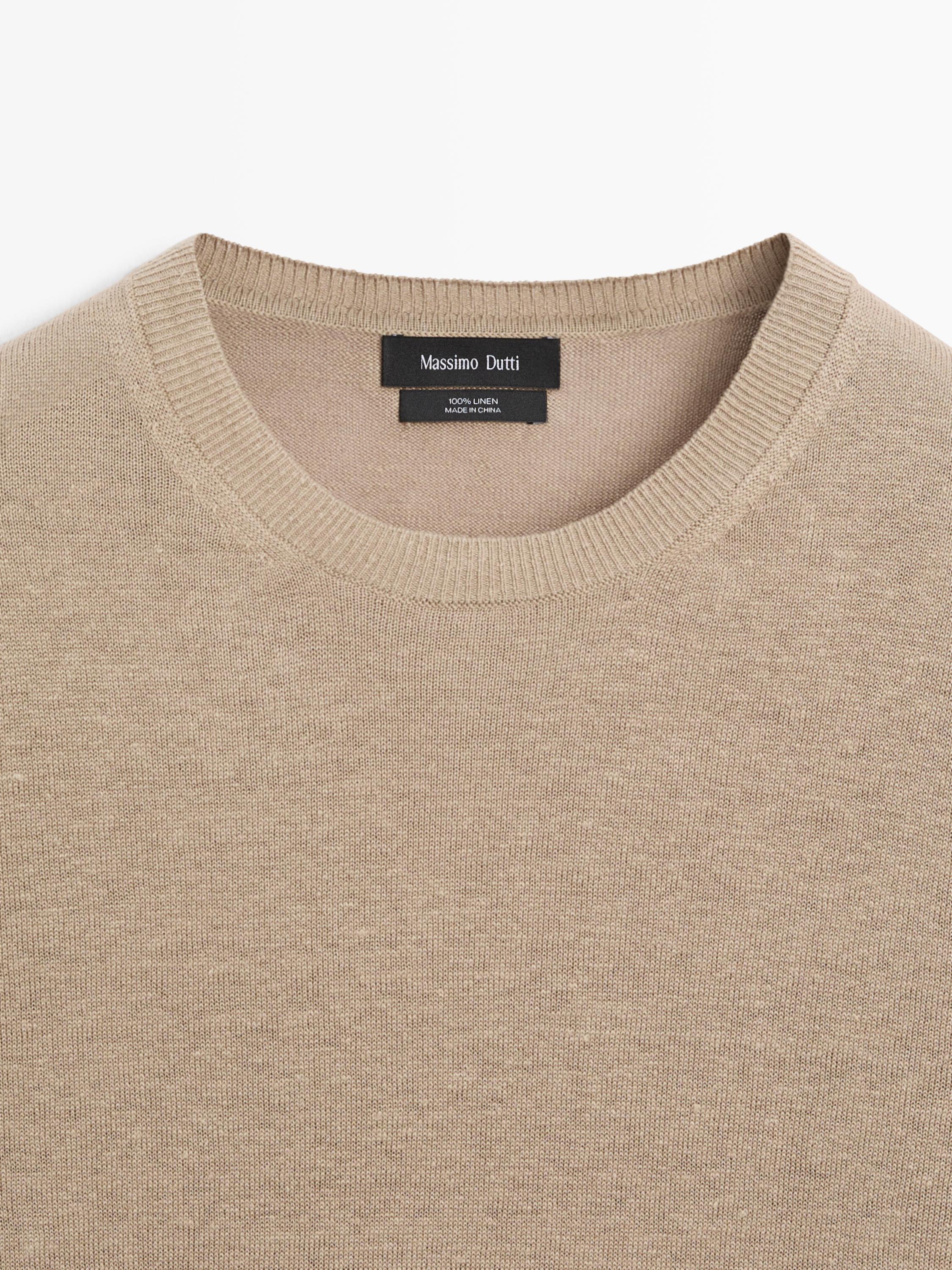 Massimo Dutti Вязаный льняной свитер с круглым вырезом, песочный