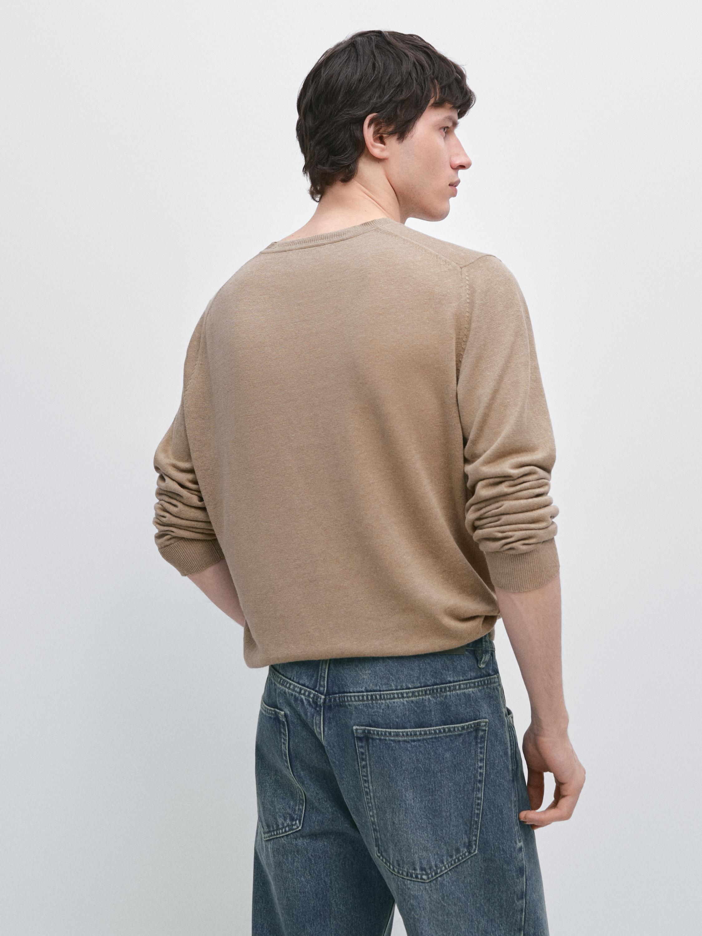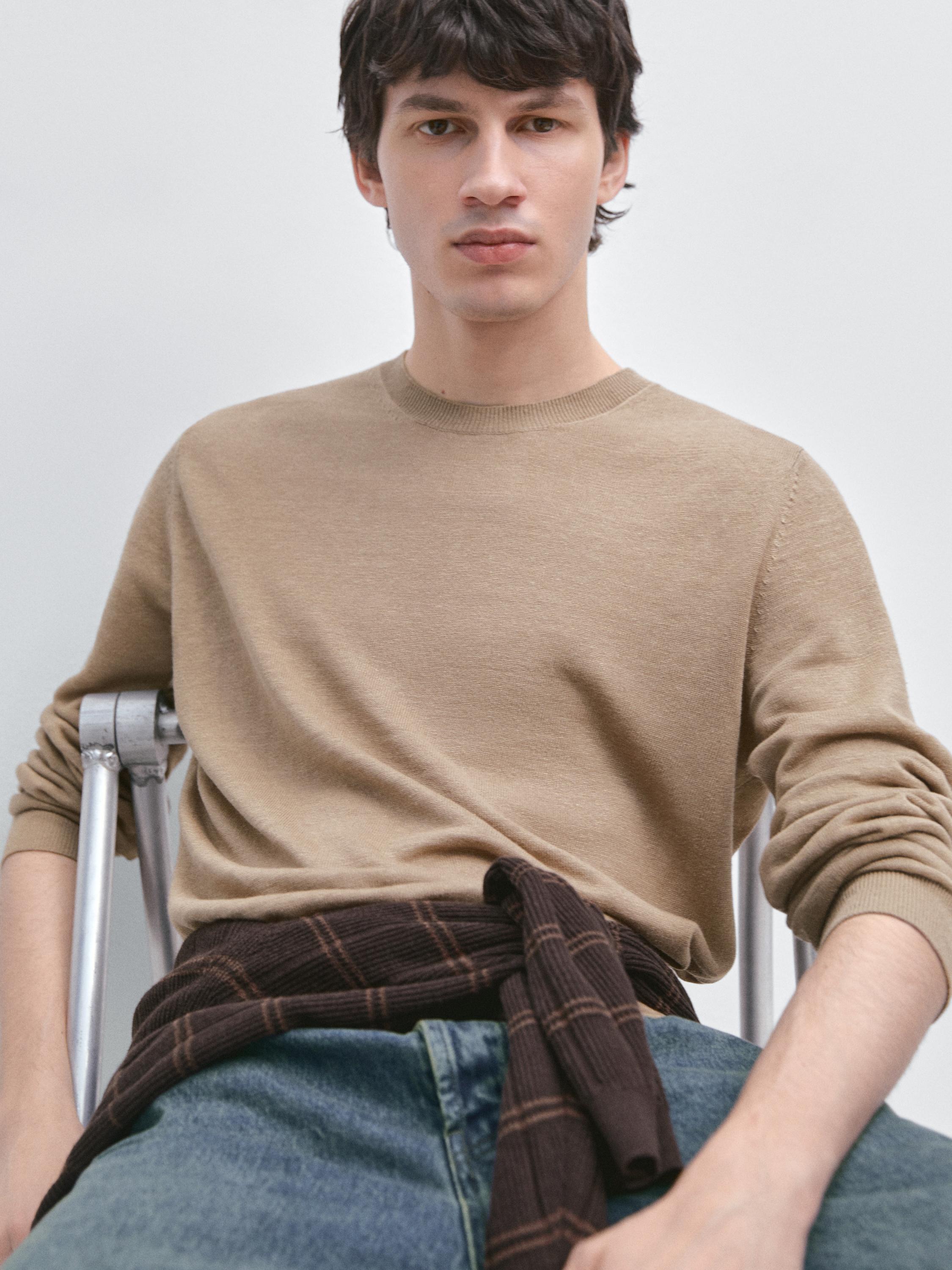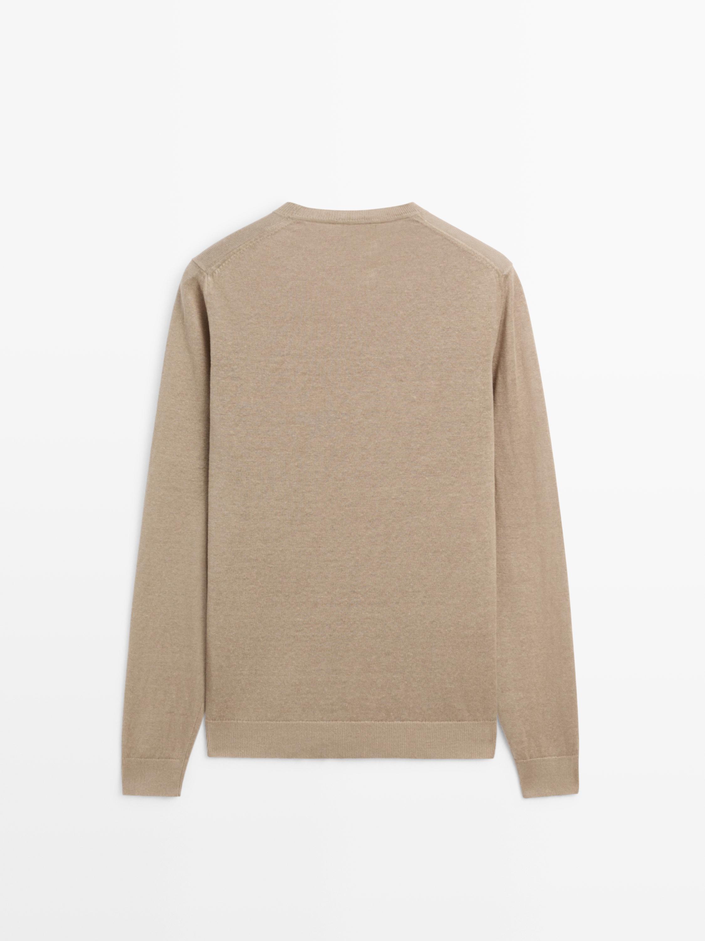 Massimo Dutti Вязаный льняной свитер с круглым вырезом, песочный