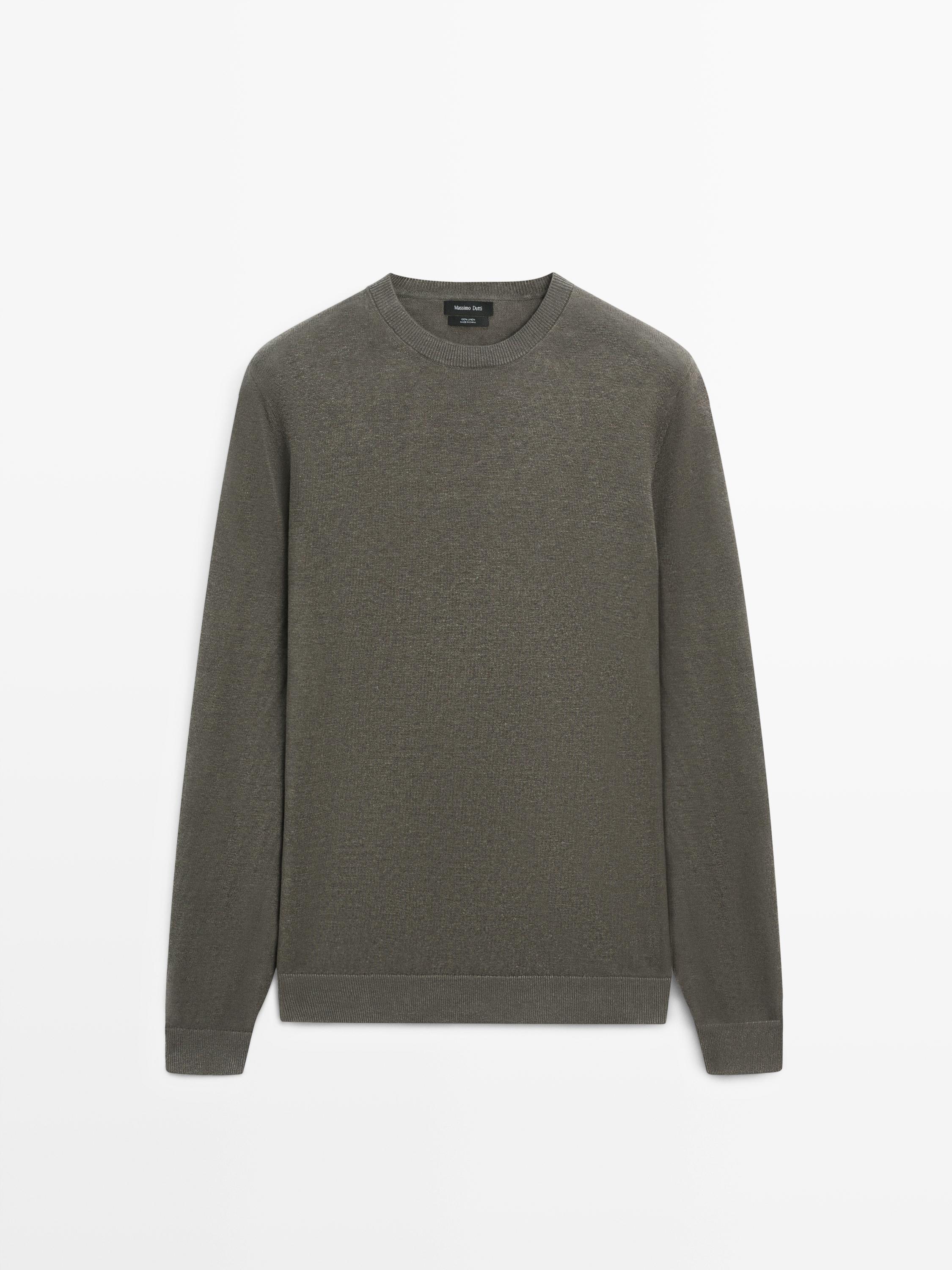 Вязаный свитер из льна. Круглый вырез. Длинные рукава. Ребристая отделка.