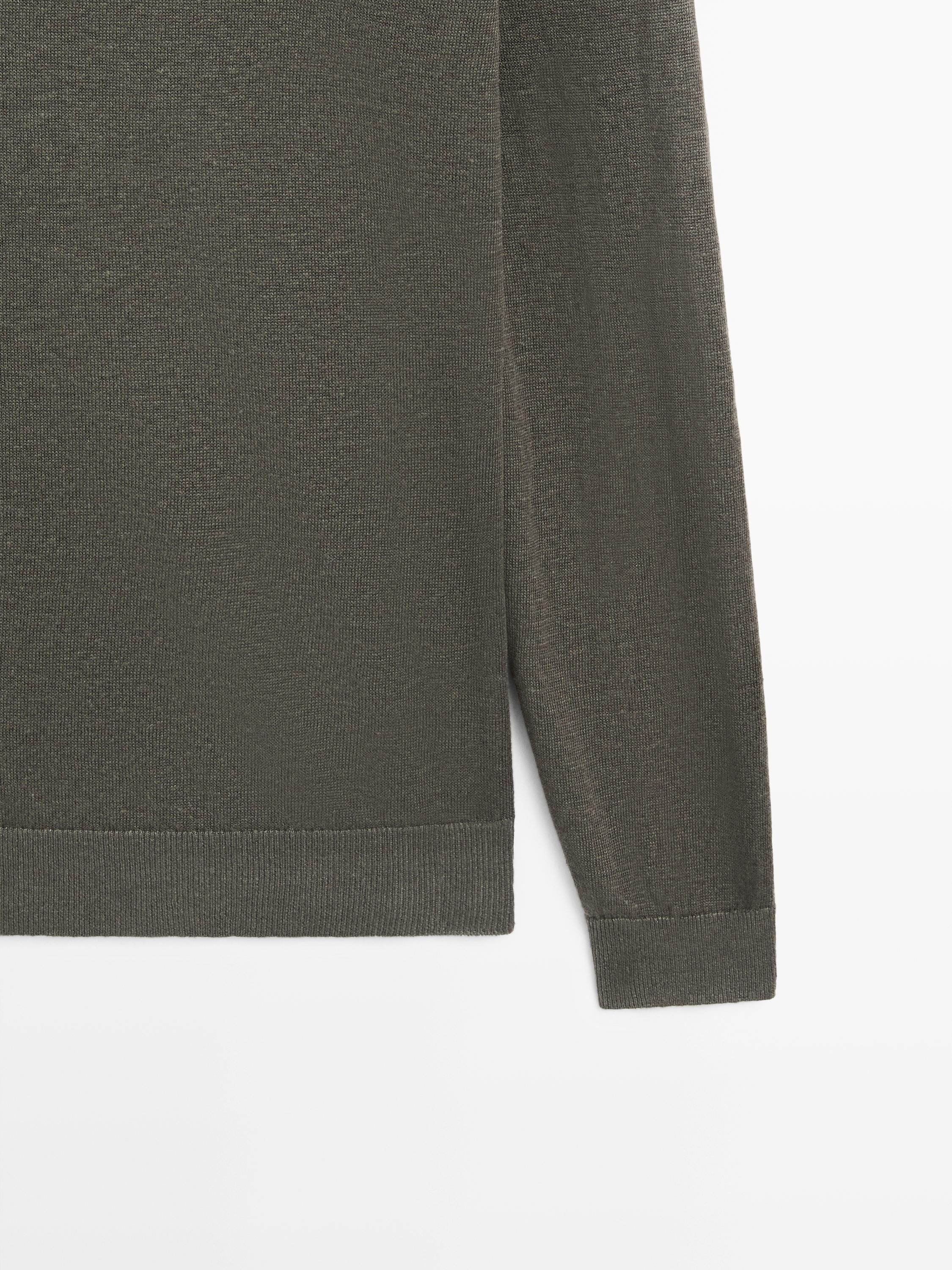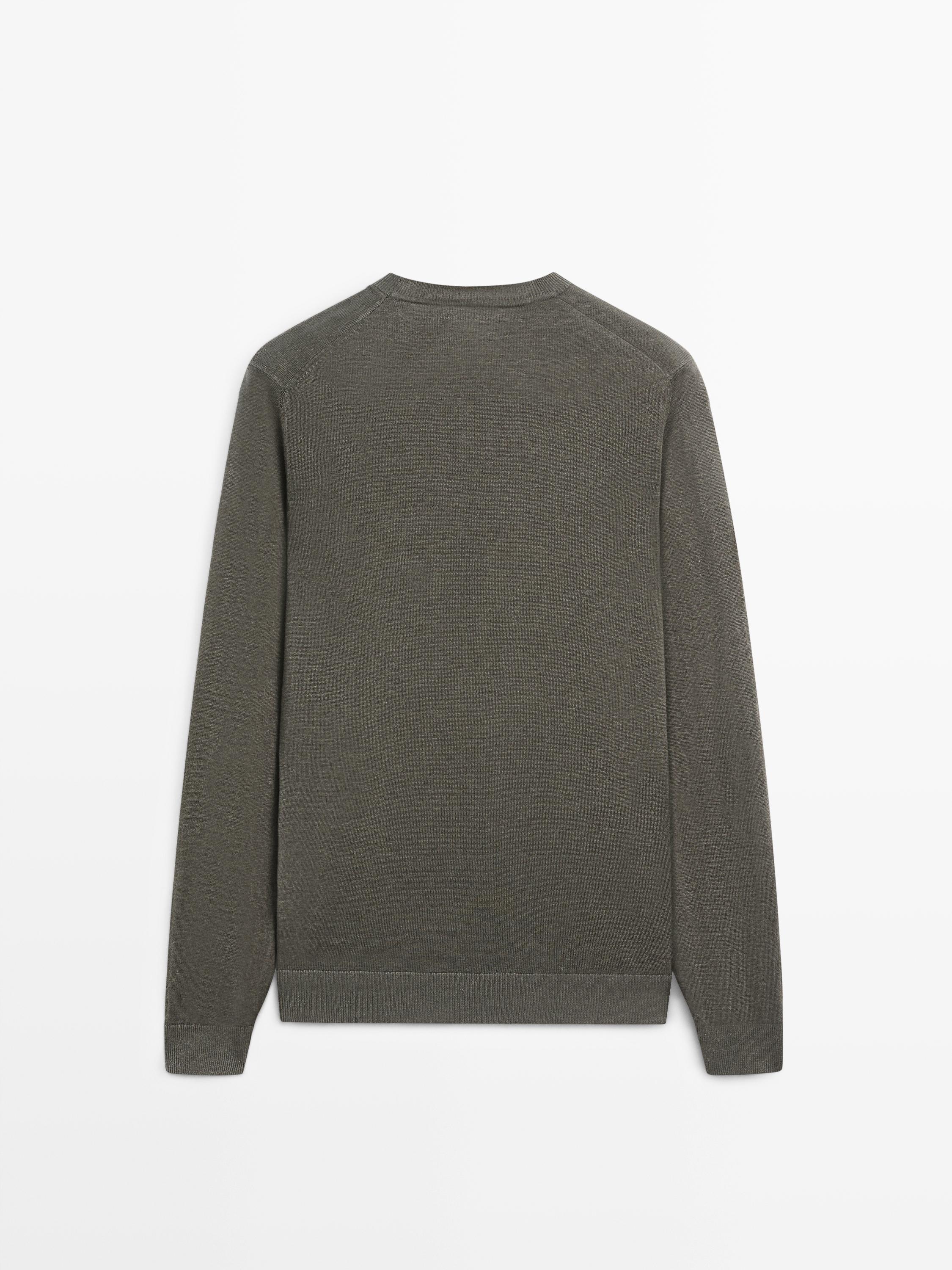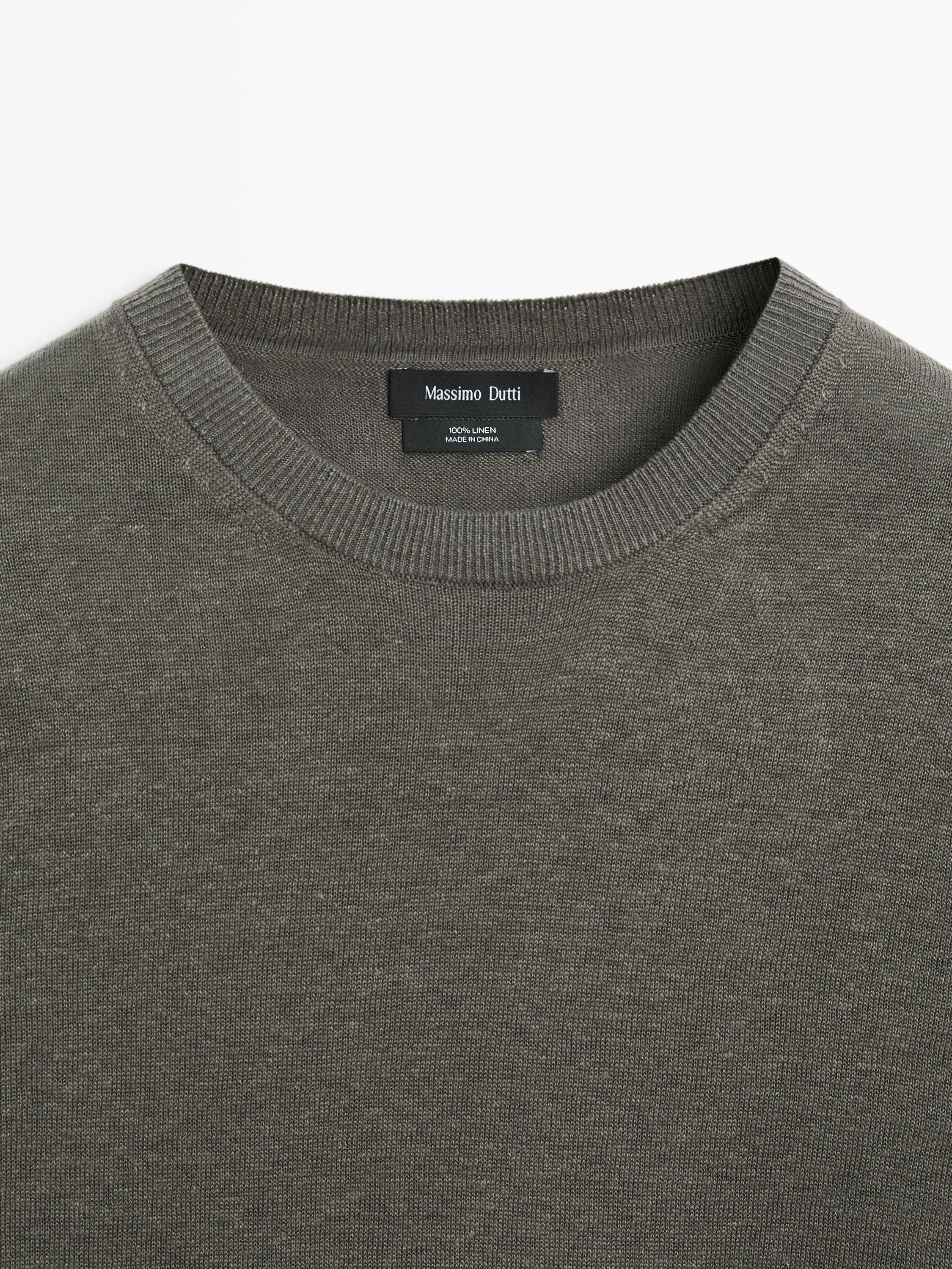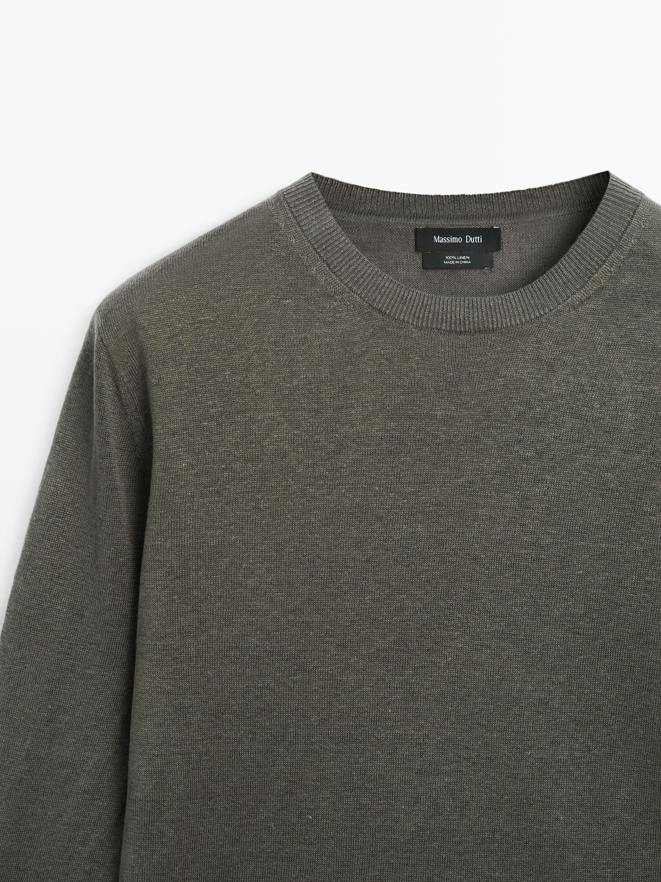 Massimo Dutti Вязаный льняной свитер с круглым вырезом, пудровый