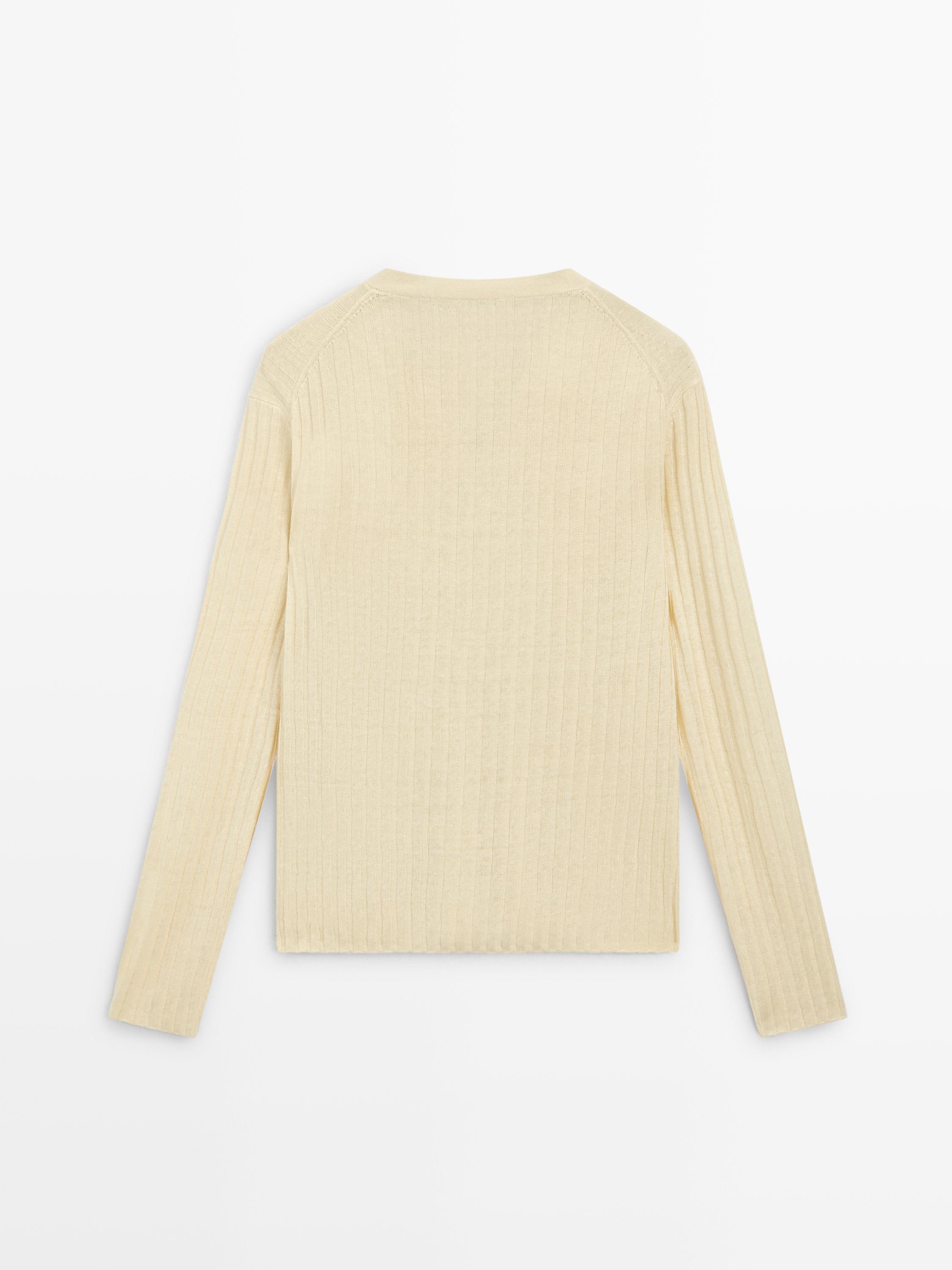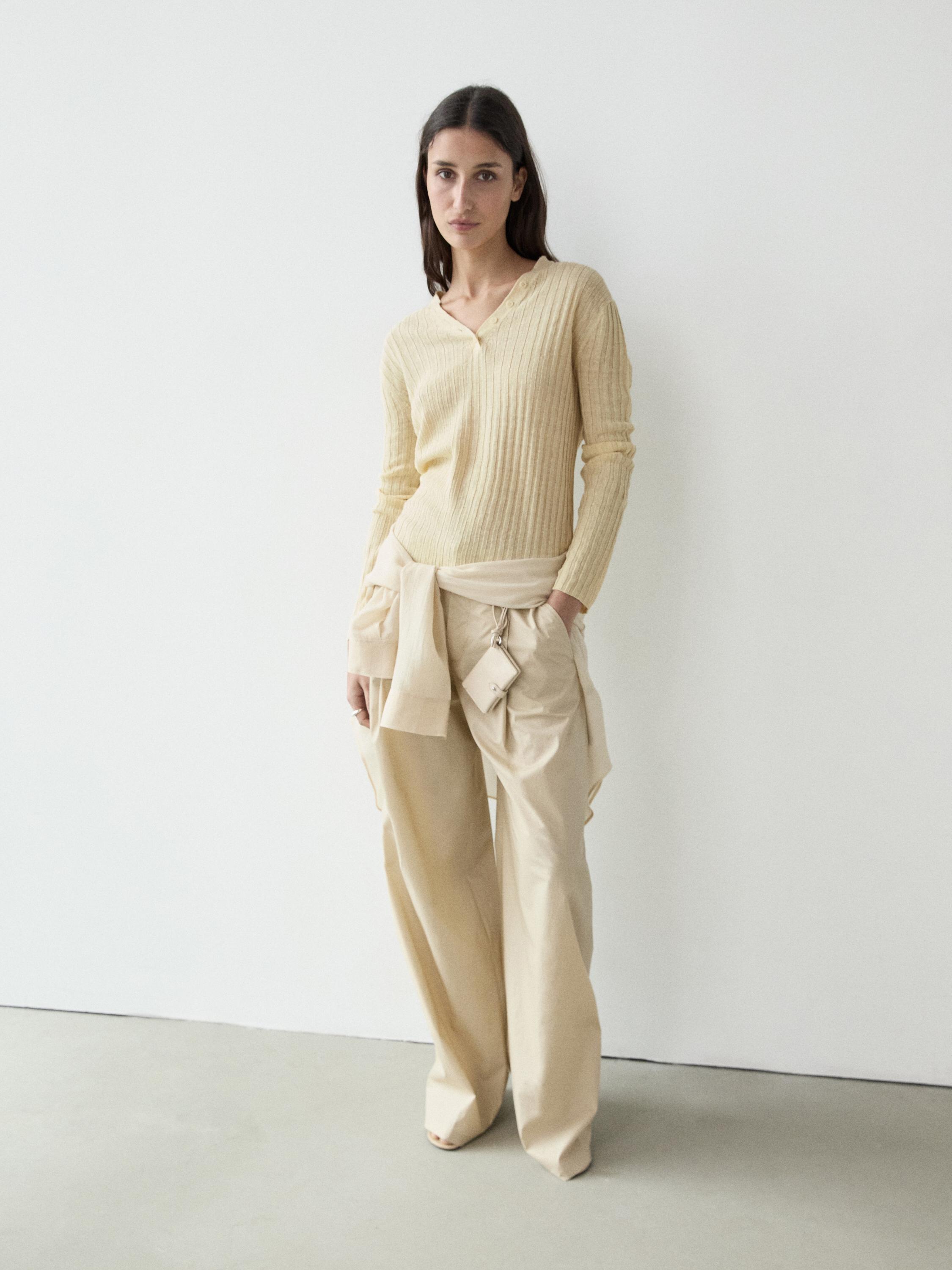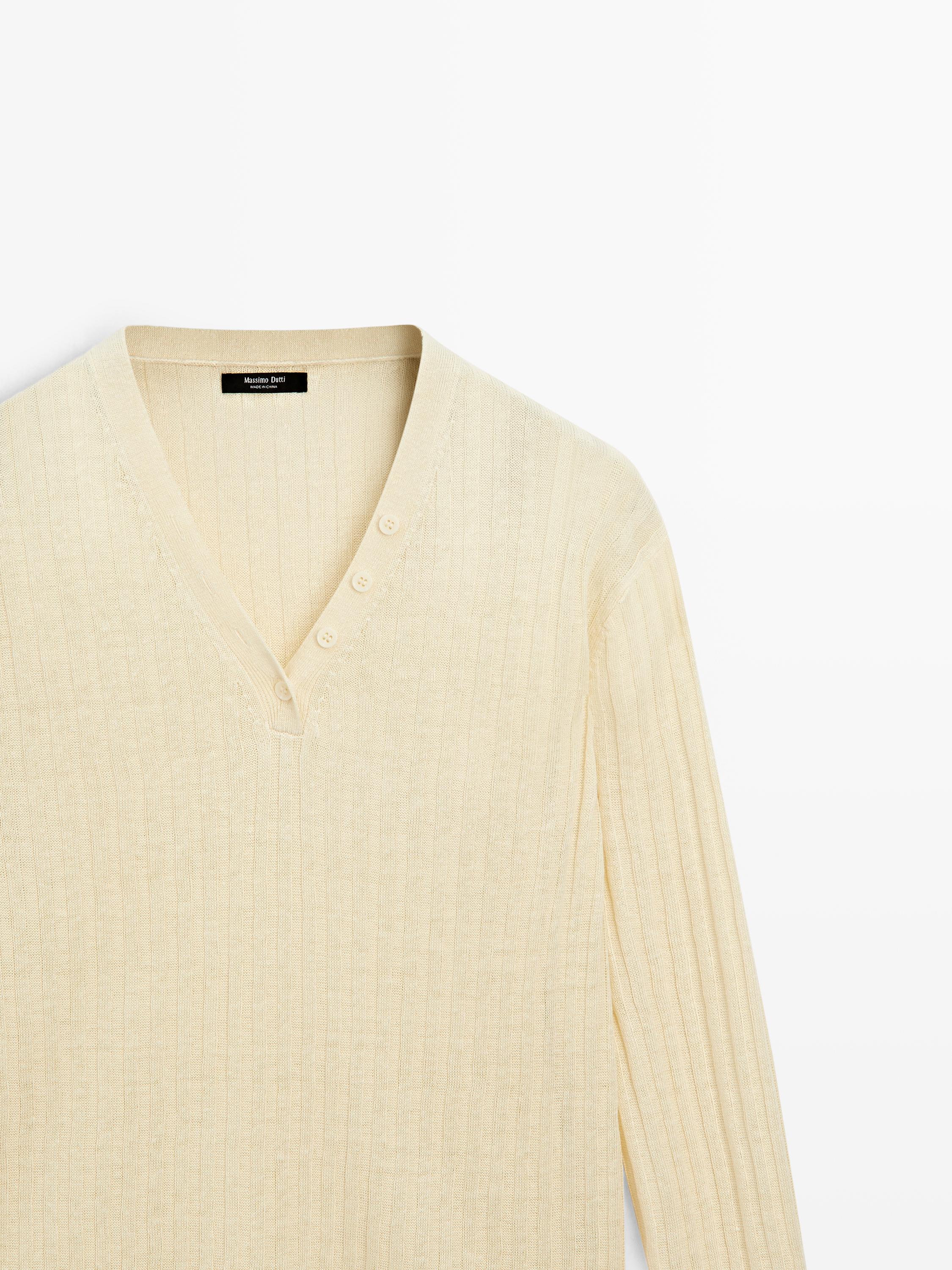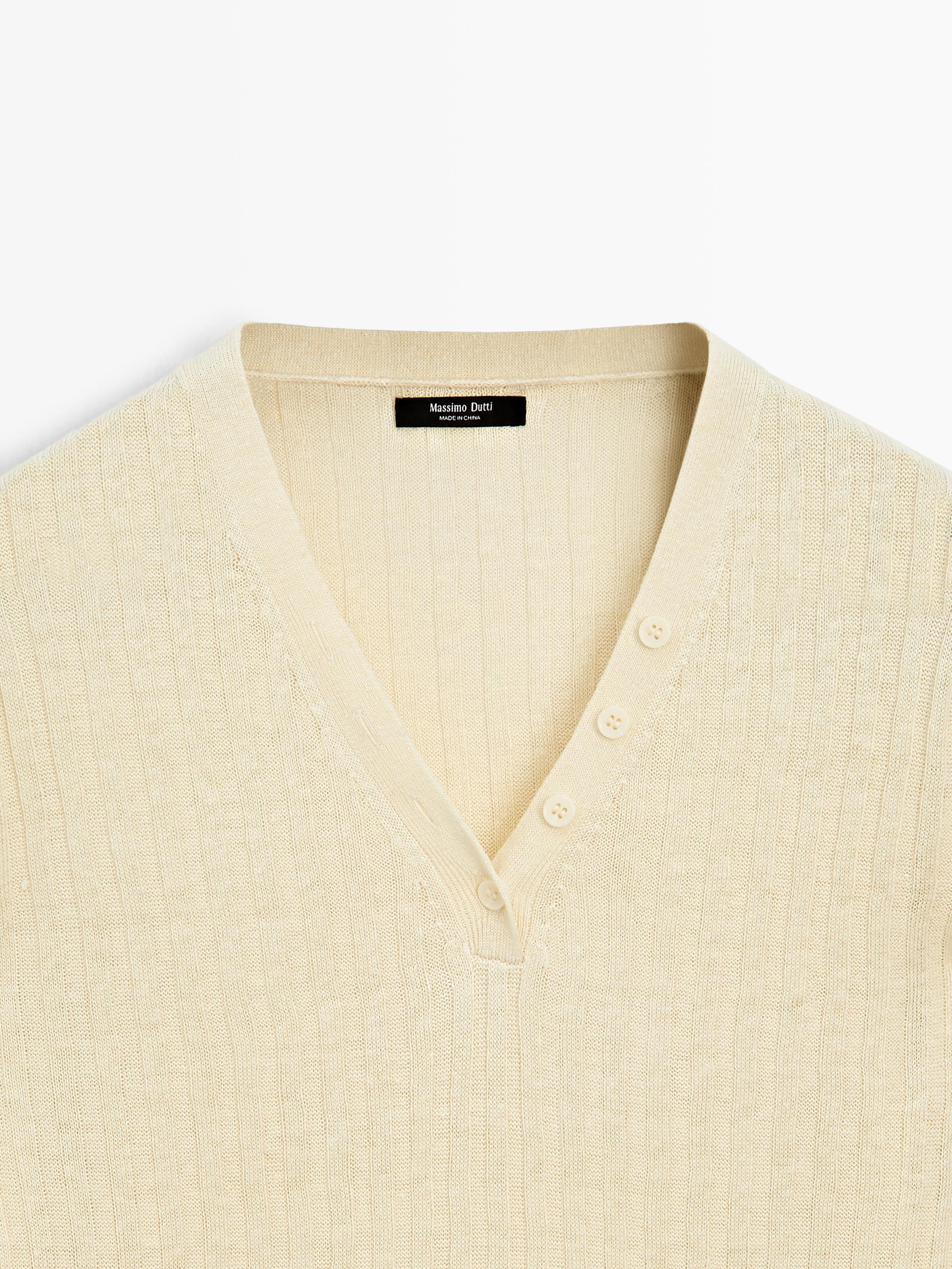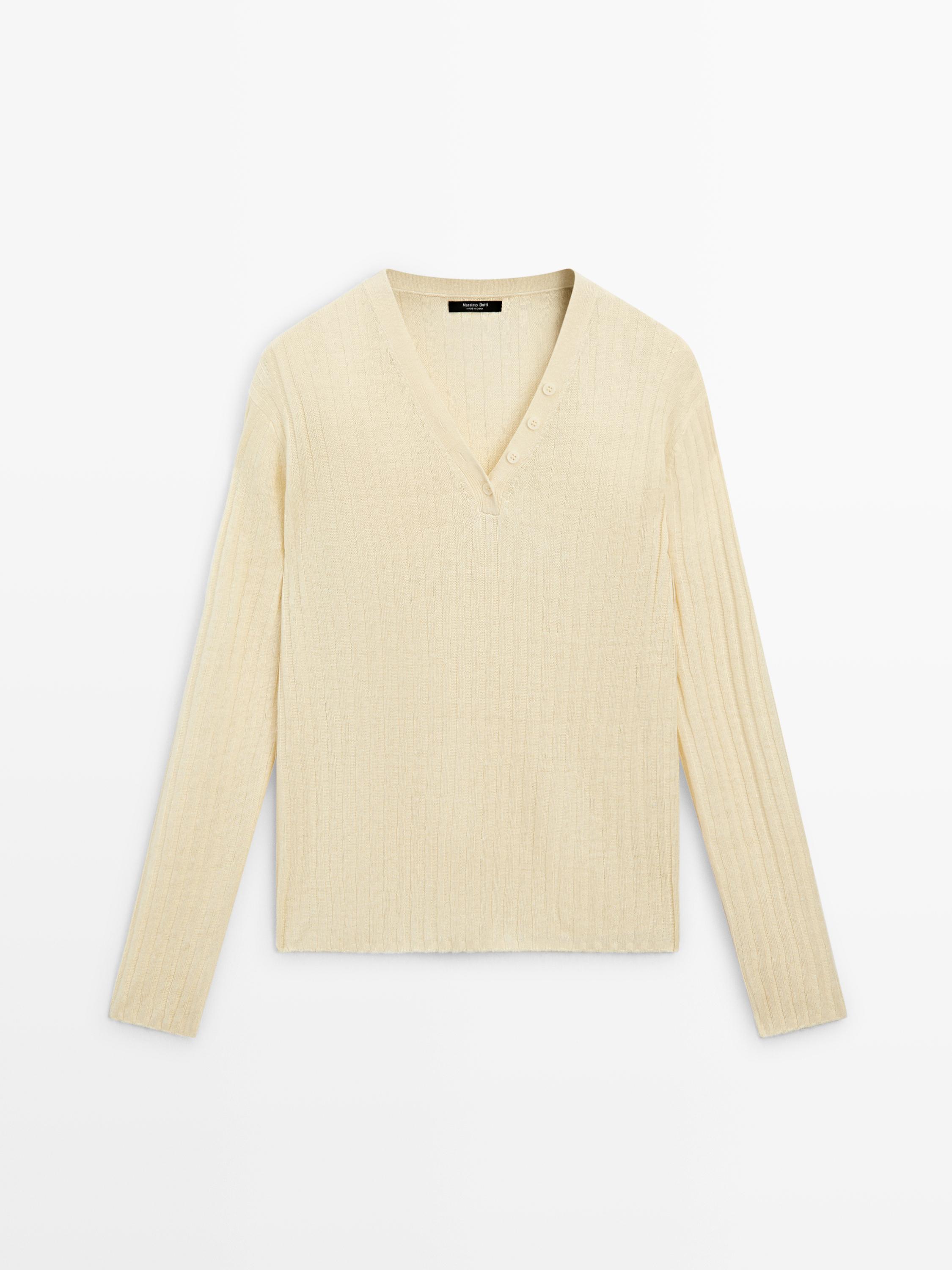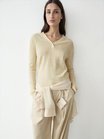Massimo Dutti Вязаный льняной свитер с пуговицами, ванильный