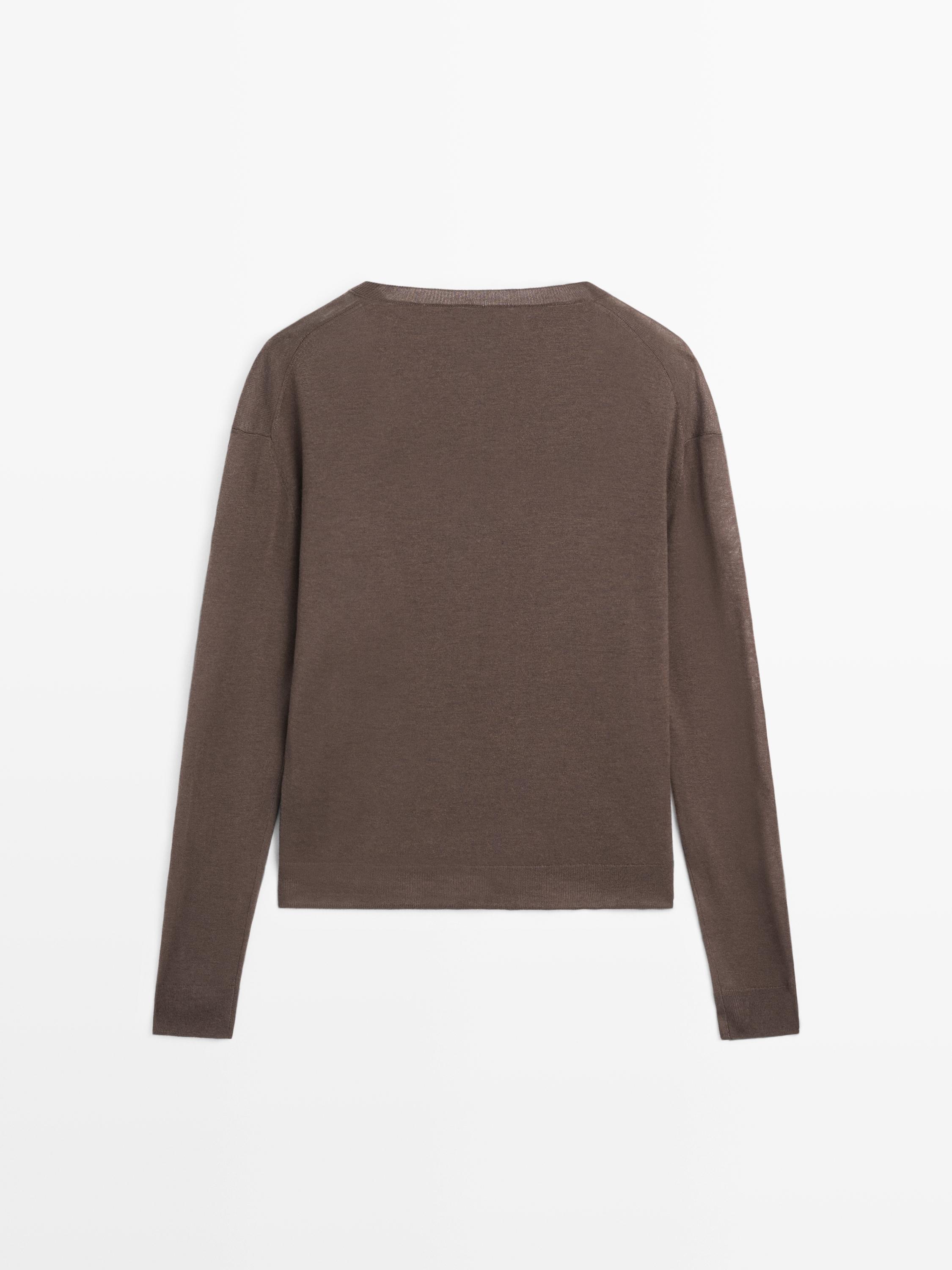 Massimo Dutti Вязаный свитер из смеси шелка и шерсти, коричневый