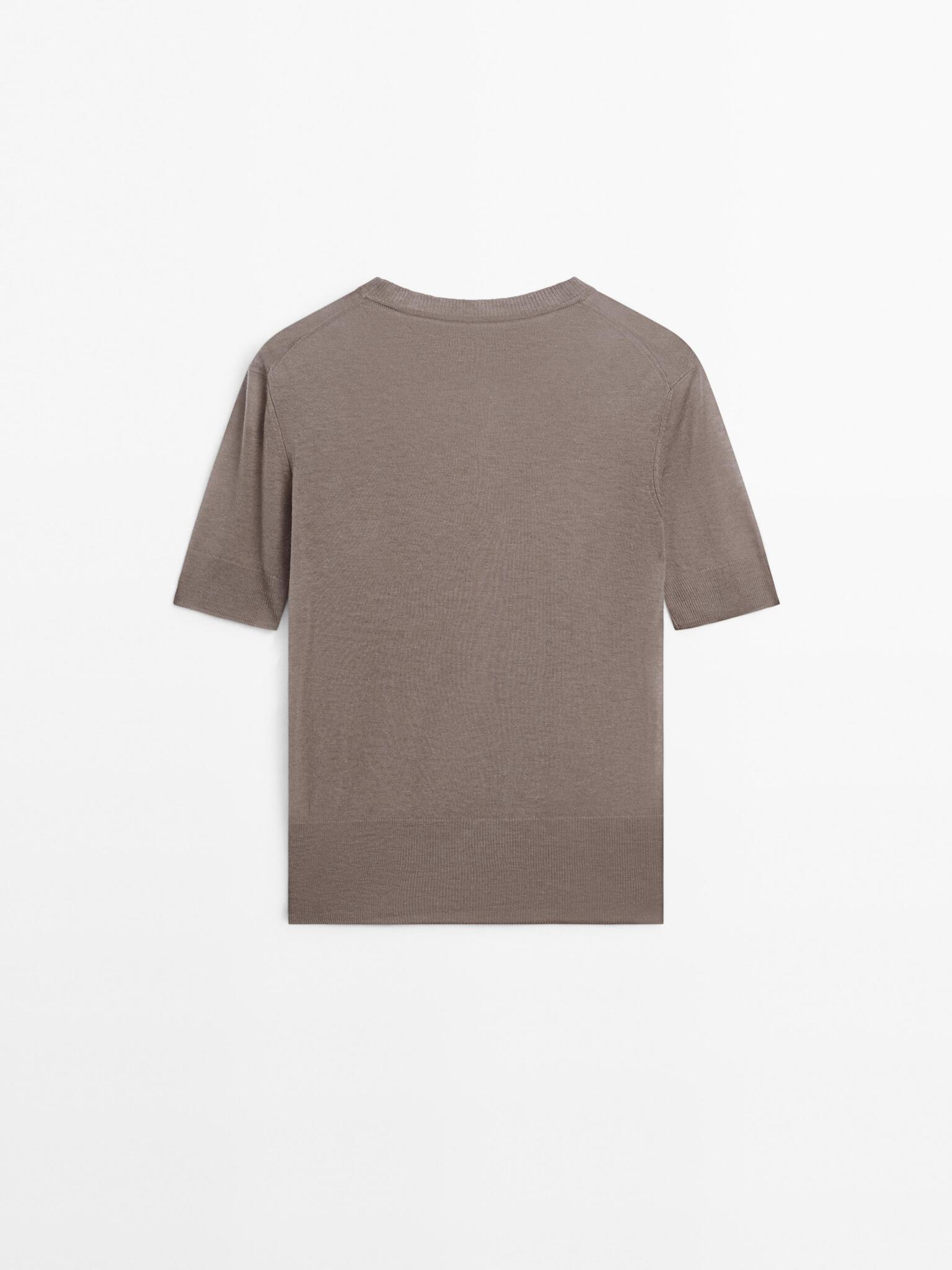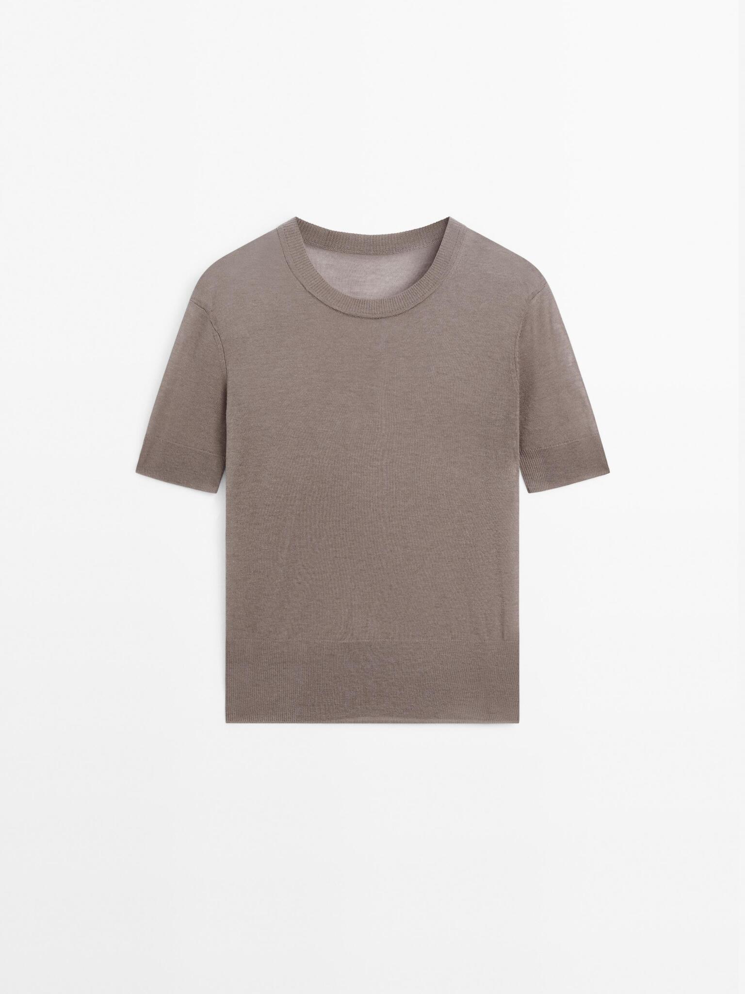 Massimo Dutti Вязаный свитер с короткими рукавами - STUDIO, норка